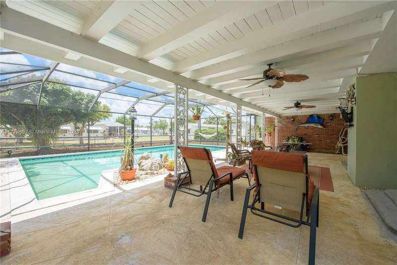Owner says Bring me an offer!!! Seller offering 2-1 rate buydown incentive with acceptable offer. Buyer must qualify with lender. Contact listing agent for details! Custom Pool Home – No HOA! Spacious 4BR/2.5BA home (2494 sq ft) in NW Homestead with split floor plan and in-law potential. Oversized primary suite with private entrance and remodeled bath (2022). Terrazzo floors, solid wood kitchen cabinets, newer appliances, formal dining & living rooms with real cypress tongue-and-groove ceilings and exposed beams. French doors open to a screened 33x17 pool with flat deck & cool deck coating. Gated side yard for boat/RV, fruit trees, new asphalt driveway, hurricane shutters, security cameras. No CDD! **Incentives available.**