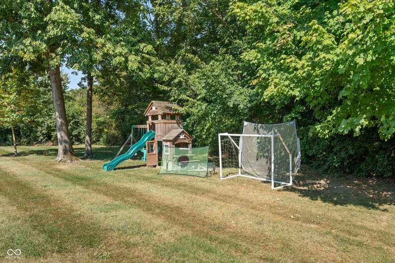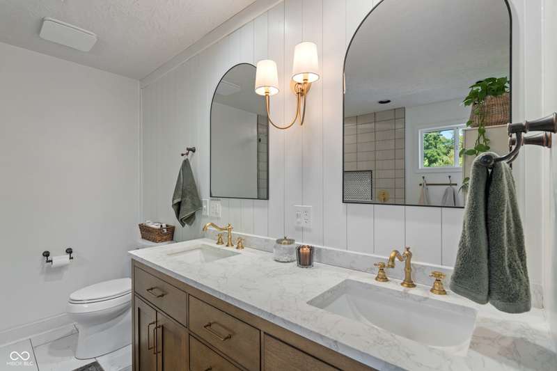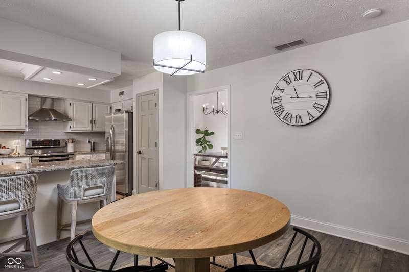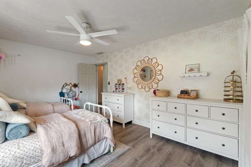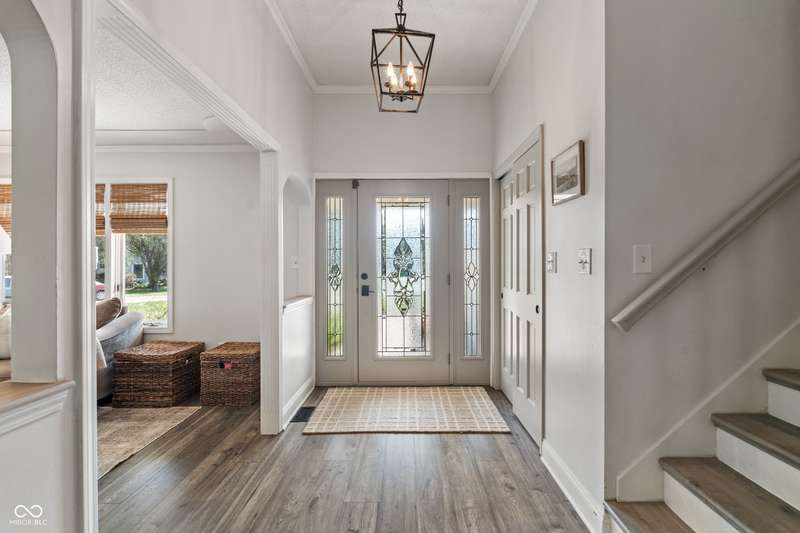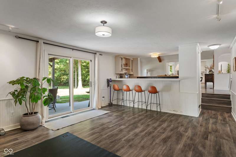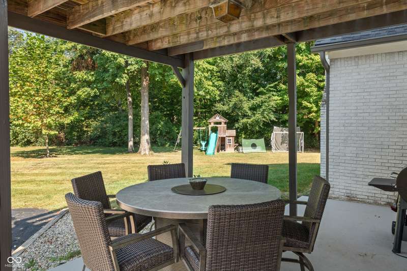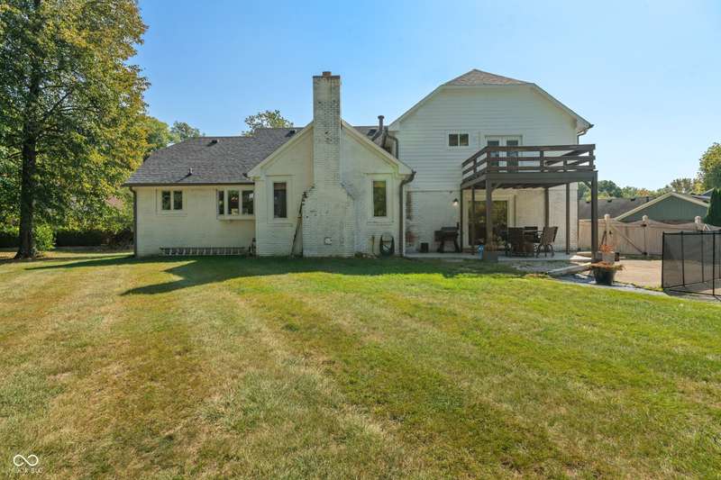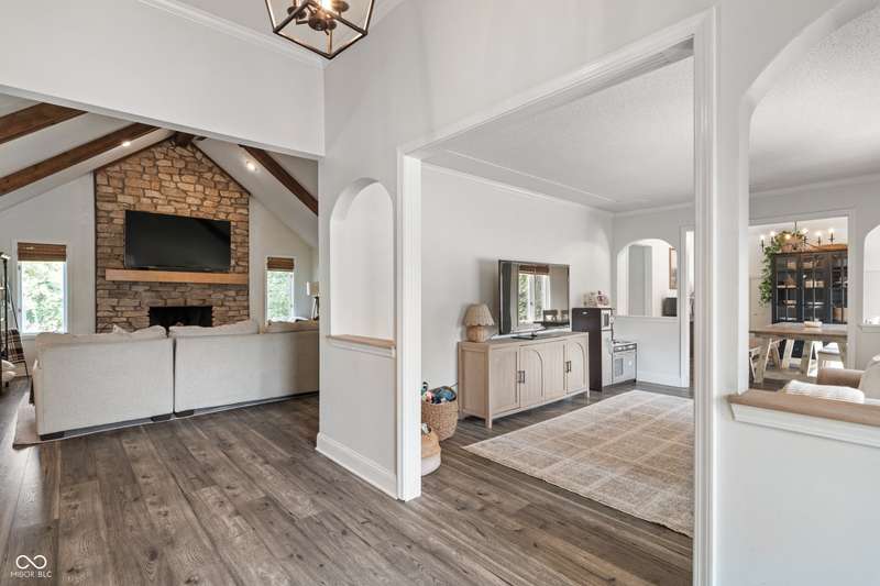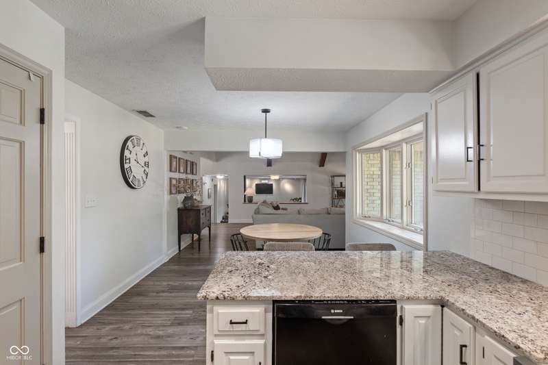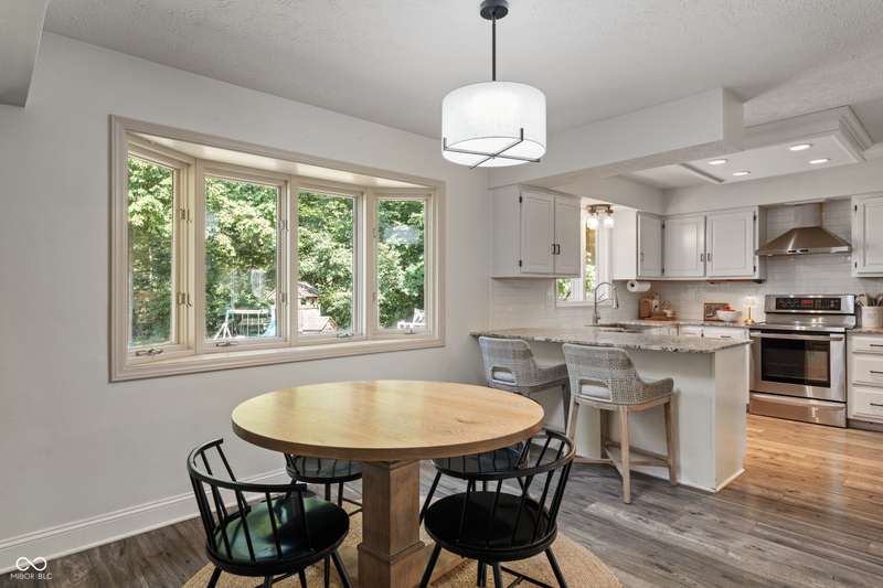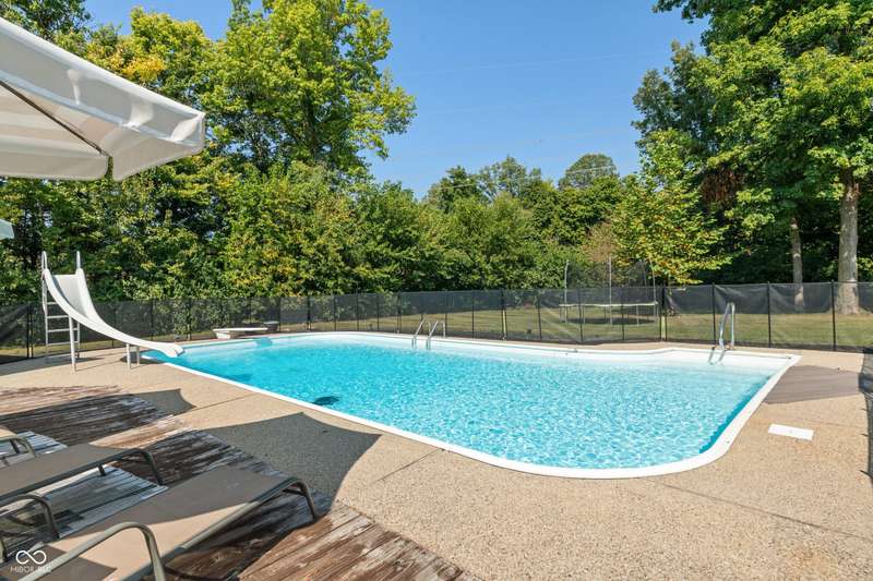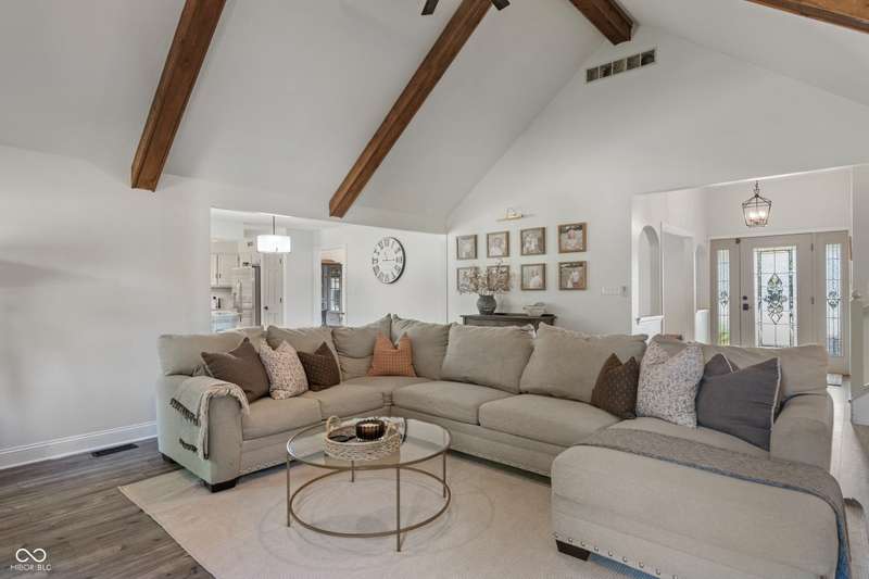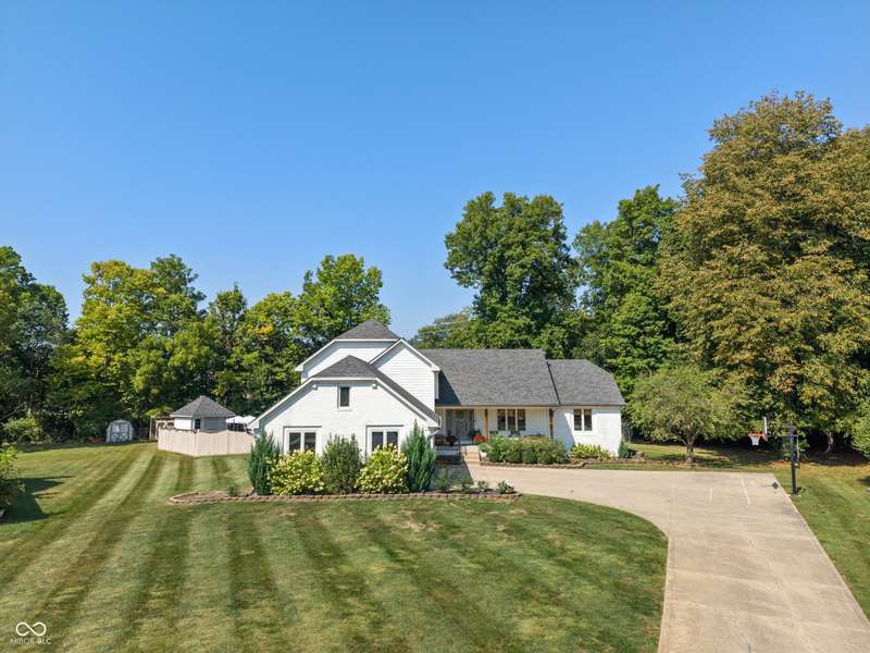 Nestled on a private .63-acre cul-de-sac lot, this modern retreat in secluded Schildmeier Woods awaits. A long driveway sweeps toward a whitewashed exterior, where a cozy front porch invites you inside. Step into nearly 3100 finished sq ft of thoughtfully updated space. A functional circular floorplan flows through generous rooms graced with LVP floors and contemporary fixtures. Bask in the family room beneath soaring cathedral ceilings, where a dramatic wood-burning stone fireplace creates an impressive focal point. The bright kitchen gleams with granite countertops, stainless steel appliances, subway tile backsplash. Versatile main level also hosts a large bonus room, flexible living/dining areas, a walk-out bar, and a convenient bedroom. Escape upstairs to the tranquil primary suite, a private oasis with a spa-like bath. It features custom dual vanities, two walk-in closets, and a huge, exquisitely tiled walk-in shower. Two other spacious bedrooms and another beautifully renovated bathroom complete the upper level. Unleash your vision in the 960 sq ft unfinished basement or utilize the 3-car garage for exceptional storage. Your backyard paradise unfolds with a sprawling lawn and a freshly sealed gunite pool, updated with a new pump and gas line for a heater. Dine on the covered patio, overlooking the lush, tree-lined yard-the perfect backdrop for making lasting memories. Enjoy peace of mind with newer roof and water heater. Don't miss the opportunity for a home that can provide years of memories for you and your loved ones!