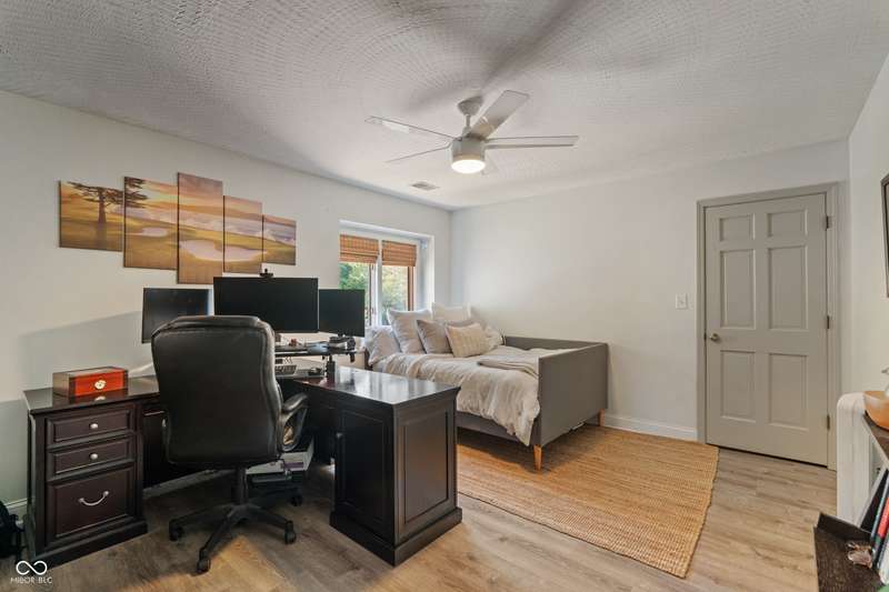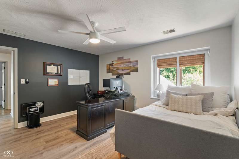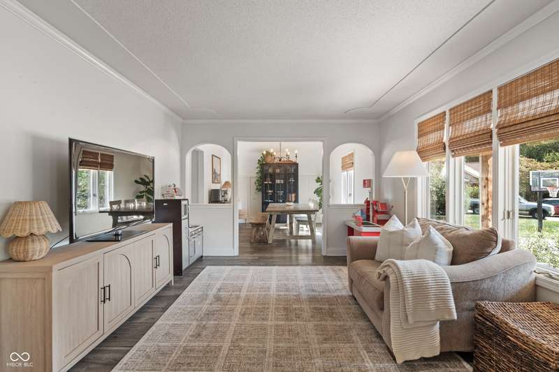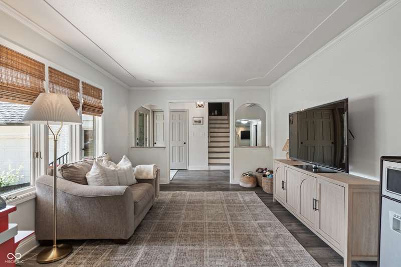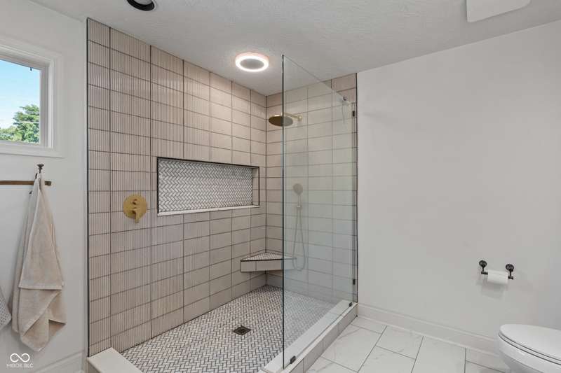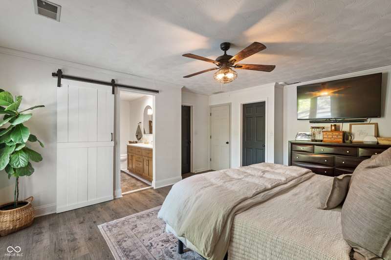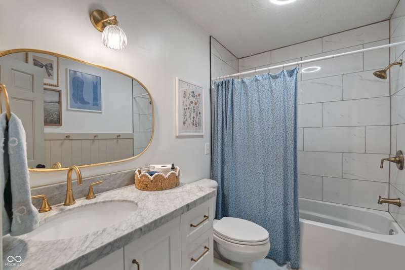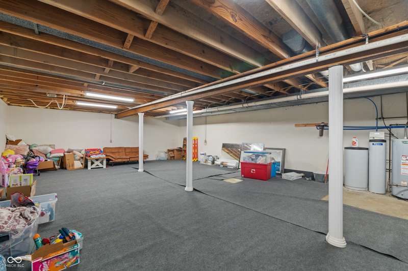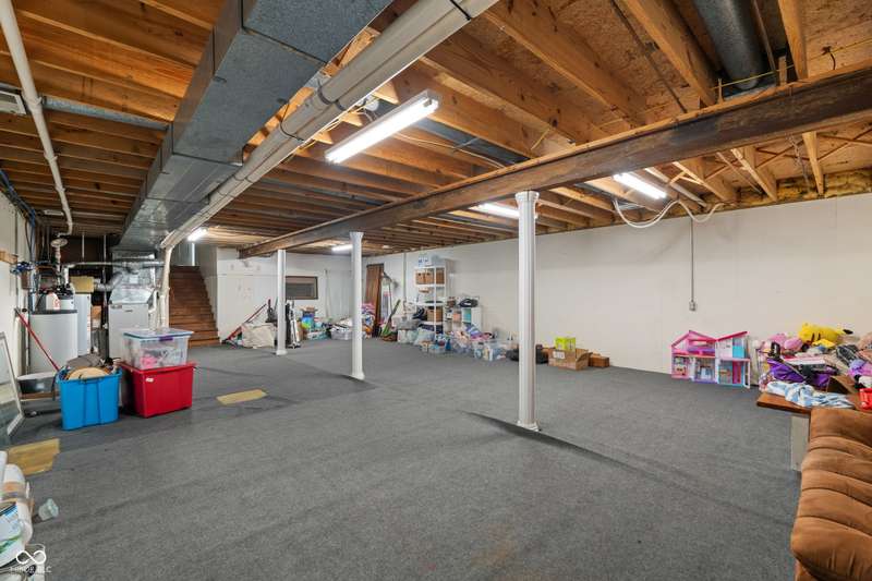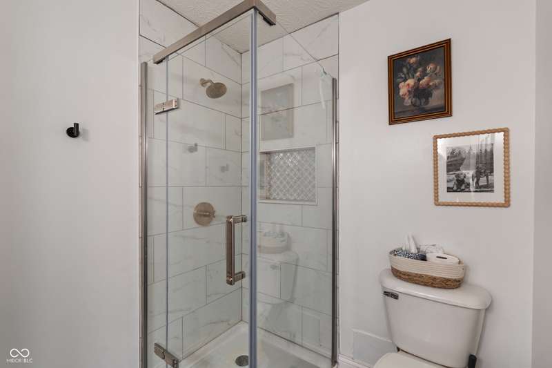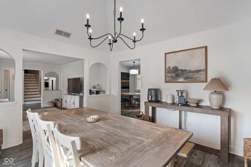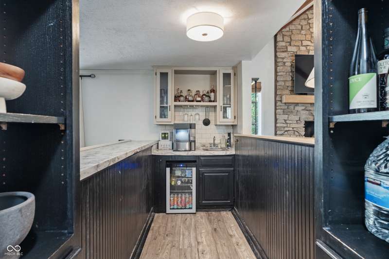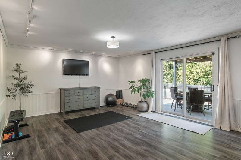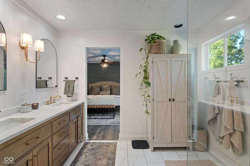 Nestled on a private .63-acre cul-de-sac lot, this modern retreat in secluded Schildmeier Woods awaits. A long driveway sweeps toward a whitewashed exterior, where a cozy front porch invites you inside. Step into nearly 3100 finished sq ft of thoughtfully updated space. A functional circular floorplan flows through generous rooms graced with LVP floors and contemporary fixtures. Bask in the family room beneath soaring cathedral ceilings, where a dramatic wood-burning stone fireplace creates an impressive focal point. The bright kitchen gleams with granite countertops, stainless steel appliances, subway tile backsplash. Versatile main level also hosts a large bonus room, flexible living/dining areas, a walk-out bar, and a convenient bedroom. Escape upstairs to the tranquil primary suite, a private oasis with a spa-like bath. It features custom dual vanities, two walk-in closets, and a huge, exquisitely tiled walk-in shower. Two other spacious bedrooms and another beautifully renovated bathroom complete the upper level. Unleash your vision in the 960 sq ft unfinished basement or utilize the 3-car garage for exceptional storage. Your backyard paradise unfolds with a sprawling lawn and a freshly sealed gunite pool, updated with a new pump and gas line for a heater. Dine on the covered patio, overlooking the lush, tree-lined yard-the perfect backdrop for making lasting memories. Enjoy peace of mind with newer roof and water heater. Don't miss the opportunity for a home that can provide years of memories for you and your loved ones!