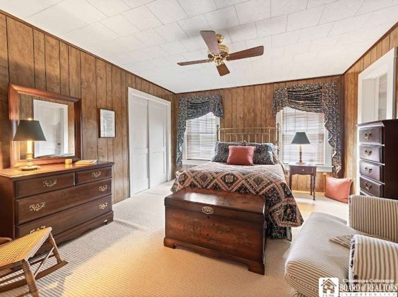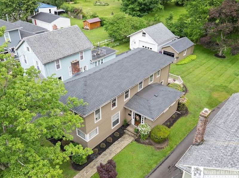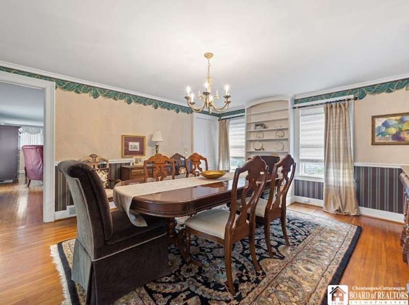 This charming early 1900s Italianate-style home is nestled in the heart of the historic Village of Fredonia?close to the village center and SUNY Fredonia! Rich in character, it features original hardwood floors, built-in cabinetry, and a unique "pull-out" desk in the dining room. The spacious living room offers a woodburning fireplace with a gas option, and a cozy den sits just off the dining area. The modern kitchen blends seamlessly with the home's vintage charm. Upstairs you'll find two bedrooms, a full bath, and a versatile three-room suite?perfect for guests, office, or hobby space. Enjoy the outdoors on the large deck overlooking the deep backyard. Notable updates include: furnace (2023), central A/C (2024), roof (2019), and electric CB panel (2022).