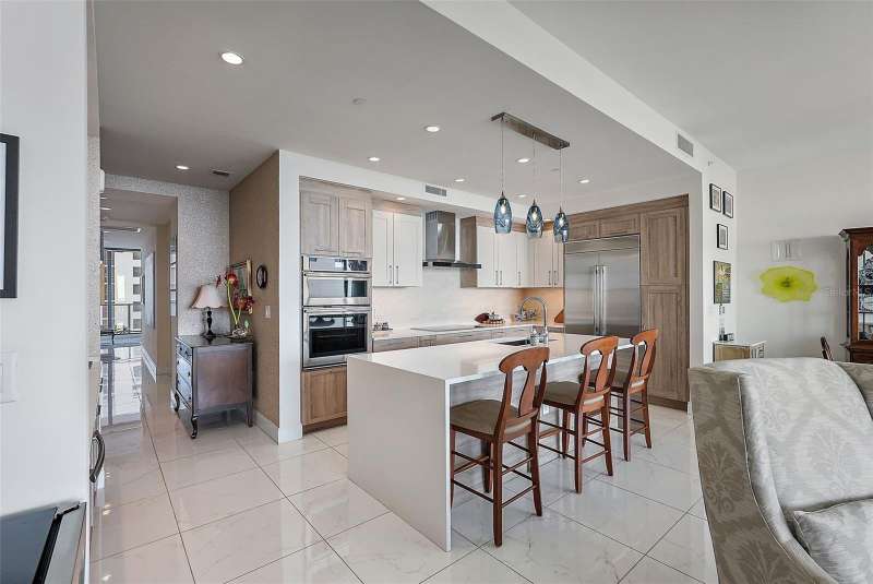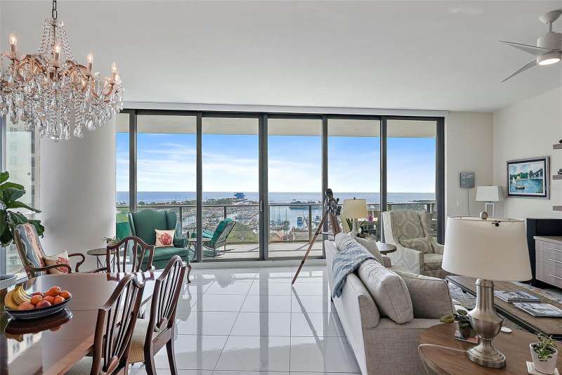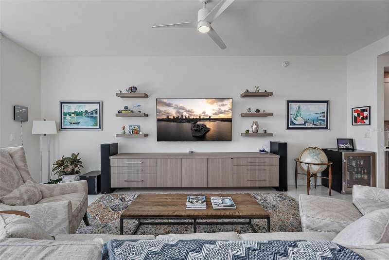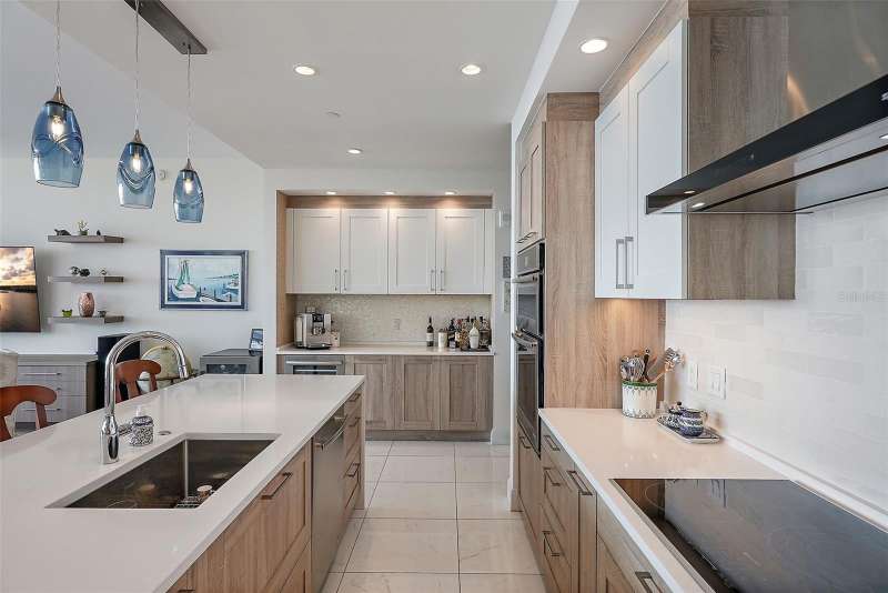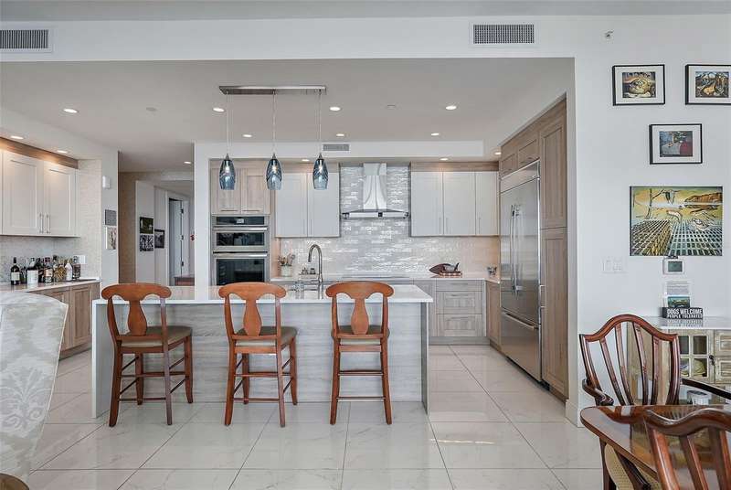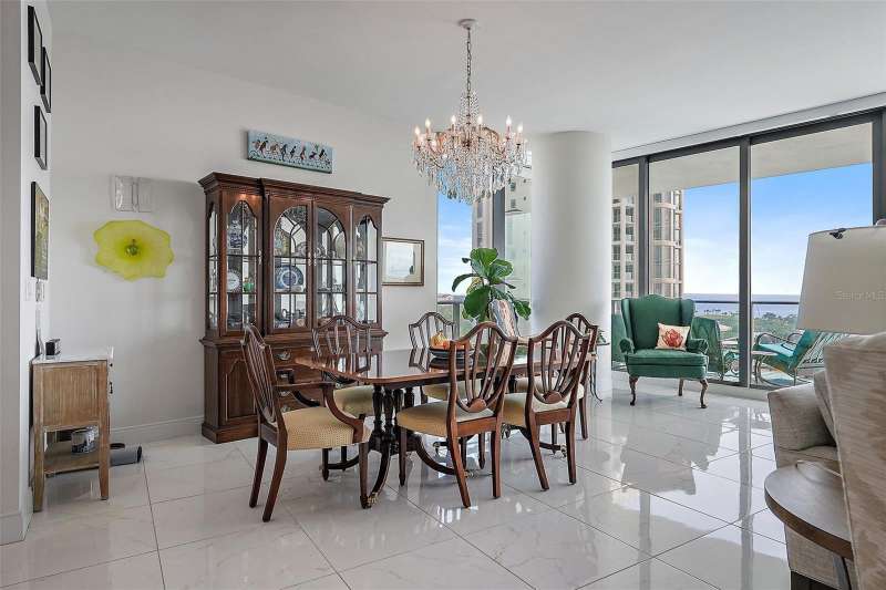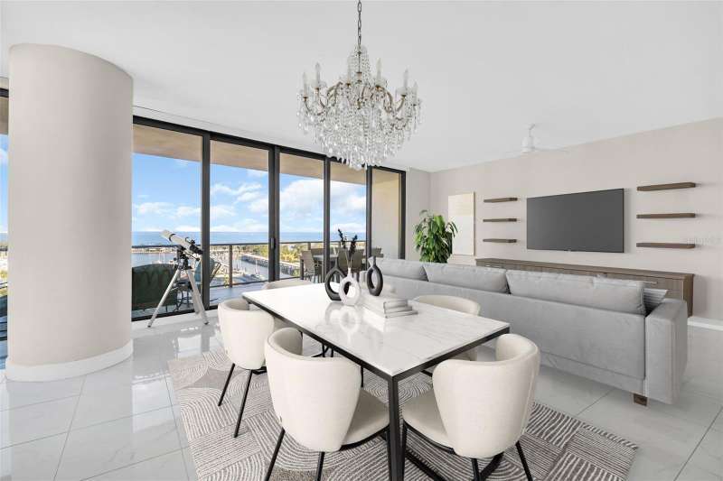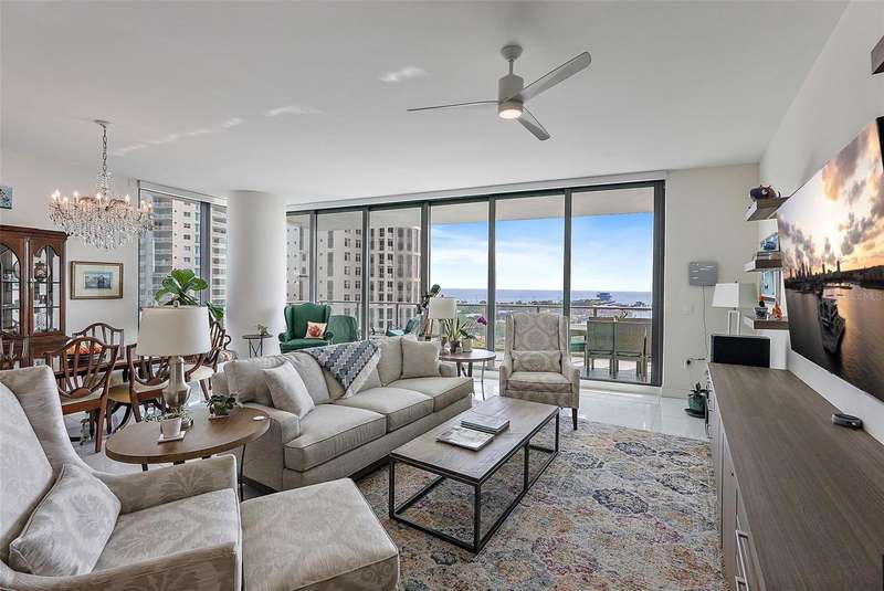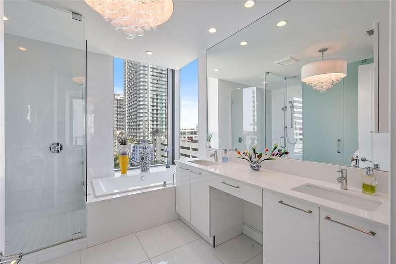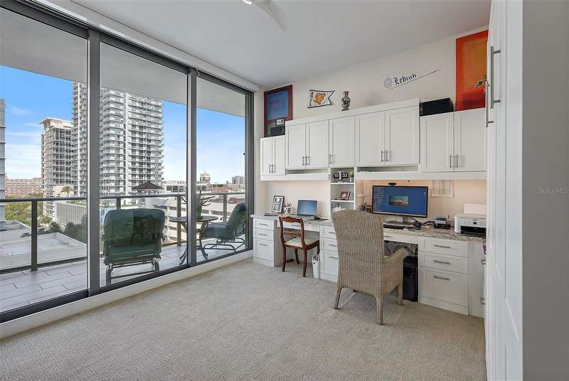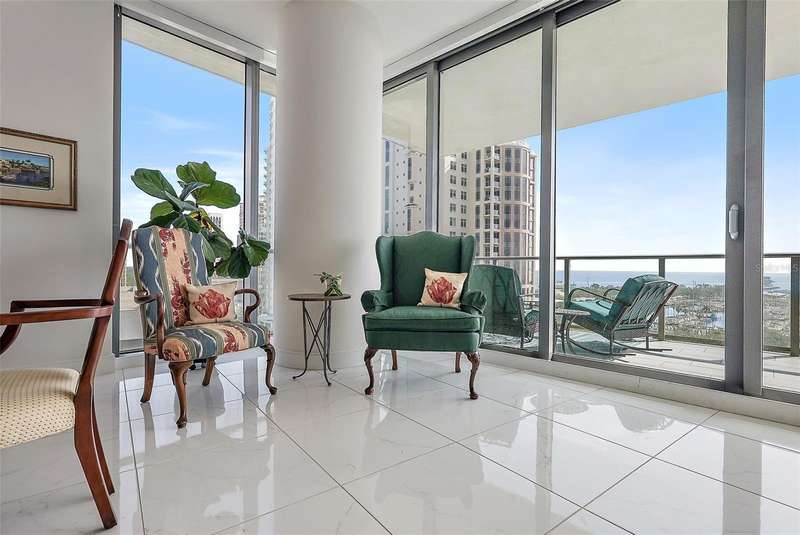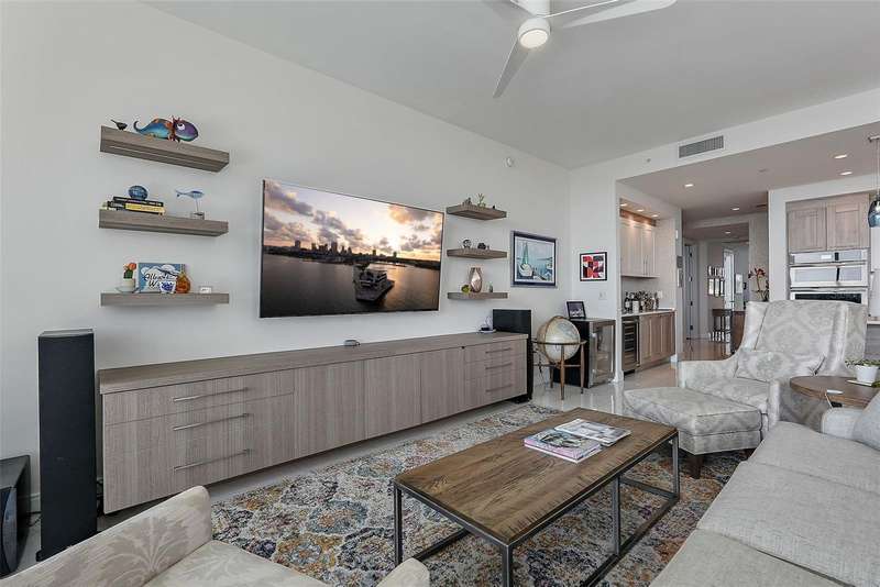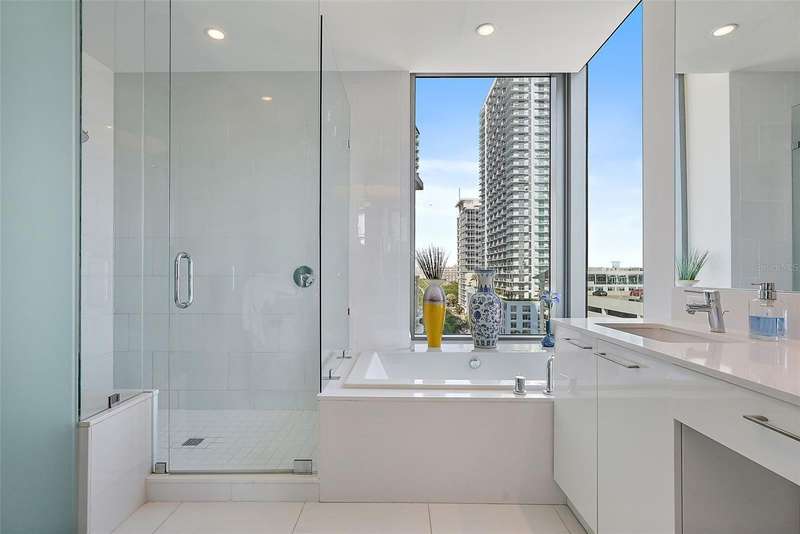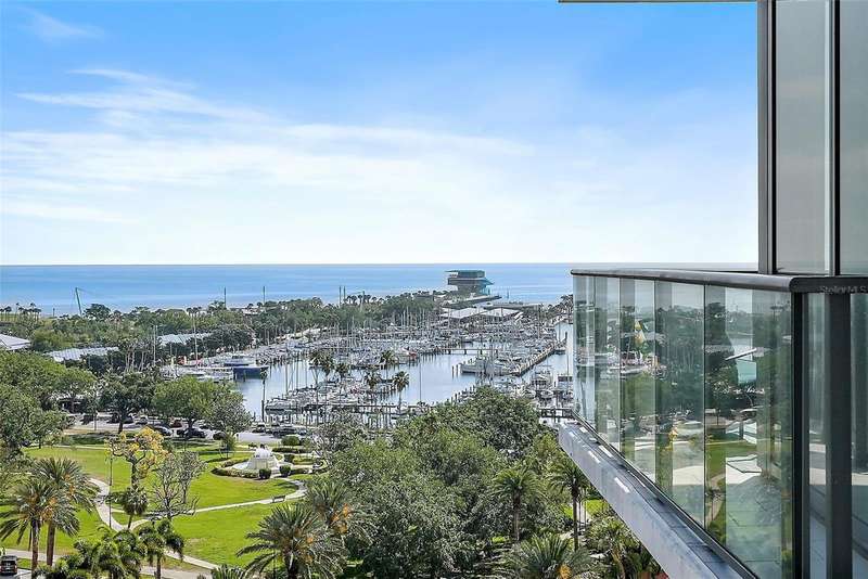Exquisite Living with Stunning Water views at ONE St. Petersburg Step into a world of unparalleled elegance and modern luxury with this stunning 3-bedroom + den, 3.5-bath corner condo at ONE St. Petersburg, one of the city’s most sought-after addresses. Spanning an expansive 2,475 square feet, this one-of-a-kind residence offers one of the largest floor plans available in the building, delivering the perfect combination of space, style, and breathtaking views. From the moment you enter, you’ll be captivated by the seamless flow of the open-concept living spaces, enhanced by upgraded electrical receptacles and 24x24 porcelain tile throughout. The chef-inspired kitchen is a true masterpiece, featuring roll-out pantry shelves, sleek stainless steel appliances, a lazy Susan corner cabinetry for easy access, and a custom backsplash. The center island creates an ideal space for gathering and entertaining, while the separate bar area with additional cabinet space and built-in wine fridge elevates the home’s sophistication. Throughout the living areas, custom built-ins and floating shelves add a touch of refinement, offering practical yet stylish storage solutions. All windows are equipped with electric blinds, and the master suite features blackout shades for ultimate privacy and comfort. With three private terraces, you’ll find the perfect outdoor retreat at every turn. Enjoy direct east-facing views of the tranquil waters from the main living area, soak in stunning west-facing city views from the guest suite and den, or unwind in the master suite, which boasts a private terrace with panoramic vistas of Tampa Bay, the new St. Pete Pier, and the marina. This luxurious condo is not only beautifully designed but also comes with two parking spaces and a climate-controlled storage unit, ensuring your convenience and comfort. As a resident of ONE St. Petersburg, you’ll have access to an array of world-class amenities, including a 40,000-square-foot amenities deck featuring a 75-foot lap pool, cabanas, a luxurious spa, outdoor kitchens, fire pits, and abundant seating areas perfect for both relaxation and socializing. Inside, enjoy a state-of-the-art fitness center, a yoga studio, and exceptional social spaces, including a formal social room, game room, and club room—all complemented by the seamless concierge service. Located in the heart of downtown St. Petersburg, ONE St. Petersburg offers immediate access to over 40 restaurants, museums, theaters, galleries, shopping, and the vibrant waterfront. Here, you'll discover a lifestyle where sophistication, convenience, and urban luxury come together effortlessly, perfectly encapsulating the essence of modern living in one of Florida's most dynamic cities.