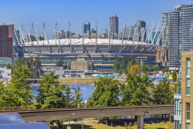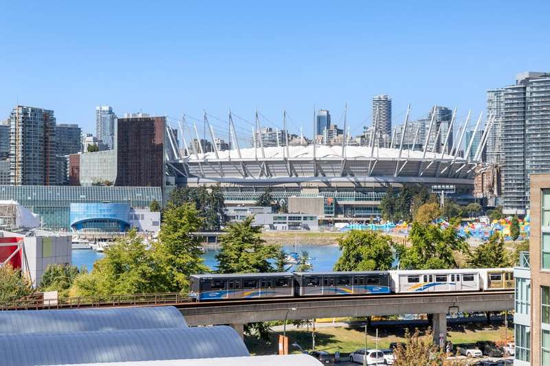 Welcome to Station Place by BOSA – where generous space meets stunning views. This 1187 sqft SW-facing residence showcases False Creek, Science World, and BC Place through floor-to-ceiling windows. The thoughtful layout offers 2 large bedrooms, 2 baths, and a versatile solarium/den. A large bright kitchen opens to the spacious dining and living areas, creating an inviting flow for entertaining. A well-maintained concrete building with updates including re-piping (2021) and new amenity areas. Pets allowed (2), with parking, locker, gym, infrared sauna, rooftop deck, social room, and bike storage. With the SkyTrain, Seawall, Olympic Village, Main Street, and the future St. Paul’s Hospital just steps away, this is a rare opportunity to own in a prime Vancouver location. Easy to show! Open SUN