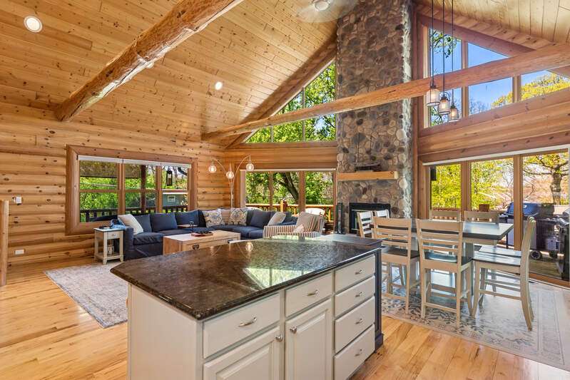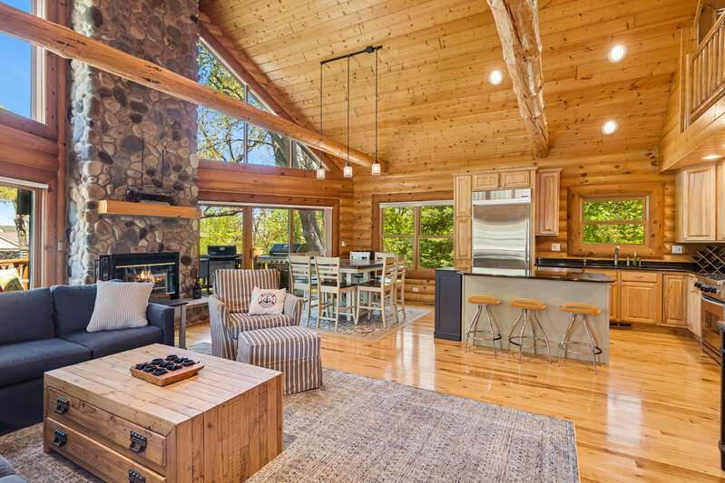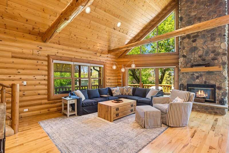 Quite possibly Geneva Lake's best sandy beachfront, this exceptional log home sits within the sought-after Lake Geneva Beach Association, offering exclusive lake access (with waitlist for boat slip). Perfectly designed for upscale living and effortless entertaining, it blends rich wood finishes, soaring ceilings, and panoramic views with inviting comfort. The open-concept layout flows seamlessly, while the spacious lower-level rec room is ideal for games, movies, or family time. Outside, enjoy beautifully landscaped grounds, a built-in firepit, and direct access to swimming and boating--your family's gateway to lakeside luxury.