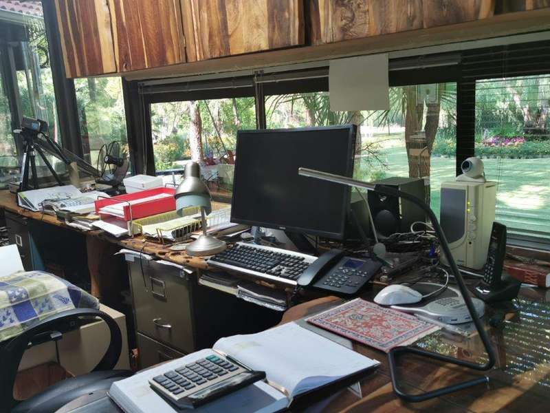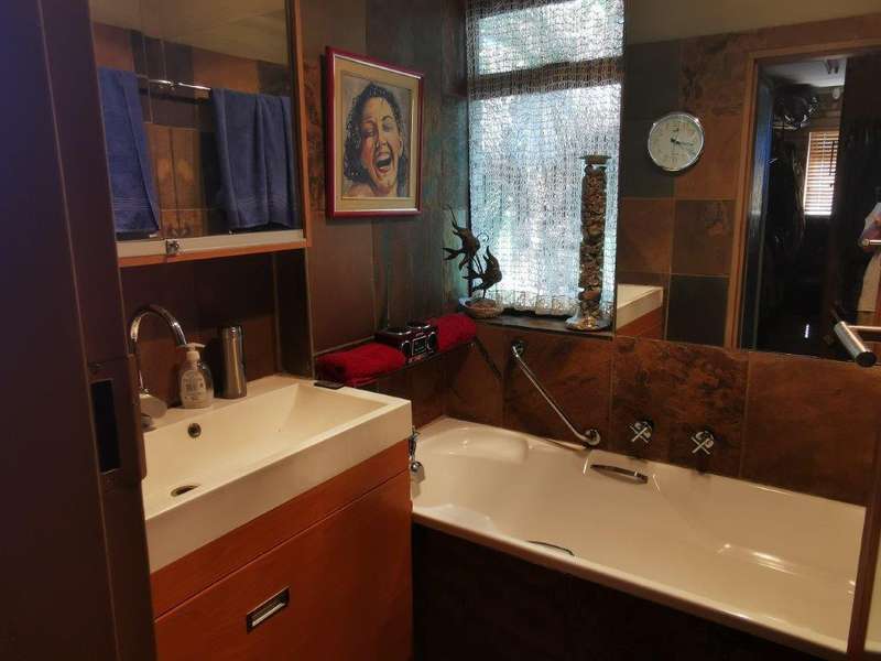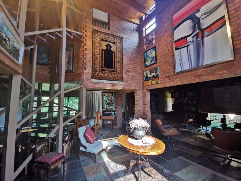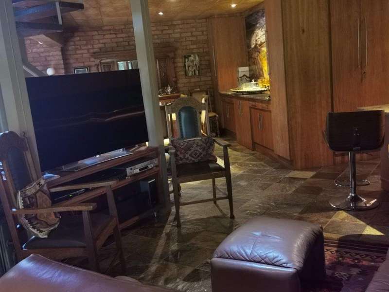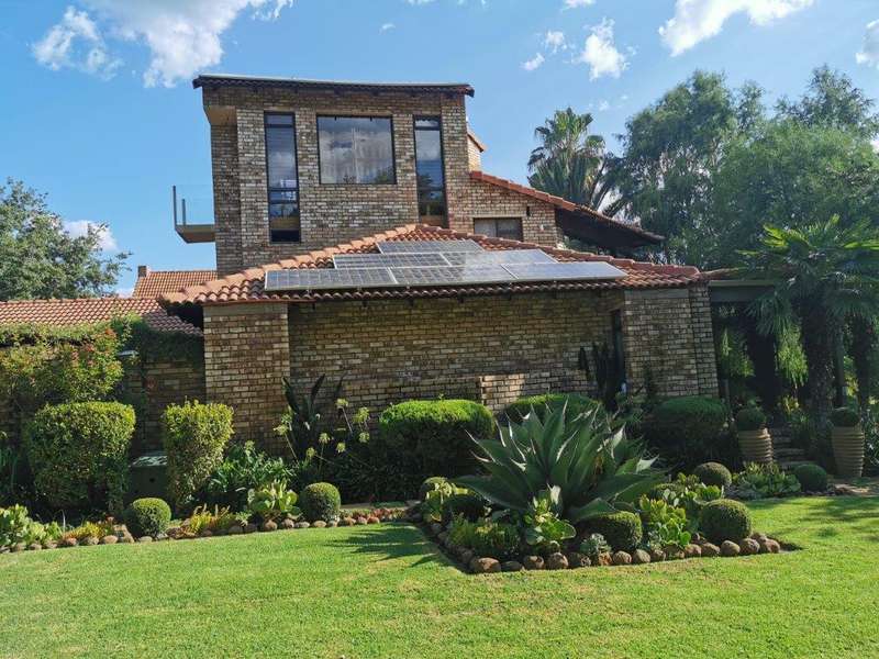 Luxurious architectual designed serenity! This beautiful home speaks of ultimate style and luxury without comprising the feeling of a home with a heart! You are welcomed into this home with a double volume entrance hall. The setting is one of a kind, living areas of impressive dimensions and views flowing seamlessly to the well equipped kitchen with solid rosewood cupboards, granite tops, unique concrete ceiling, separate scullery and laundry. A patio leads from the kitchen area. The property offers 3 bedrooms, 2 with en-suite bathrooms. The master suite boasts a private lounge, walk-in closet and en suite bathroom. The 2nd guest bedroom has access to the guest bathroom. These bedrooms are all situated on the first floor. On the ground floor you'll find the 3rd guest bedroom with en suite bathroom. A studio, which can easily be converted into a 4th bedroom, is also situated on the ground floor. The office has an amazing view of 270 degrees over the river and luscious garden. A study with balcony and uniquely designed Apiesdoring wood ceilings, is situated on the 2nd floor. It can easily be converted into a 5th bedroom and with some clever thinking already done, a 6th bedroom is also possible on the first floor. One could not tire soaking in the spectacular views over the river and amazing established garden with rolling lawns, whilst enjoying some outdoor time on the patio with built-in braai. Taking a late afternoon stroll in the garden will lead you to fish ponds and a quiet place to relax whilst gathering your thoughts. A double garage as well as carport will accommodate all the vehicles and there is also plenty of storage available. All of this can be found on a 558 sqm stand with an additional garden area of approximately 960 sqm. You also have the enjoyment of a 3,700 sqm park, leaving you with the feeling of peace and quiet. The serenity derived from the breathtaking garden and river views are priceless.