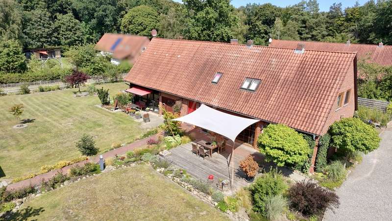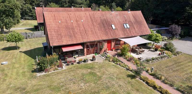 For sale is a well-maintained single-family house with a living area of about 182 m² and a plot area of about 2542 m². The house was built in 1965 and is in a well-kept condition. Extensive modernizations were carried out from the year 2012. These extensive modernizations include, among other things, new electrics (including external electrics), new water and sewage pipes, new liquid gas heating (condensing technology), new windows and doors, insulation measures and much more. The property is located on a hereditary leasehold that runs through the Klosterkammer until 2081. The Klosterkammer, whose predecessor organization originated in the 16th century, is one of the oldest and most traditional state authorities in Lower Saxony. The ground rent amounts to € 1,272.00 per year. The house is equipped with 6 rooms, including 2 bedrooms and 2 separate bathrooms, as well as a guest toilet. One of the bathrooms is still in the shell state and therefore offers the possibility to finish it according to your own ideas. Granite window sills in the interior give the house a high-quality appearance in addition to the generous window areas, which were renewed in 2013. Heating is provided by central heating, which was equipped with a new liquid gas heating system (condensing technology) and its own underground tank in 2012. In addition, the house has several fireplace connections for pellet and wood-burning stoves to provide cozy warmth on cold days. Everything has really been thought of here! The fully fenced property on which the house is located is accessible via an electric driveway gate and a pedestrian gate with intercom, providing a high level of security and privacy. A winter garden, a rainwater cistern and a fiber optic connection are further features of the house. In addition, a garden shed and a shed provide additional storage space. The partial basement with an area of 40 m² offers space for further storage. A workshop on the first floor offers space for craft activities. For a need-based living space expansion, the house offers, among other things, a development reserve of about 100 m², for example, for a studio. For environmentally conscious buyers, the property offers a charging option for electric cars. The newly landscaped garden completes the overall picture of the house and offers on the three terraces around the house the opportunity to relax outdoors and enjoy nature. For more information and to arrange a viewing, please do not hesitate to contact us.