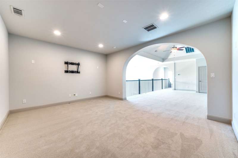 Stunning Britton Home on Oversized Lot Located in the Prestigious Windsong Ranch Community. This amenity-filled community is renowned for its crystal-clear Lagoon, pickle ball courts and award-winning lifestyle program. This desired open floor plan offers an abundance of natural light, neutral color pallet and loaded with upgrades throughout. Chefs kitchen open to family room with an oversized island, 6 burner cooktop, ample storage and butlers pantry. Family room is perfect for entertaining with slider doors leading to outdoor living. Private primary suite with spa-like bath and large closet connecting to laundry room. Well thought- out upstairs floorplan with Texas-sized game room, media room and two additional guest bedrooms with private baths. Private backyard is serene with lush landscaping and extended outdoor living space with solar shades. 3 Car garage with epoxy flooring. Class 4 roof June 24. Located less than 3 miles from the PGA and Fields District, Windsong Ranch is Prosper's most prestigious master planned community offering abundant amenities such as trails, sports courts, pools, a cafe, award winning on-site Elementary and an on staff lifestyle event planner.