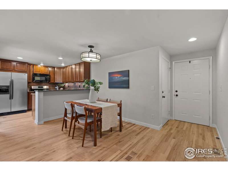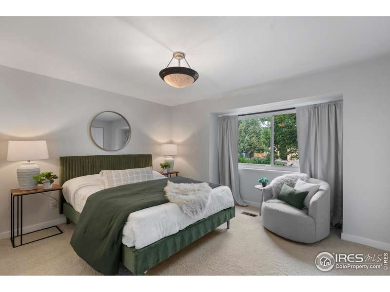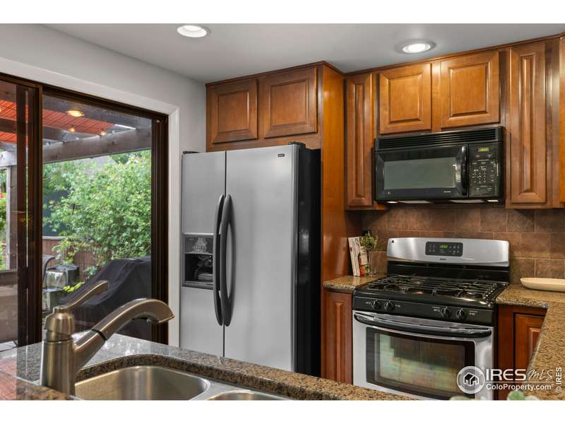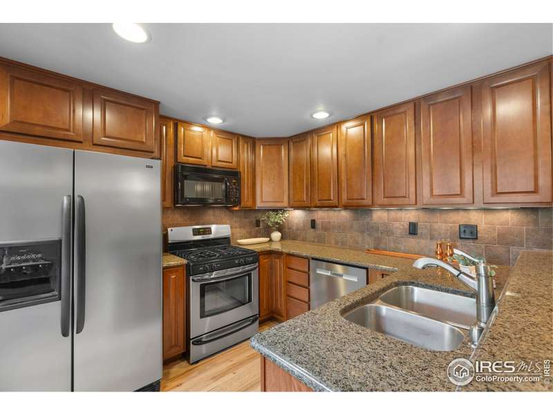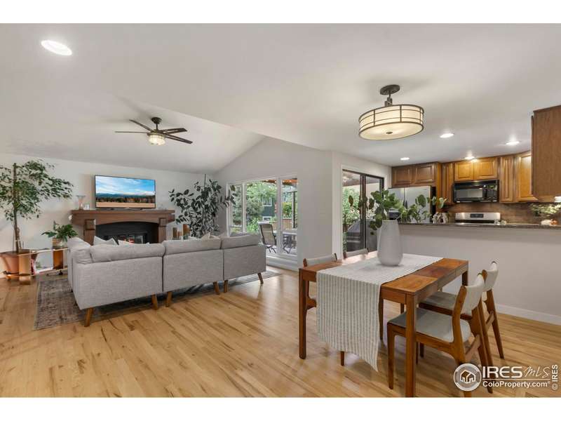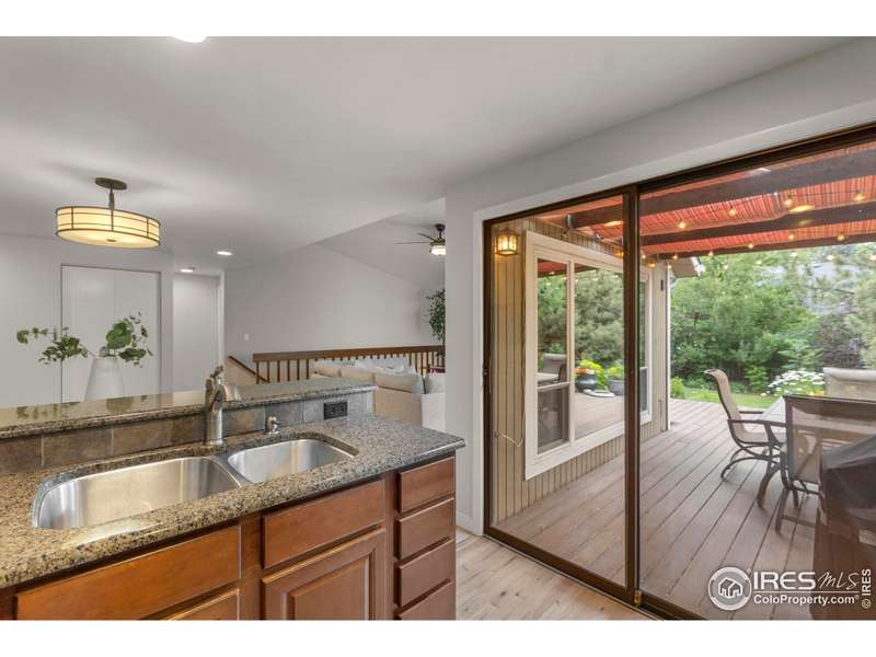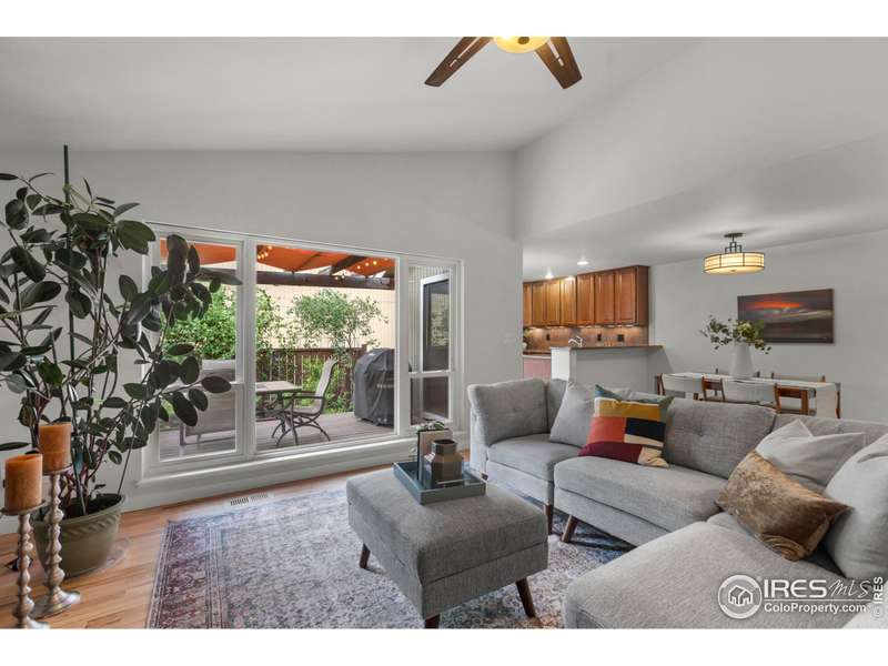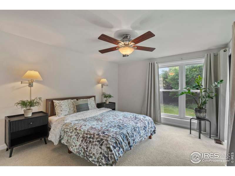 This beautifully updated ranch home is ideally situated within easy walking and biking access to some of south Fort Collins' best restaurants, shops, and the FC bike path. Tucked away in the highly desirable Landings neighborhood, residents enjoy exclusive lake rights (non-motorized lake activities permitted) along with pickleball, tennis, and a community pool for $1500 HOA annual fee and no METRO. Inside, you'll be welcomed by freshly refinished hardwood floors, new interior paint, and a warm, welcoming great room featuring a gas fireplace with custom mantle and serene views onto the expansive Trex deck. The kitchen combines style and function with granite countertops, a gas range, and wood cabinetry with under-cabinet lighting. The main level boasts two spacious primary suites, each with ample closet space and private baths. One suite offers direct access to the backyard via a sliding door - perfect for morning coffee or evening relaxation. Downstairs, discover a versatile oversized rec room with built-in shelving and a double closet - ideal for a media room, home office, or workout space. You'll also find under-stair storage, a large laundry room with cabinetry and folding counter, a generous basement bedroom, a nearby hall bath, and a crawl space for additional storage. Outside, the home truly shines. Enjoy one of the most private, tranquil backyards in the neighborhood with included water feature, featuring a pergola-covered oversized Trex deck, lush landscaping with drip irrigation, a full lawn sprinkler system, gated side yards, and a dedicated gas line for your BBQ. This is a rare opportunity to own a move-in-ready home offering incredible indoor and outdoor living - all in a central south Fort Collins location close to everything!