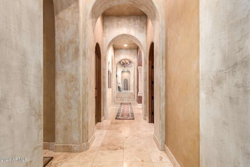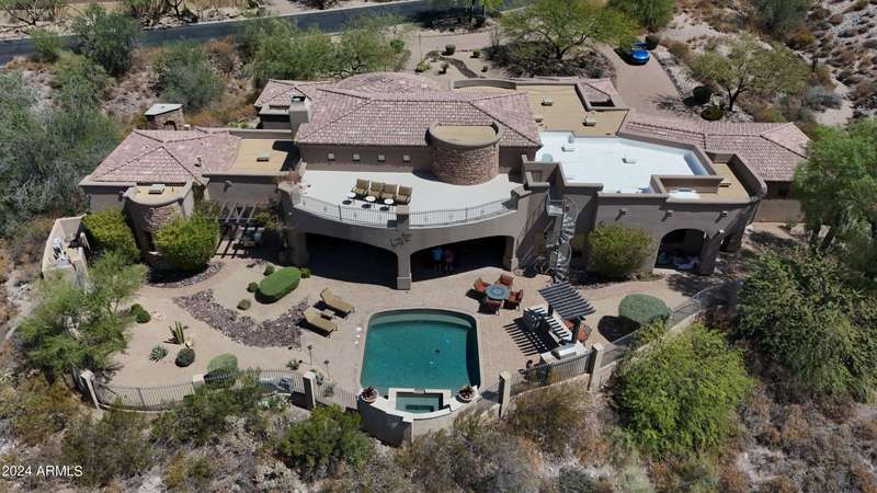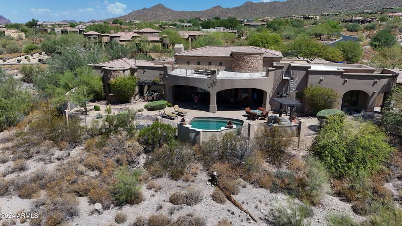 This 2 ACRE Estate Home is a rare find in beautiful Las Sendas. This stunning property offers the most incredible unobstructed south facing views of the surrounding mountains & city lights. Discover the luxury living at its finest with this captivating residence that boasts a circular foyer with water feature, 20+ ft soaring ceilings & a sliding glass wall that blends the interior with the exterior. The professional Viking kitchen, theater room, home office & 2 well located powder rooms complete the interior. Embrace the pinnacle of luxury living with a spacious rooftop deck showcasing the panoramic views of the valley. The extra large 4 car garage will house your vehicles & all your toys. Located near loads of shopping, dining & freeway access.
