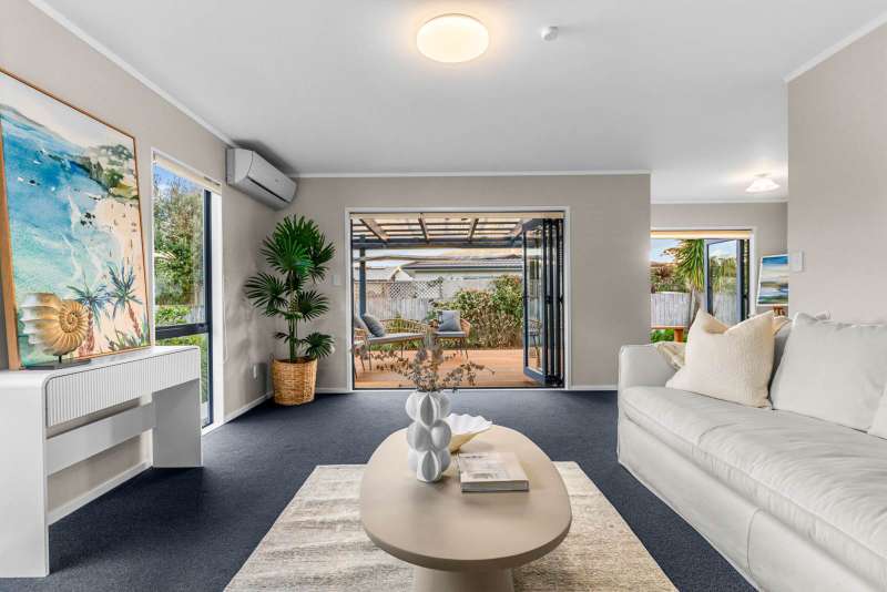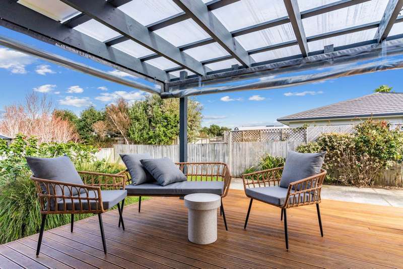 Welcome to a home where every detail has been thoughtfully considered for comfort, style, and effortless living. Freshly painted and immaculately kept, this light-filled 3-bedroom home offers a harmonious blend of indoor and outdoor spaces—perfect for relaxed family living, entertaining, or escaping to your own holiday retreat. The generous open plan layout flows seamlessly onto wooden decks on both sides of the home, inviting you to soak up the morning sun with your coffee, or unwind with friends in the sun in the evening. The spacious covered verandah, complete with brand new pull-down shades, creates a versatile extra living area—ideal for year-round enjoyment, no matter the weather. Three bedrooms including a master suite with an ensuite. A separate toilet and laundry add extra functionality for families. Nestled in a highly sought-after neighbourhood, you’ll be just minutes from MAZ Park, the sparkling estuary, and local shops. This property comes with a Healthy Home certificate, making it an outstanding choice for investors seeking peace of mind and compliance. Alternatively, first home buyers and holiday seekers will appreciate the turnkey presentation—simply move in and start living your best life. Contact us today to arrange your viewing and experience the lifestyle you deserve!
