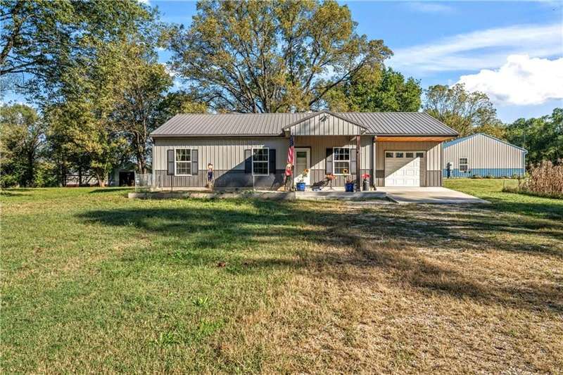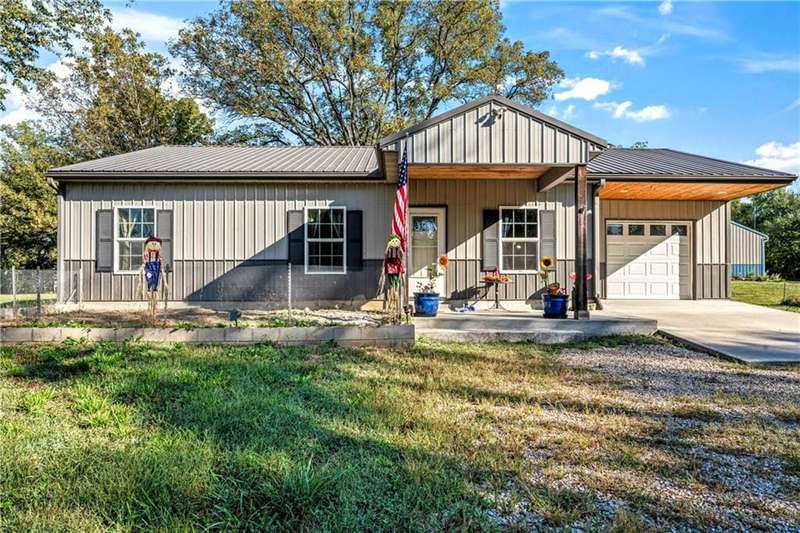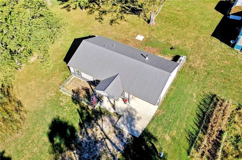 This 5-year-old barndominium has everything you need to feel right at home! It features 3 bedrooms, 2 full bathrooms, a nice size primary suite perfect for that king size bed. The kitchen has beautiful concrete counter tops and the rustic metal ceiling adds to charm of this move in ready home. The wood-burning stove in the mudroom keeps the whole house warm in the winterjust leave the kitchen door open and let the heat flow. The house sits on a large private lot with mature trees and comes with a water harvester for the garden that is tilled and ready for next years garden and conveniently located in the front of the house. VA, FHA, CASH or Conventional loans are welcome.