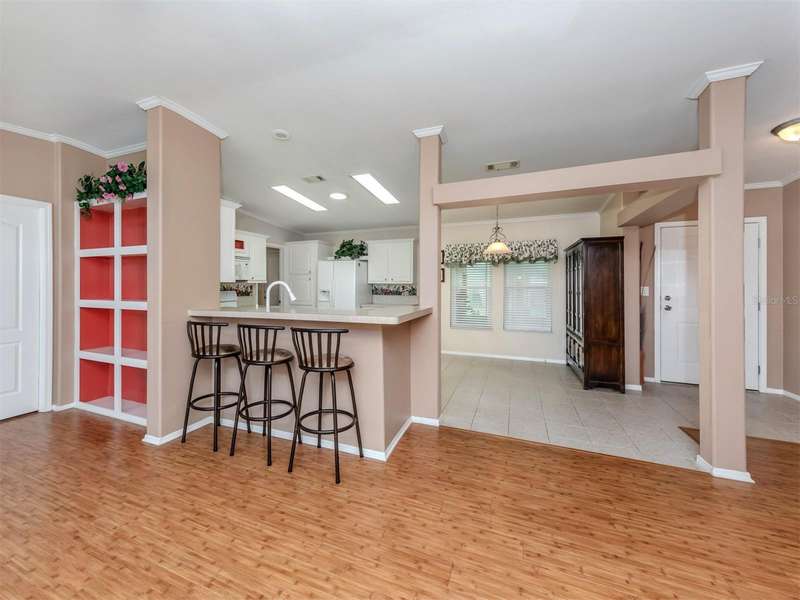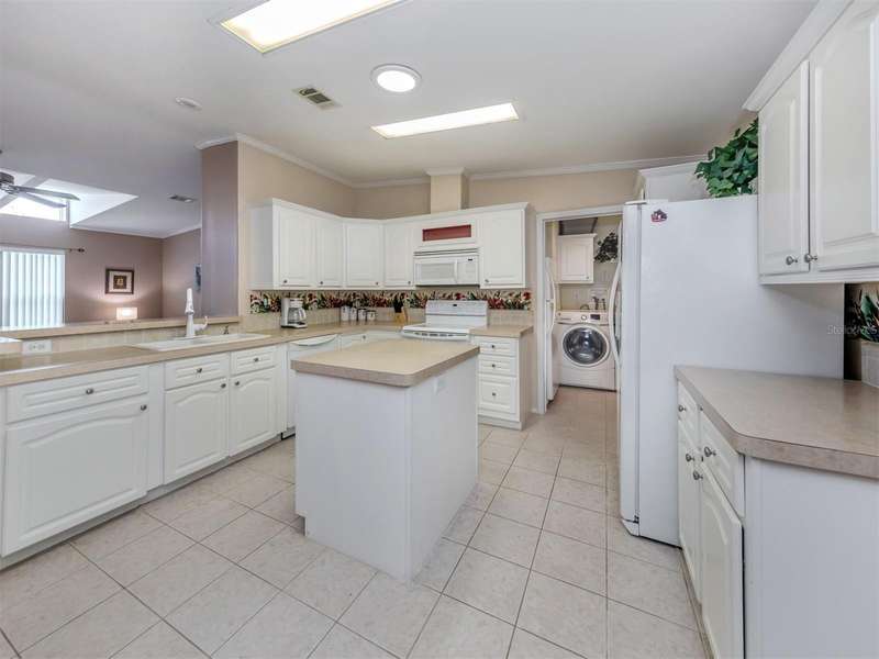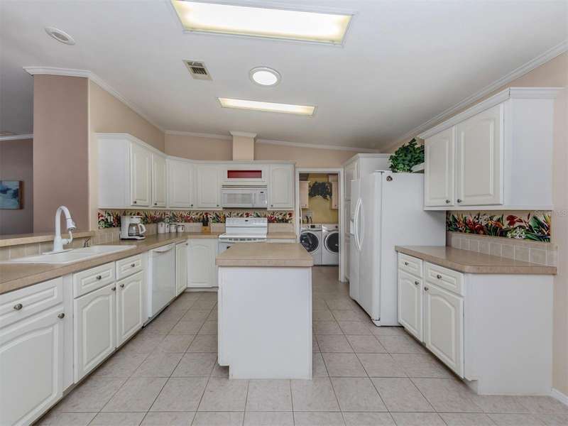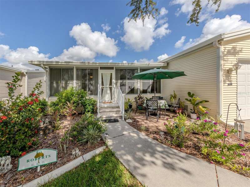 This charming 2003 Palm Harbor manufactured home is nestled along Salt Creek in the Village at Riverwalk, offering tranquil views of the preserve across the street. Featuring 3 bedrooms, beautiful bamboo floors in the living areas and bedrooms, and a spacious island kitchen, the open floor plan creates an inviting atmosphere. Recent updates include a 2023 roof, brand-new AC, and brand new windows throughout. The ensuite master bath boasts double sinks, a walk-in shower, and a large walk-in closet. Inside laundry, a two-car garage, golf cart and turnkey furnishings add to the convenience of this lovely home. The front Florida room, enclosed with acrylic windows, provides comfortable year-round use, while a charming paver patio in the front yard offers a perfect spot to relax. Located in the desirable Village at Riverwalk, residents enjoy access to scenic walking trails, a kayak launch, and lush, mature landscaping, all situated along the beautiful Myakka River in North Port, Florida.