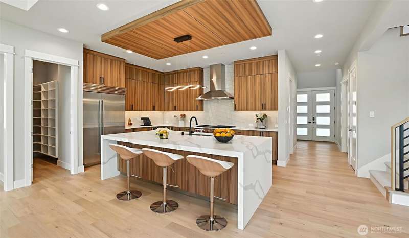 Last house! Don't wait!! Cassiopeia's a stellar collection of 5 NEW luxury homes! Experience modern opulence w/these meticulously crafted homes. Main LVL showcases a magnificent Great RM w/its mesmerizing 20' ceiling & sleek modern fireplace framed by custom tile work, gourmet kitchen's a culinary dream, den & Bedroom Suite. Upper LVL features a desirable 2nd den, Pooja RM & massive Primary Suite w/sumptuous 5-piece Bath. Lower LVL Rec RM's prewired w/7.1 Surround Sound. Enjoy covered deck & patio year-round. Thoughtful details abound - Dining RM soffit w/LED lighting, full-height tiled accent walls in the bathrooms, custom fabricated metal railings, wood racks in all closets & more! Central A/C, 3-car tandem garage. Coveted LK WA Schools!