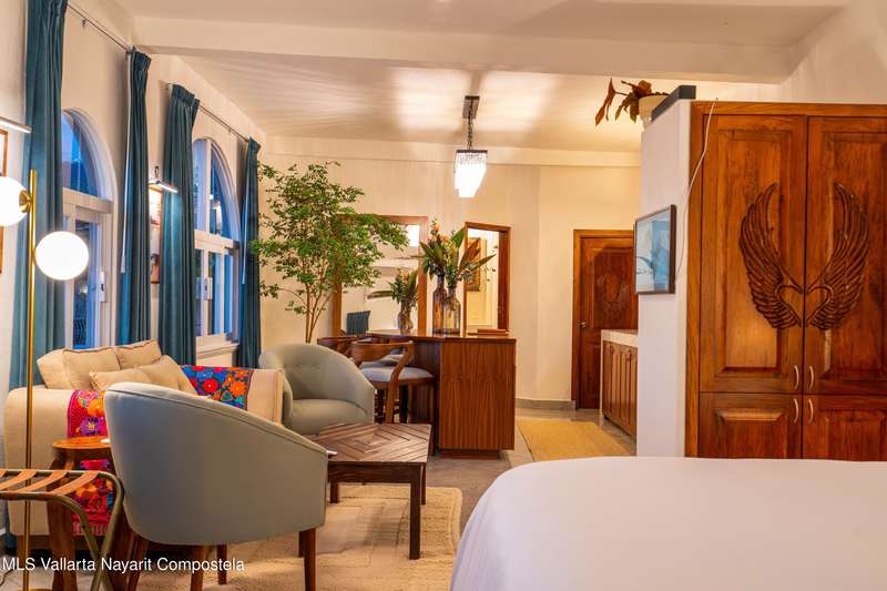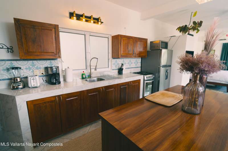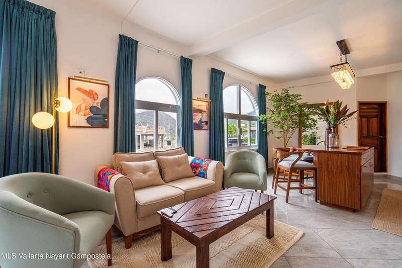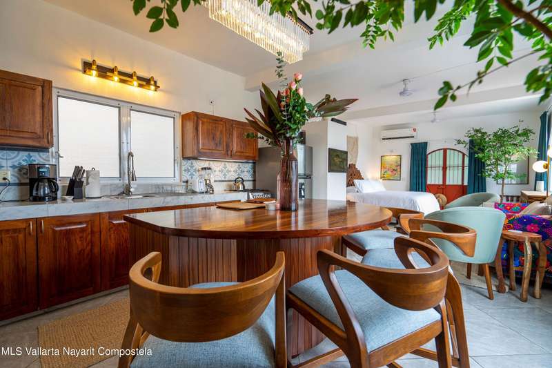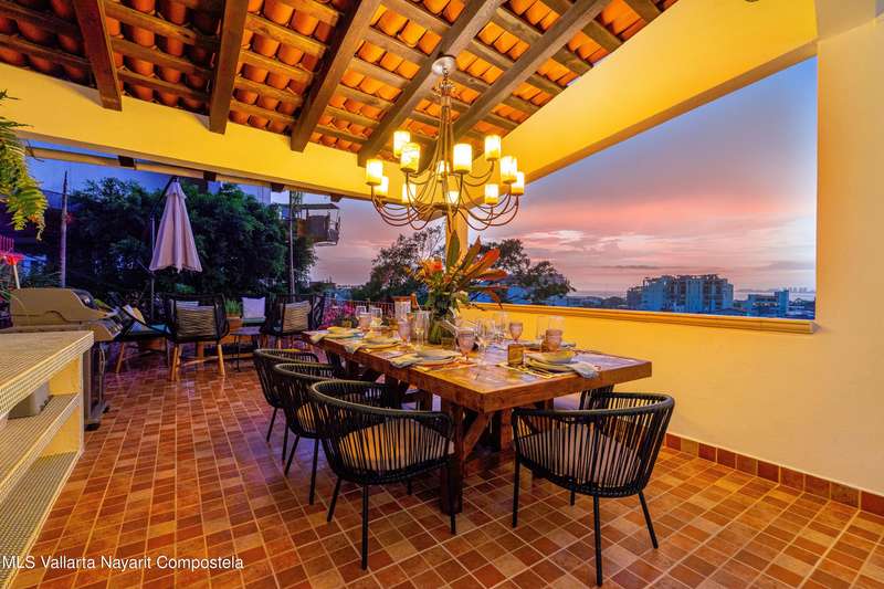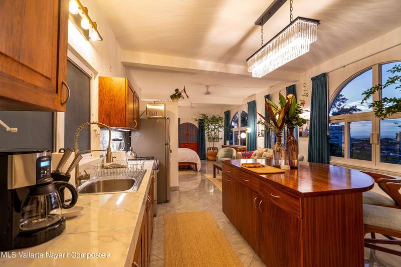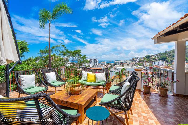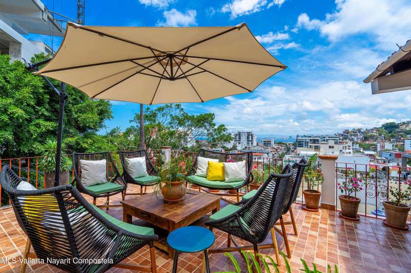 Casa Valentina, located above the Romantic Zone in South Puerto Vallarta, offers a unique home with rental potential. It is a 4/4 and includes a ground floor 1 bedroom apartment with full kitchen and bath, 2 studio rentals with kitchenettes and ensuite bathrooms, and a penthouse loft apartment with a full kitchen and ensuite bath. Each room is accessed externally, and can be rented individually. The property features a rooftop deck with an ocean view, a common area plunge pool, and is conveniently close to various services and entertainment options. Other amenities include bar, 2 filtered commercial ice machines, filtered sink water throughout the home, BBQ area, air conditioning in all living and sleeping rooms, garden, sitting areas, balconies, and rooftop dining and entertaining area.