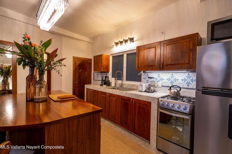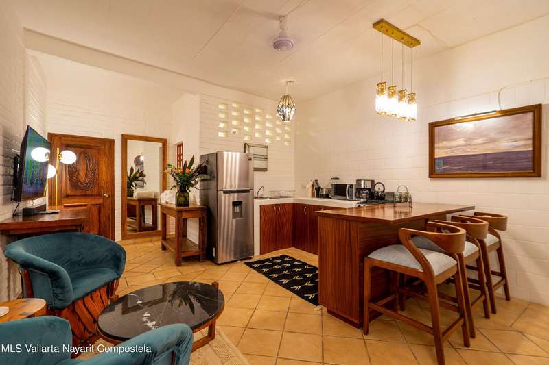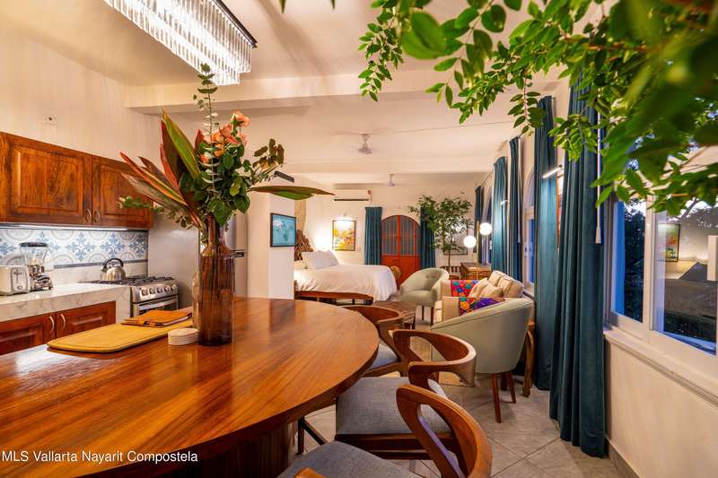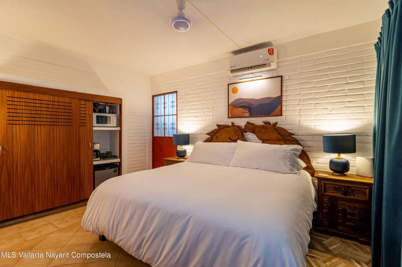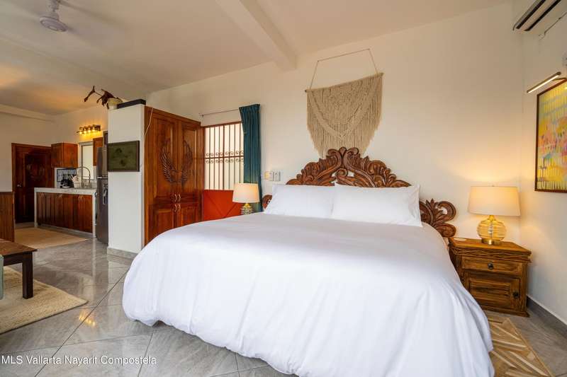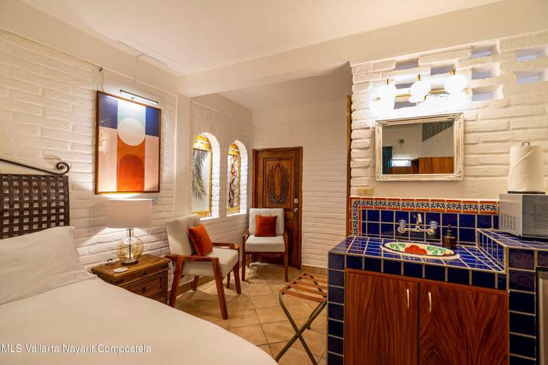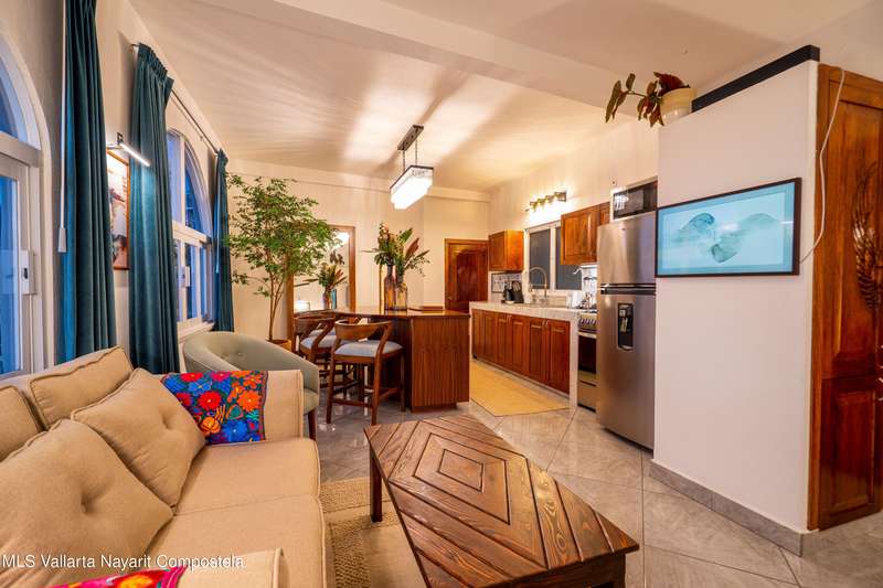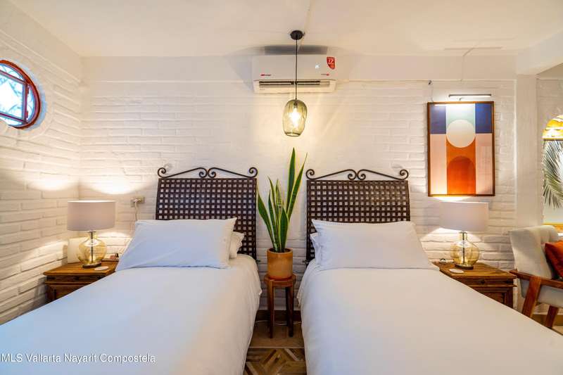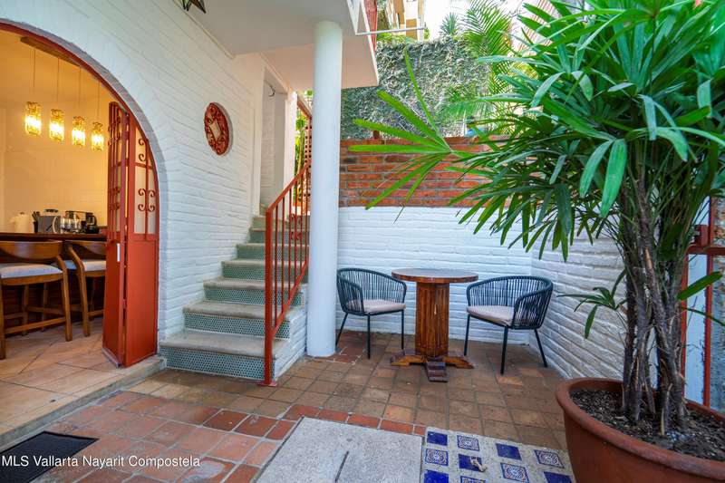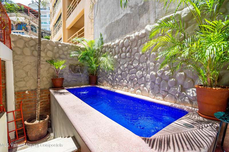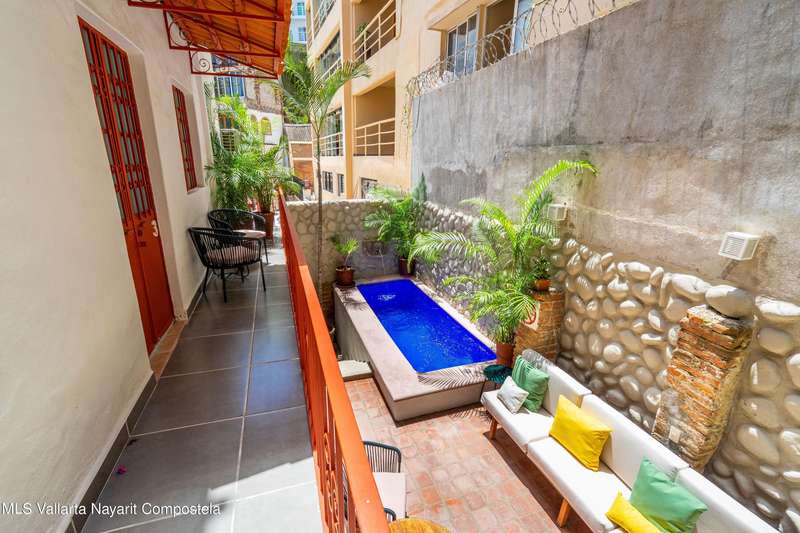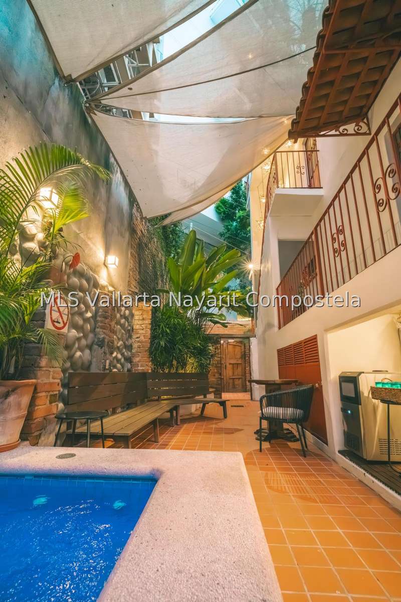 Casa Valentina, ubicada sobre la Zona Romantica en el sur de Puerto Vallarta, ofrece una casa unica con potencial de alquiler. Es una propiedad de 4/4 que incluye un apartamento de 1 dormitorio en la planta baja con cocina y bano completos, 2 estudios en alquiler con cocinas pequenas y banos privados y un apartamento tipo loft en el atico con cocina completa y bano privado. Se accede a cada habitacion desde el exterior y se puede alquilar individualmente. La propiedad cuenta con una terraza en la azotea con vista al mar, una piscina de inmersion en el area comun y esta convenientemente cerca de varios servicios y opciones de entretenimiento. Otras comodidades incluyen bar, 2 maquinas de hielo comerciales filtradas, agua filtrada del fregadero en toda la casa, area de