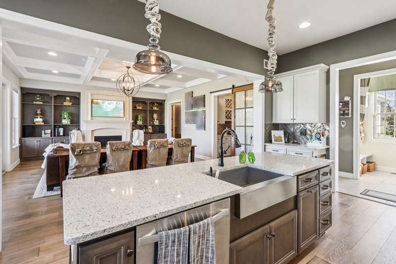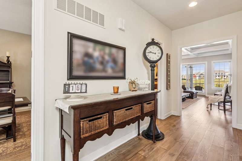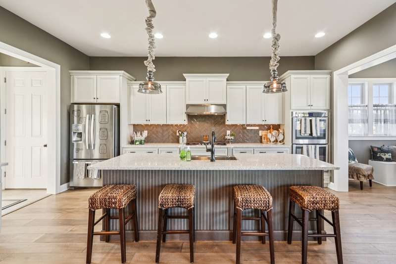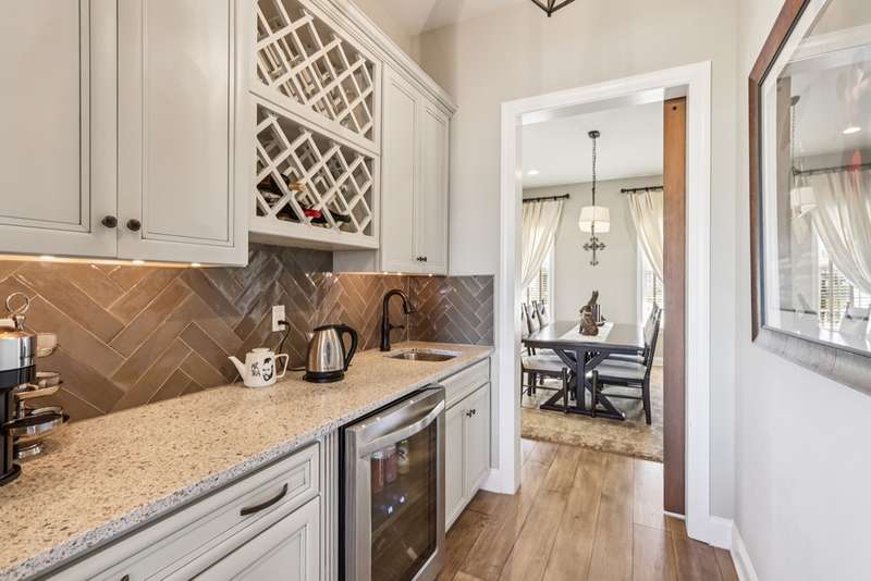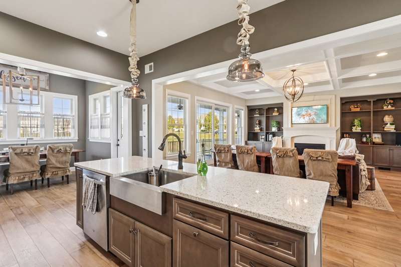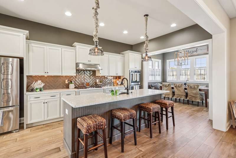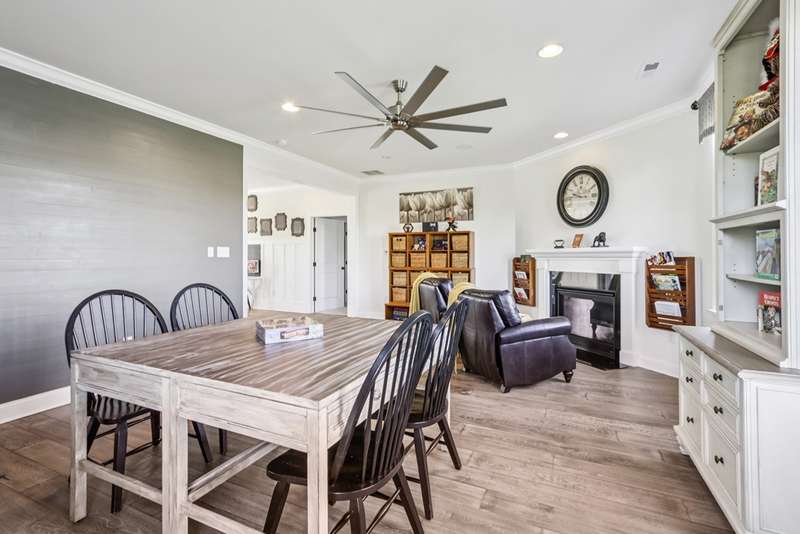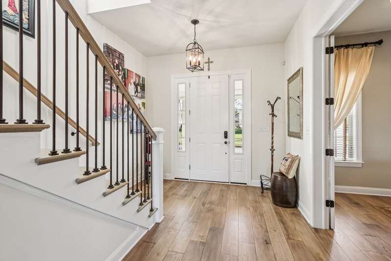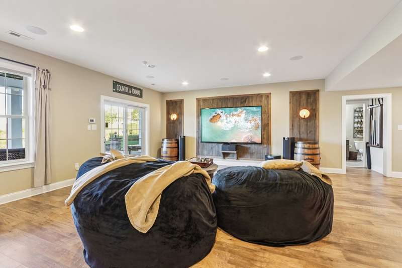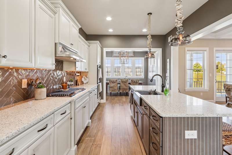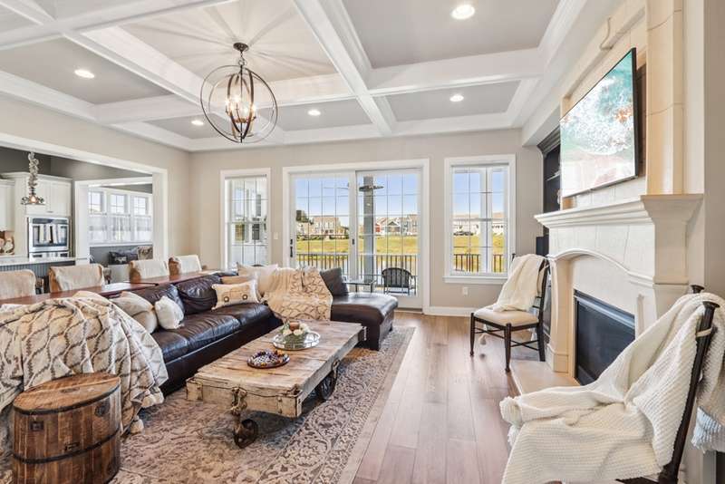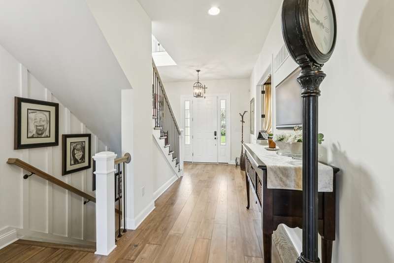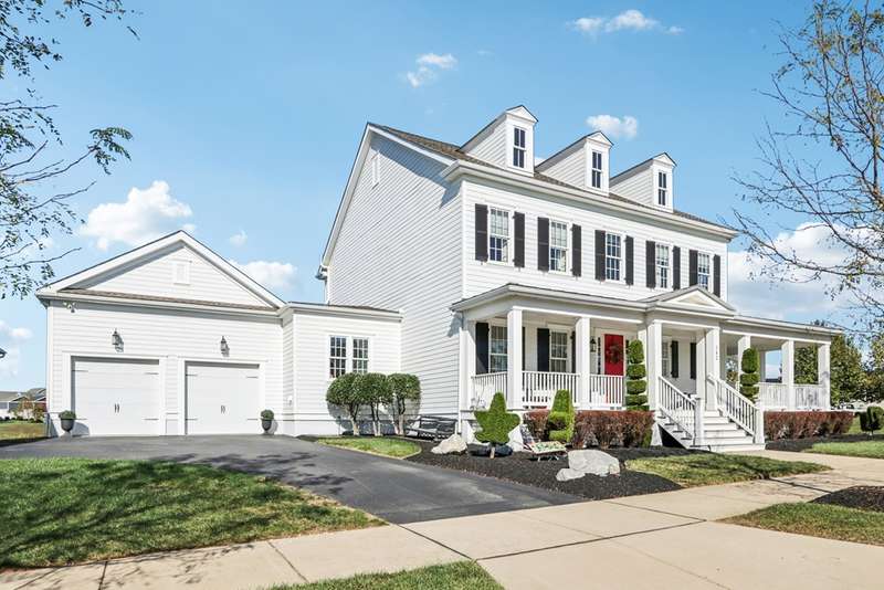 This stunning Modern Farmhouse offers the perfect fusion of luxury, comfort, and timeless design. With 5 spacious bedrooms, 4.5 bathrooms, and nearly 6,000 square feet of refined living space, this home is a masterpiece of craftsmanship and functionality. A wrap-around front porch welcomes you with warmth and charm, setting the tone for the exquisite interiors. Step inside to discover 7-inch wide Hardwood Oak flooring, custom millwork, and soaring 10-foot ceilings throughout.The formal dining room is ideal for hosting elegant dinners, complemented by a butler’s pantry featuring a wine fridge and a stylish half bath nearby. The expansive great room boasts coffered ceilings, custom built-ins, and a striking fireplace that is perfect for causal entertaining. Overlooking the great room is a gourmet kitchen outfitted with an oversized quartz island, premium gold star energy-efficient appliances, high-end custom cabinetry and sunlit breakfast room. A large pantry and laundry room are conveniently located just off the kitchen. The main-level primary bedroom is a serene retreat with its own gas fireplace and private access to the covered porch overlooking the tranquil pond. The spa-inspired ensuite bath features double vanities, an oversized shower, and a soaking tub. In the thoughtful upper-level design you will find a cozy family room, built-in workstation, a princess suite with a private bath, and two additional generously sized bedrooms connected by a Jack and Jill bathroom. The walk-out lower level is designed for fun and relaxation, complete with a custom bar, gaming area, fitness room, and more. Step outside to a beautifully crafted paver patio and enjoy peaceful pond views. Other exceptional features include: extensive custom woodworking, designer lighting, Hardie Plank siding, Anderson 400 windows, composite decking & built-in sound system.Best of all this home is perfectly sited on a premium lot bordered by parkland on three sides and is walking distance to parks, shops, dining, Wellness Center, Beer Garden, proposed Peach Market, and Lorewood Grove Elementary School This home is a rare opportunity to experience luxury living in one of Delaware’s most desirable communities. Schedule your private tour today and fall in love with everything this elegant Modern Farmhouse has to offer.