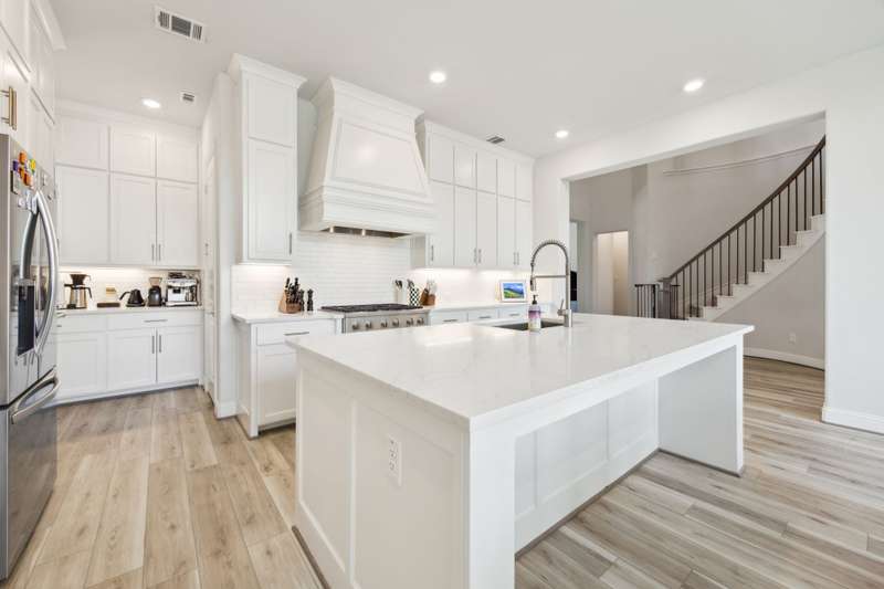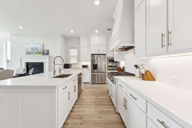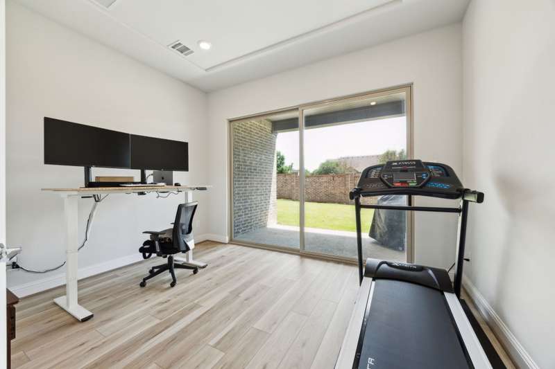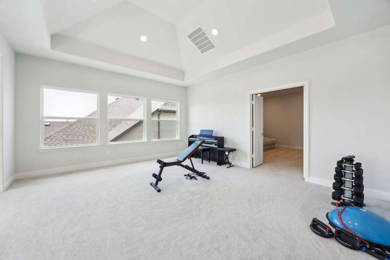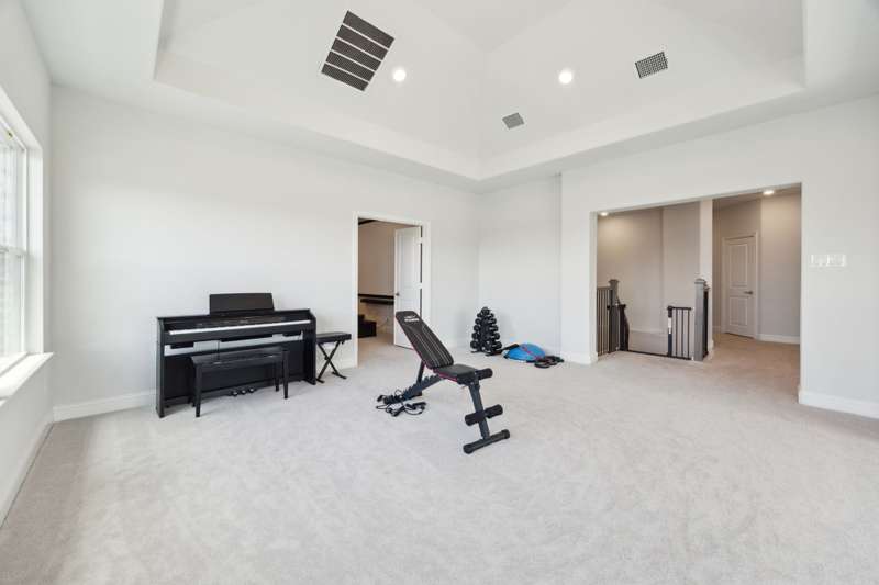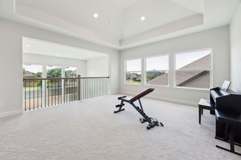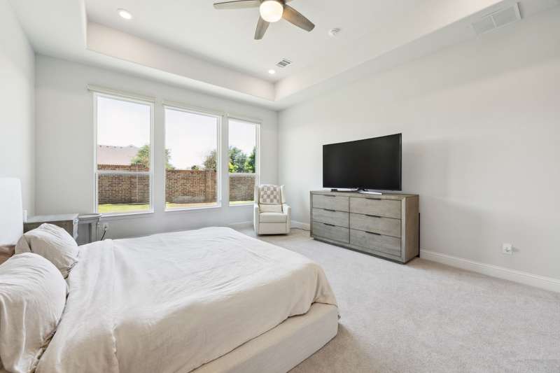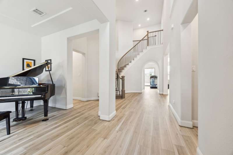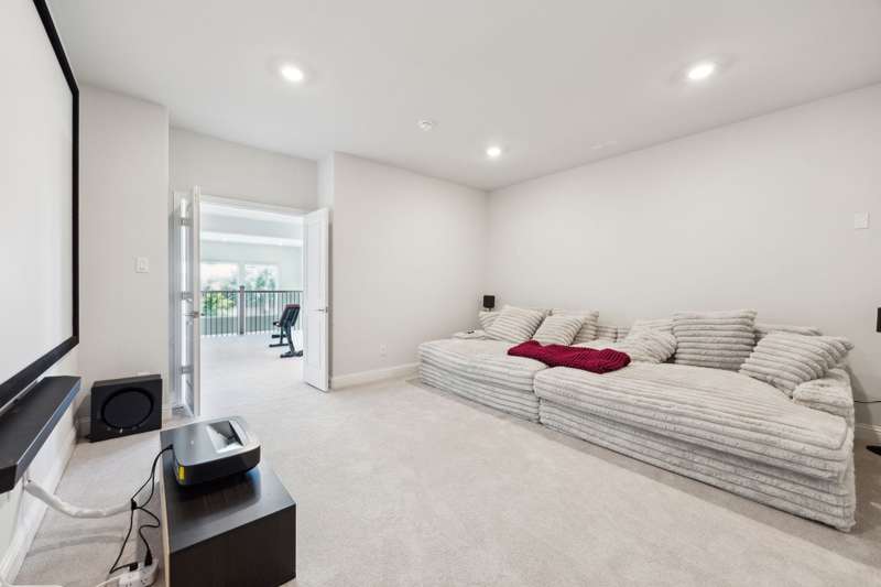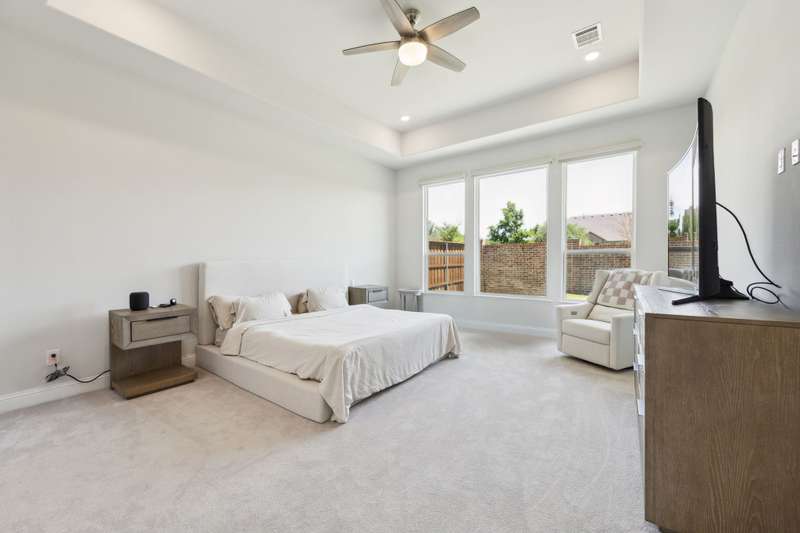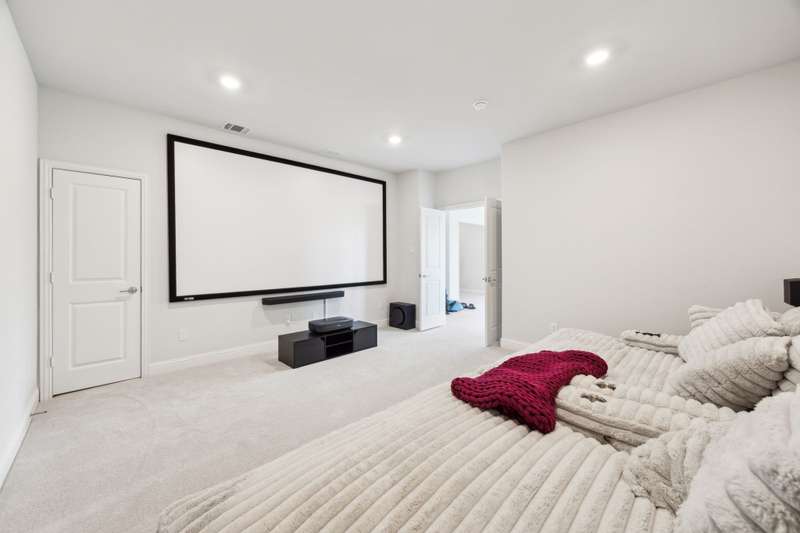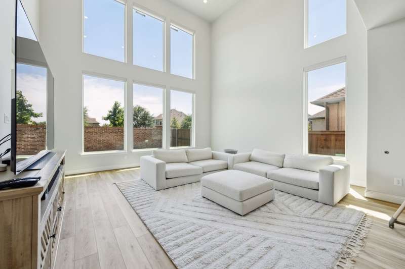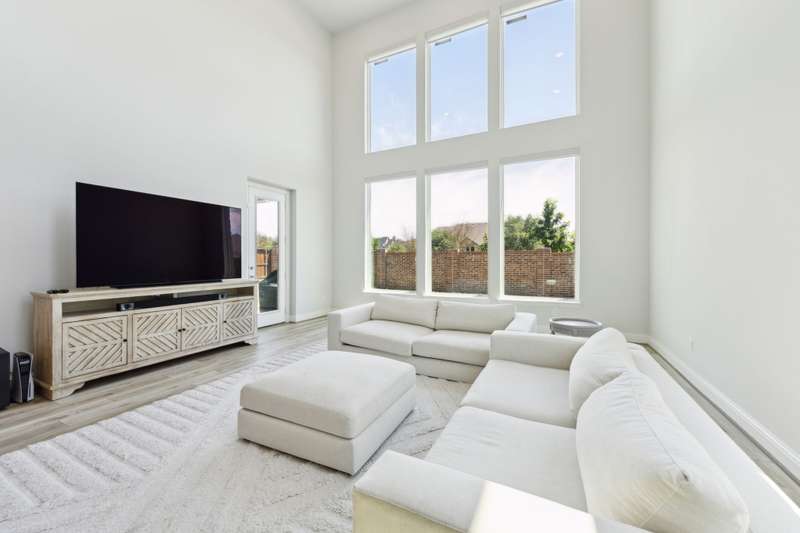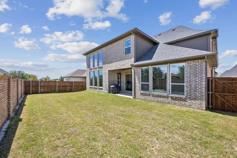 This impressive, upgraded home is a dream for entertaining, featuring over $100,000 in enhancements and thoughtfully designed living spaces. As you enter, youre greeted by soaring ceilings, elegant arched walkways, and a dramatic sweeping staircase. The formal dining room is bathed in natural light and overlooks a charming courtyard. Step through French doors into the sun-filled study, which offers serene backyard views through sliding glass doors. The spacious great room stuns with floor-to-ceiling windows that fill the home with natural light and create a seamless indoor-outdoor feel. From there, flow into the inviting breakfast nook featuring a cozy fireplace and direct access to the gourmet kitchen. The chefs kitchen is a standout with premium Caf appliances, including a 6-burner gas cooktop, a separate coffee bar, walk-in pantry, and an oversized quartz island. Retreat to the luxurious primary suite with a tranquil sitting area and a spa-inspired bath showcasing a walk-in double shower, dual vanities, and a generous walk-in closet. Upstairs, enjoy a fully equipped media room with sound-dampening walls and a 135 projector screen, as well as a game room for added fun. Three spacious upstairs bedrooms each offer ensuite baths and walk-in closets, while a downstairs guest suite provides privacy and comfort. Smart home upgrades include Wi-Fi-connected thermostats, Wi-Fi-controlled living room blinds, 4K security cameras, a video doorbell, and a Wi-Fi keypad master lock system. In the garage, you'll find an EV fast-charging connection, making it future-ready for electric vehicles. The home backs to expansive green space and is adjacent to an open lot, offering rare privacy and stunning natural views. Located in the acclaimed Lewisville ISD, with highly rated Hebron High School, and close to premier golf courses, Arbor Hills Nature Preserve, and upscale retail and dining, this home offers luxury, comfort, and convenience in one exceptional package.