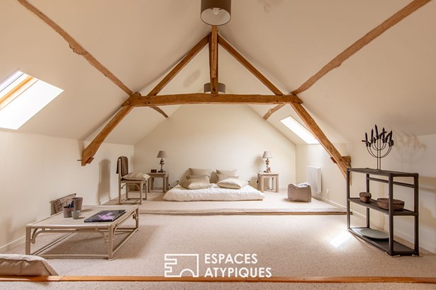 Nestled in a commune north of Saumur, this magnificent property consists of two fully renovated longere-style buildings.