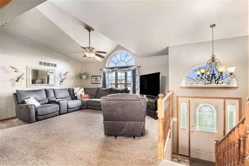 Hurry for the Holidays! This spacious 5-bedroom, 3-bath bi-level home with a 3-car garage, fenced yard, pool, and fireplace is truly a must-see! From the moment you step inside, you'll love the welcoming foyer that opens into a bright living room featuring vaulted ceilings and an abundance of natural light. The kitchen offers ample cabinet and counter space, a peninsula/breakfast bar, and stainless steel appliances that stay -- perfect for everyday living or entertaining guests. Hosting friends and family is easy, whether you gather in the open main level, relax in the spacious lower-level rec room with a cozy fireplace, or head out back to enjoy the large deck and pool during warm summer days. Unwind in your private primary suite, complete with vaulted ceilings, a generous closet, and a luxurious bath with jetted tub -- the perfect retreat to let the stress melt away. With so many wonderful features and a convenient location near shopping, walking trails, and more, this home truly has it all. Priced to sell -- schedule your showing today and make it yours before the holidays!
