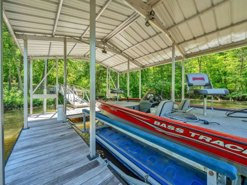 If you are looking for that special lake property with your own dock and privacy, this one is for you. 1.58 acres where no one will be able to build beside you or behind you. A detached 30x40 garage with a workshop in the back. Also 2 car carport attached to the home. No worries, for storms the property has a storm shelter ready for you. 3 bedrooms, 2 baths, living room with gas fireplace, large kitchen with lots of counterspace and cabinets, all newer stainless appliances stay in the kitchen, separate dining room, large utility room with washer and dryer included. The master bedroom has a large master bath with separate shower and garden tub plus double sinks. This immaculate home is like brand new with updated hvac about 2 years old, roof was put on in 2017. The boat dock has its own lift and electricity. Beautiful lake property for your summer retreat or living full time at the river. Home is on permanent foundation and right across from Beaver Dam Marina.