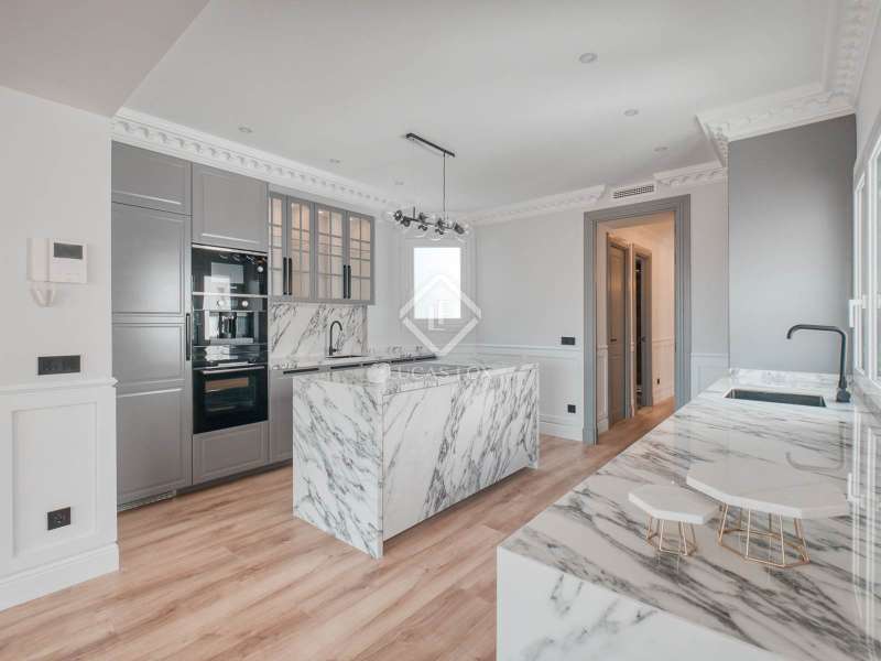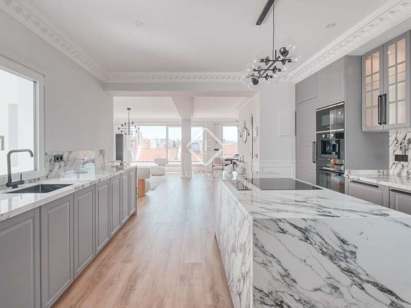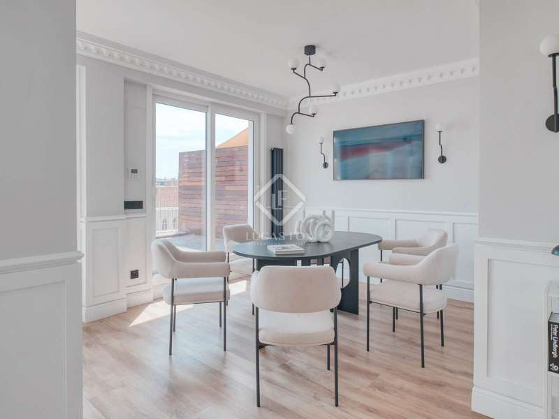 Lucas Fox presents this wonderful penthouse with an impressive 25 m2 terrace. The property has been recently renovated with the best qualities and excellent finishes, and a large living room with a viewing point and two exterior balconies was designed. The kitchen is independent and is equipped with all the high-end appliances , which blend in harmoniously with the furniture. On the other hand, the night area houses three bedrooms with en-suite bathrooms, a guest toilet and a small laundry room. The property has double access: the main one and the service one. The service entrance connects directly with the top floor, where we find a large storage room. As for qualities, we have gas central heating and ducted air conditioning on the ceiling, while La Finca offers a concierge service. It has an excellent location, as it is situated in the heart of Recoletos. Furthermore, this luxurious apartment is very well connected and surrounded by all the necessary amenities , such as shops, restaurants and supermarkets. Please do not hesitate to contact us for more information and to arrange a viewing.