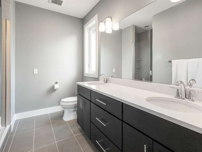 2019 Modern Green Built home in Craggy Park, walkable West Asheville's newest green community with streamside trails, organic gardens and a private park. Built by JAG Construction, features include an open floor plan, gourmet kitchen with quartz countertops, sunny back deck off of living room, hardwood floors, and large windows for great light. Primary suite on main level with ensuite full bath. Second floor has two bedrooms and one full bathroom. Finished basement with separate entrance has bedroom, full bath with wet room and large media/bonus room. Low-maintenance yard is professionally landscaped. Low energy bills and many green features. Walkable/Bikeable to WAVL Shops, dining, farmers market and music venues. Light and bright and room for ALL with 4 bedrooms, 3.5 baths.