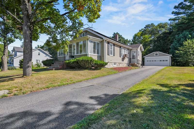 Discover this inviting ranch in a convenient Brockton location, offering a blend of comfort, flexibility, and modern updates. The bright living room with recessed lighting creates a warm first impression and flows into an efficient kitchen with granite counters, stainless steel appliances, and a dining area. The main level provides three comfortable bedrooms, including a primary with private half bath, along with a full tiled bath. The finished lower level is a true bonus, featuring a spacious family room, laundry area, second full bath, and two additional rooms ideal for guests, office, or hobbies. A large fenced yard, enclosed porch, two-car detached garage, and paved driveway provide plenty of outdoor and parking options. Energy-efficient features include solar panels and a Tesla charger. Close to shopping, schools, parks, and highway access, this home is ready to welcome its next owner.