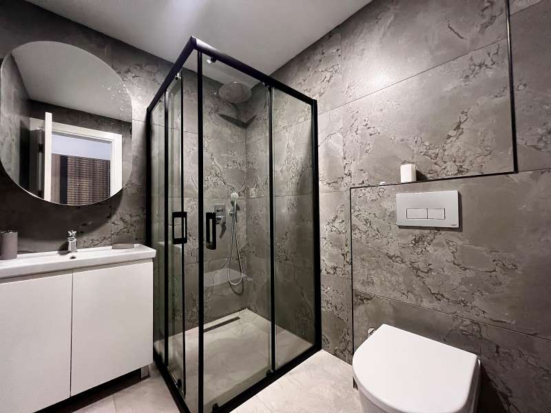 The sea view property will be delivered with a steel door, PVC windows, kitchen furniture, countertop, and shower cabin.