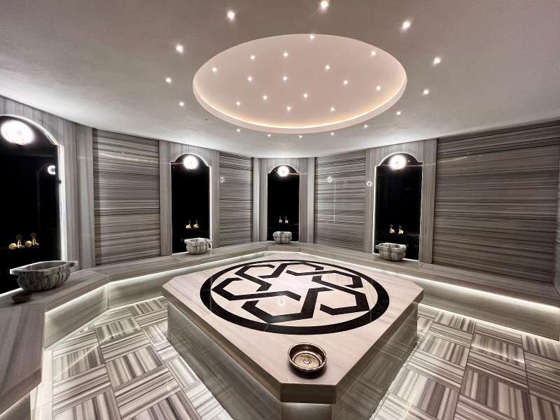 The complex has a communal pool with an aquapark, children's playground, relaxation area, Turkish bath, sauna, steam room, lobby, double elevator, security guard, 24/7 camera systems, generator, outdoor car parking, and carefully designed landscape design.