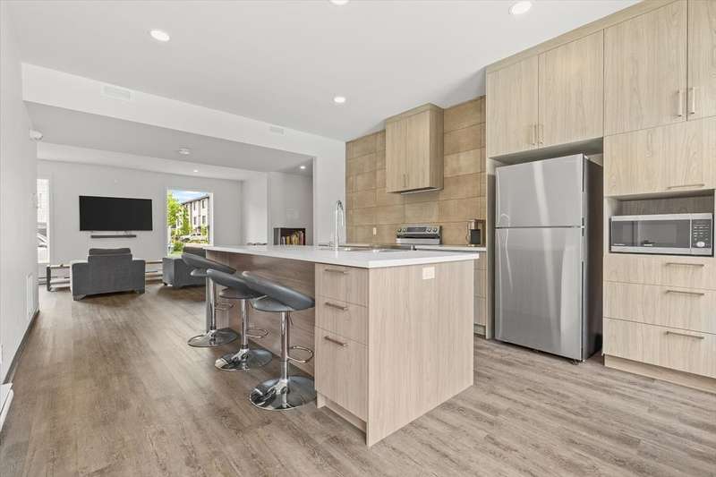 The LINQ project by Les Habitations Sylvain Menard offers beautiful town homes with luxurious finishings and amenities. This home has a very unique design built on 3 floors with a backyard and a garage. The house is very spacious featuring a family/office space on the entry level, 9ft ceilings, a gorgeous kitchen with quartz countertops, dinning room, living room, and a full bathroom on the 2nd level. The 3rd floor offers 3 bedrooms and a full bathroom with a separate shower and self-supporting tub. This project includes several amenities such as a pool, club house, park, and visitor parking. Be the first to live in this home!