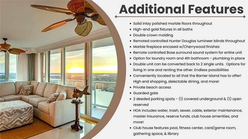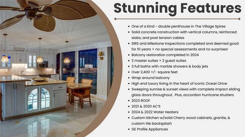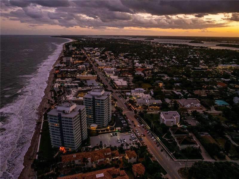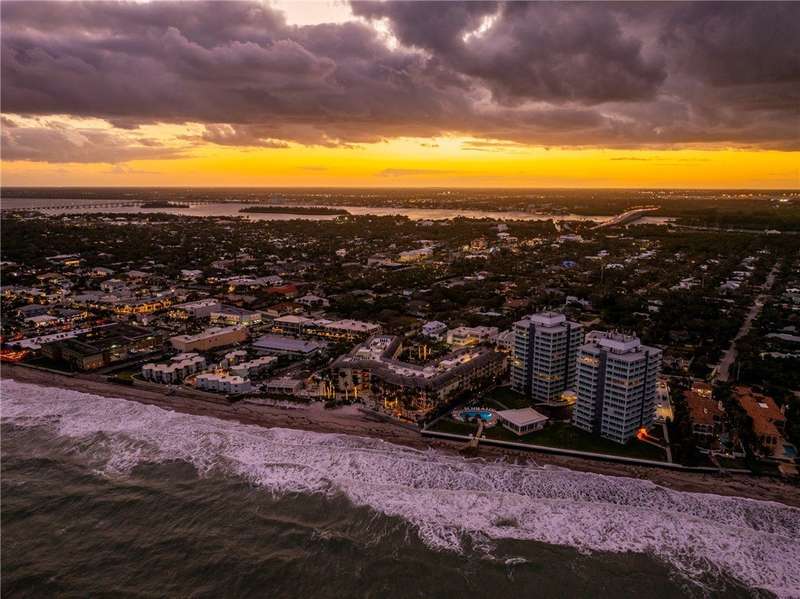 This extremely rare DOUBLE penthouse situated atop Vero's most famous "Village Spires" and in the heart of iconic " Ocean Drive" offers the best view in Vero Beach= a true once-in-lifetime opportunity! Enjoy surreal sunrises & breathtaking sunsets from every room. Lux upgrades include marble floors, custom cherry wood cabinets, granite counters, impact windows & accordion shutters for peace of mind & sense of security. SIRS & Milestone Inspections completed-good for 10 years=No special assessments or surprises! Located on Ocean Drive.