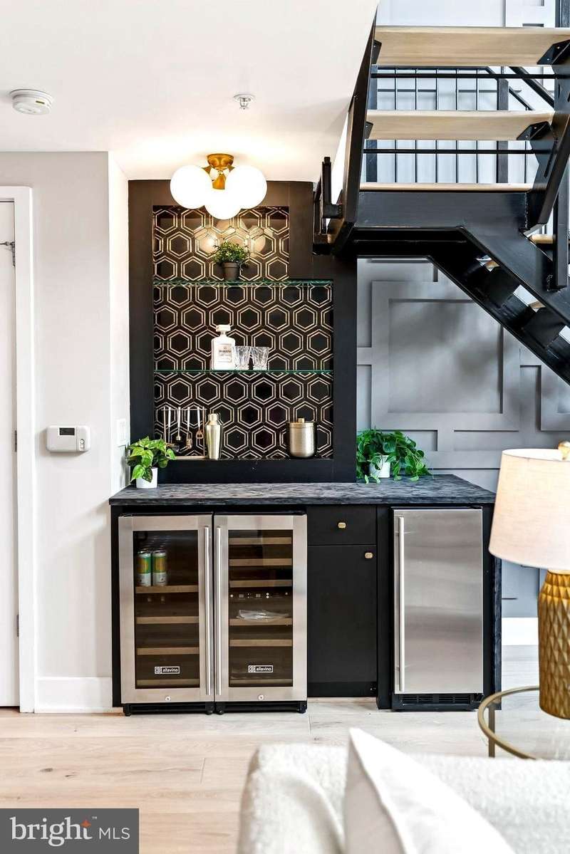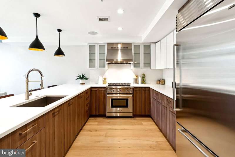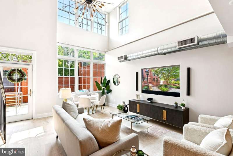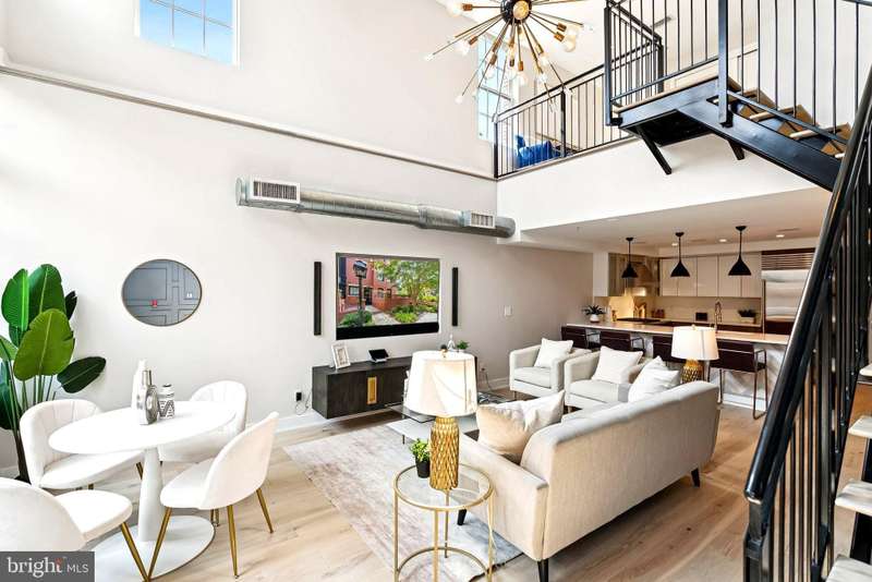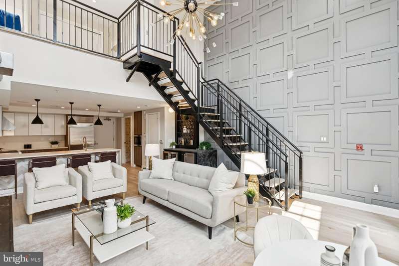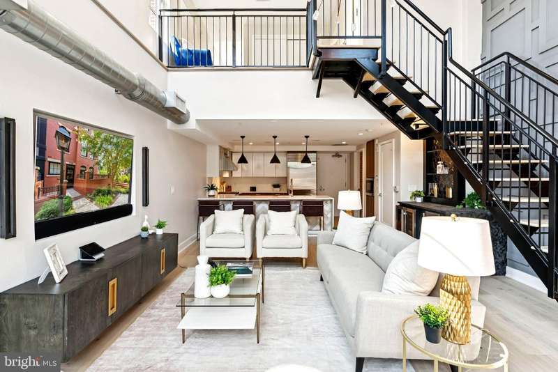 Next-Level Loft Living. This two-story stunner at Gaslight Square isn't just a condo, it's a vibe. Soaring 20-foot ceilings, a dramatic wall of glass windows, a custom-designed wall, and two private outdoor spaces make this home feel more like a boutique penthouse than anything else in Arlington. Enter directly from your garage or private patio. No need to go through shared hallways unless you choose to. The open living space impresses with a striking custom feature wall, built-in bar complete with beverage fridge and ice maker, designer lighting, and sleek motorized shades. The chef's kitchen is fully loaded with a Wolf Stove & Subzero Refrigerator, quartz counters, and a waterfall island seating perfect for hosting. Upstairs, a light-filled lofted lounge adds versatility. Perfect for a home office, reading nook, or creative space. The spacious bedroom opens to a second private terrace and features a custom-organized walk-in closet. The luxe bathroom delivers a spa-worthy experience with a sleek double vanity and a walk-in shower that feels like a retreat. Prefer a more traditional entry? A secondary door from the building hallway offers that option. Two garage parking spots, an EV charger, and not one - but two - storage solutions: a free-standing cabinet and a private storage room just outside your door. All this in an unbeatable location between Rosslyn and Courthouse Metros. Parks, coffeeshops, restaurants, immediate city access. It's all right here. One look and you'll get why this place is anything but ordinary.