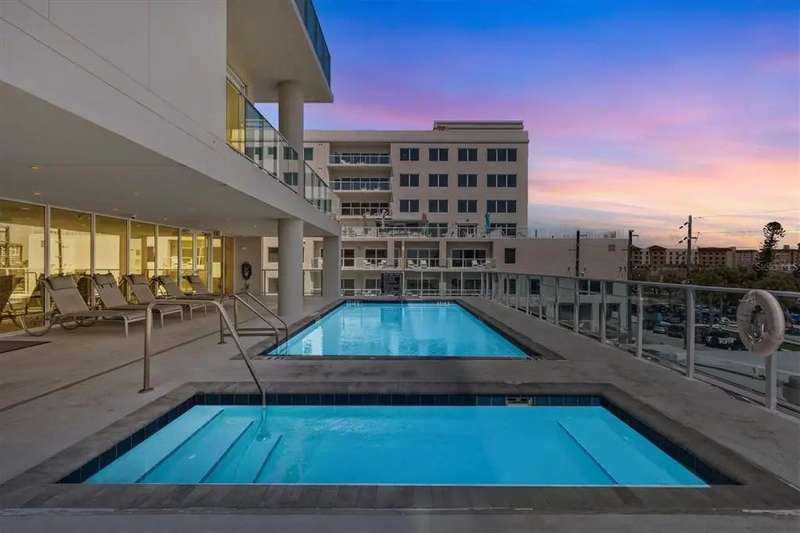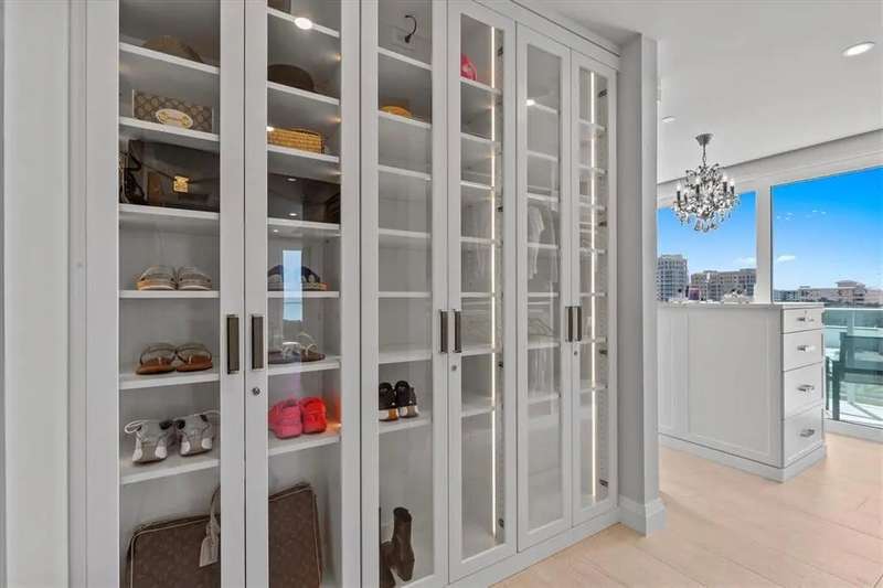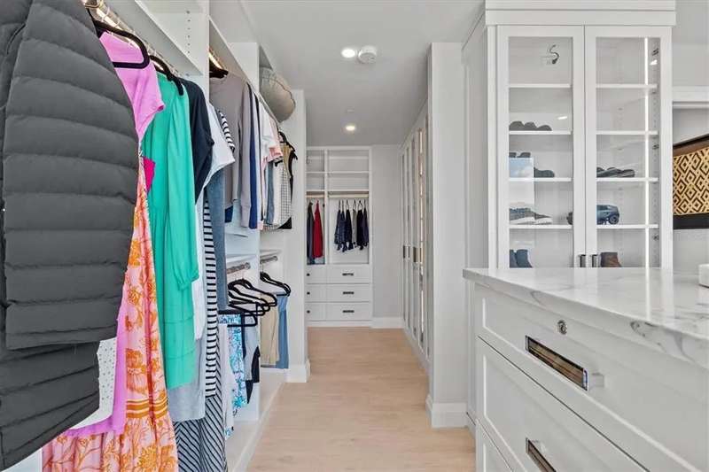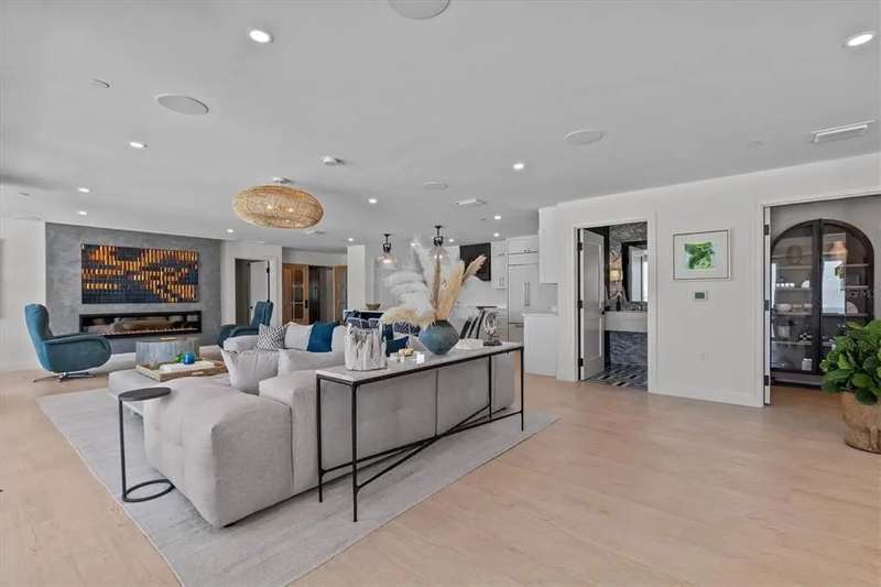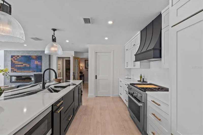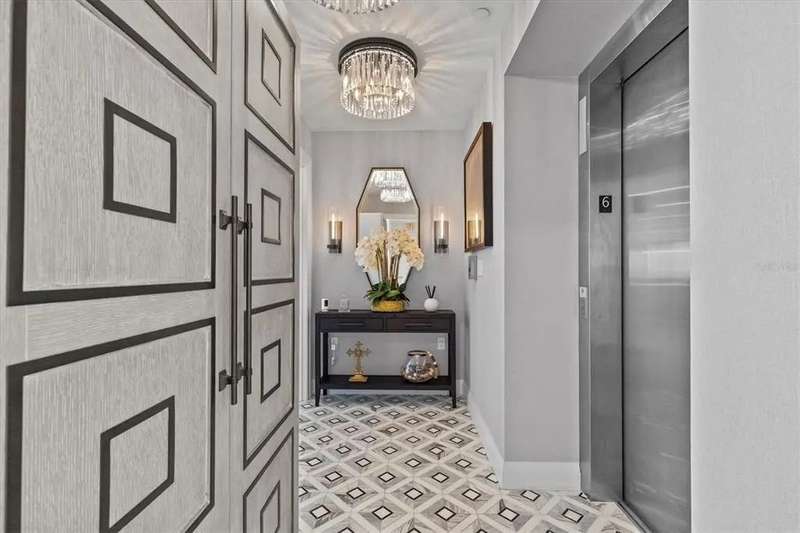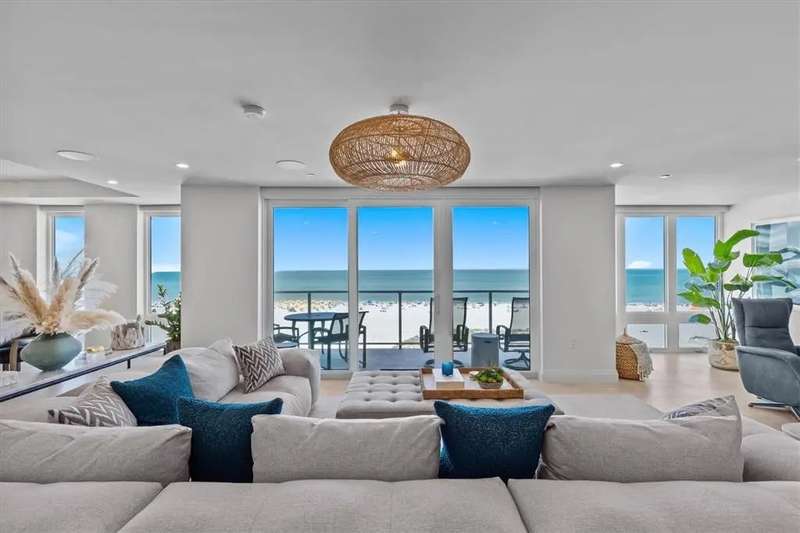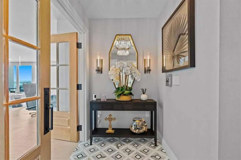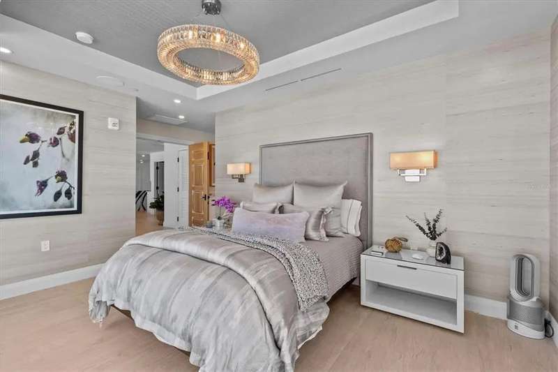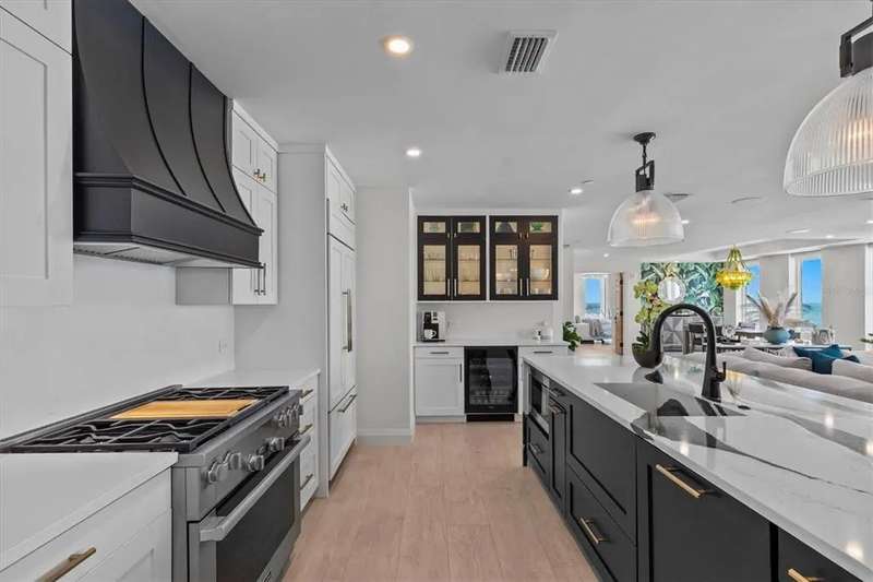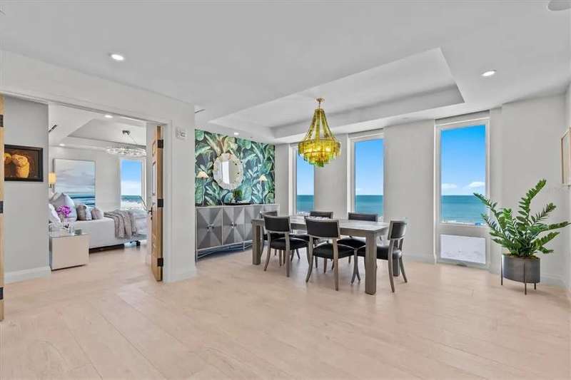 Experience the ultimate in luxury beachfront living at Pura Vida Clearwater Beach, where sophistication blends seamlessly with elegance. This exceptional 2,240-square-foot condominium features two bedrooms, a bonus room, an office, and two and a half bathrooms, designed with an open-concept layout that invites natural light and maximizes ocean views. The living, dining, and kitchen areas flow effortlessly into private glass-paneled balconies, providing the perfect setting for both entertaining and everyday relaxation. A harmonious mix of modern and traditional furnishings creates a transitional aesthetic that exudes livable luxury, while custom finishes and designer fixtures by Franco A. Pasquale Design Associates elevate the home's refined ambiance. The chef-inspired gourmet kitchen is a masterpiece, featuring top-of-the-line Miele and Sub-Zero appliances, sleek quartz countertops, custom cabinetry, a wine fridge, a gas stovetop, and a discreetly integrated dishwasher and refrigerator. The centerpiece is a striking waterfall quartz island with integrated deep sink, ideal for preparing meals while enjoying sweeping oceanfront views. After dinner, the primary bedroom provides a serene retreat with generous proportions, floor-to-ceiling windows, and a private balcony which is perfect for sunset gazing. Its en-suite spa-like bathroom boasts dual sinks, a separate water closet, a dedicated vanity, a soaking tub, and a glass-enclosed shower, all enhanced by a luxurious towel warmer. The walk-in closet is nothing short of a boutique-inspired haven, complete with illuminated wardrobe, chandelier, spacious jewelry cabinet, and a hidden washer and dryer with water filtration system, for ultimate convenience. For your out-of-town guests, the guest bedroom offers privacy and comfort with ocean views and its own en-suite bathroom. The oversized walk-in closet has been thoughtfully reimagined into a charming sleeping nook, featuring bunk beds and a custom mural of Clearwater Beach, ensuring every guest has a memorable stay. This property offers secure, gated access with two designated parking spaces that pre-wired for charging stations. A secure private elevator opens directly into the foyer, with an additional secure entry for added peace of mind. Practical features include a bike storage room, a designated beach locker, and a spacious air-conditioned storage unit. Situated in the heart of Clearwater Beach, this prime location offers easy access to pristine sands, vibrant dining experiences, boutique shopping, and recreational activities such as pickleball and a nearby playground. After a day exploring the best of Florida's renowned coastline, unwind by the oversized heated pool and spa, stay active in the well-appointed fitness center, or gather with friends in the inviting club room. Combining luxurious design, thoughtful functionality, and a prime beachfront location, this exceptional property is the ultimate coastal retreat. Contact us today to schedule your private showing and discover the unparalleled lifestyle awaiting you at Pura Vida Clearwater Beach.