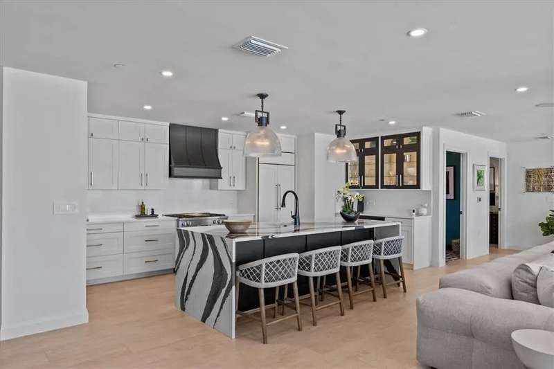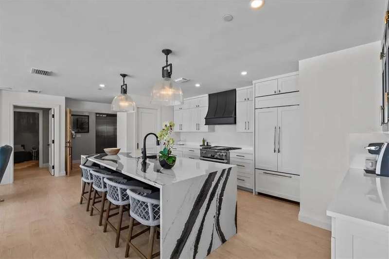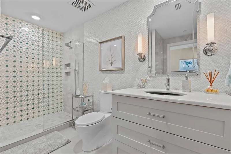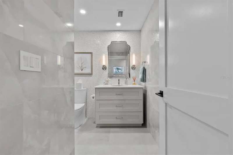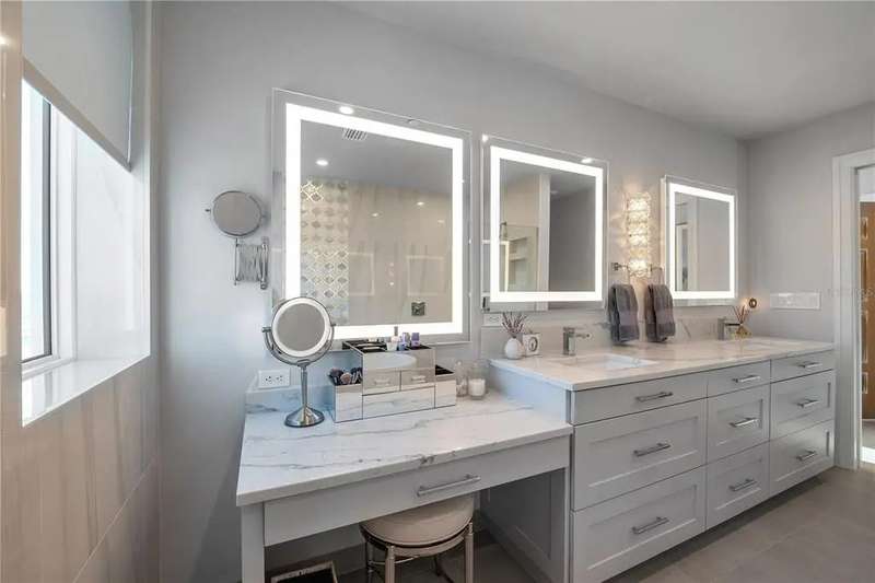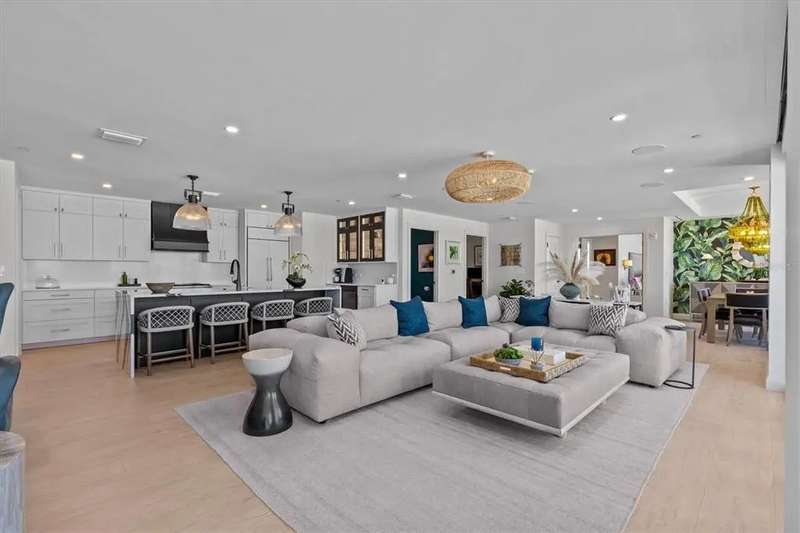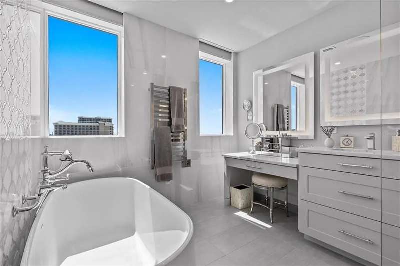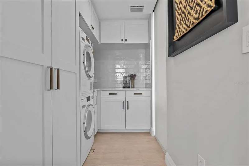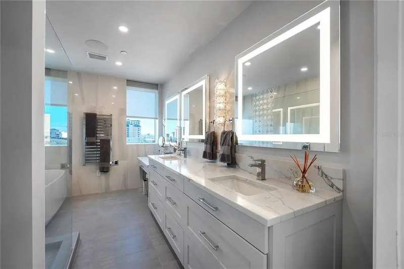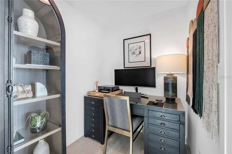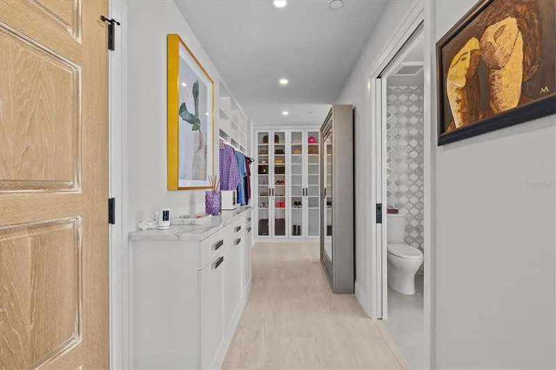 Experience the ultimate in luxury beachfront living at Pura Vida Clearwater Beach, where sophistication blends seamlessly with elegance. This exceptional 2,240-square-foot condominium features two bedrooms, a bonus room, an office, and two and a half bathrooms, designed with an open-concept layout that invites natural light and maximizes ocean views. The living, dining, and kitchen areas flow effortlessly into private glass-paneled balconies, providing the perfect setting for both entertaining and everyday relaxation. A harmonious mix of modern and traditional furnishings creates a transitional aesthetic that exudes livable luxury, while custom finishes and designer fixtures by Franco A. Pasquale Design Associates elevate the home's refined ambiance. The chef-inspired gourmet kitchen is a masterpiece, featuring top-of-the-line Miele and Sub-Zero appliances, sleek quartz countertops, custom cabinetry, a wine fridge, a gas stovetop, and a discreetly integrated dishwasher and refrigerator. The centerpiece is a striking waterfall quartz island with integrated deep sink, ideal for preparing meals while enjoying sweeping oceanfront views. After dinner, the primary bedroom provides a serene retreat with generous proportions, floor-to-ceiling windows, and a private balcony which is perfect for sunset gazing. Its en-suite spa-like bathroom boasts dual sinks, a separate water closet, a dedicated vanity, a soaking tub, and a glass-enclosed shower, all enhanced by a luxurious towel warmer. The walk-in closet is nothing short of a boutique-inspired haven, complete with illuminated wardrobe, chandelier, spacious jewelry cabinet, and a hidden washer and dryer with water filtration system, for ultimate convenience. For your out-of-town guests, the guest bedroom offers privacy and comfort with ocean views and its own en-suite bathroom. The oversized walk-in closet has been thoughtfully reimagined into a charming sleeping nook, featuring bunk beds and a custom mural of Clearwater Beach, ensuring every guest has a memorable stay. This property offers secure, gated access with two designated parking spaces that pre-wired for charging stations. A secure private elevator opens directly into the foyer, with an additional secure entry for added peace of mind. Practical features include a bike storage room, a designated beach locker, and a spacious air-conditioned storage unit. Situated in the heart of Clearwater Beach, this prime location offers easy access to pristine sands, vibrant dining experiences, boutique shopping, and recreational activities such as pickleball and a nearby playground. After a day exploring the best of Florida's renowned coastline, unwind by the oversized heated pool and spa, stay active in the well-appointed fitness center, or gather with friends in the inviting club room. Combining luxurious design, thoughtful functionality, and a prime beachfront location, this exceptional property is the ultimate coastal retreat. Contact us today to schedule your private showing and discover the unparalleled lifestyle awaiting you at Pura Vida Clearwater Beach.