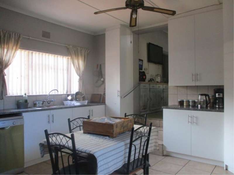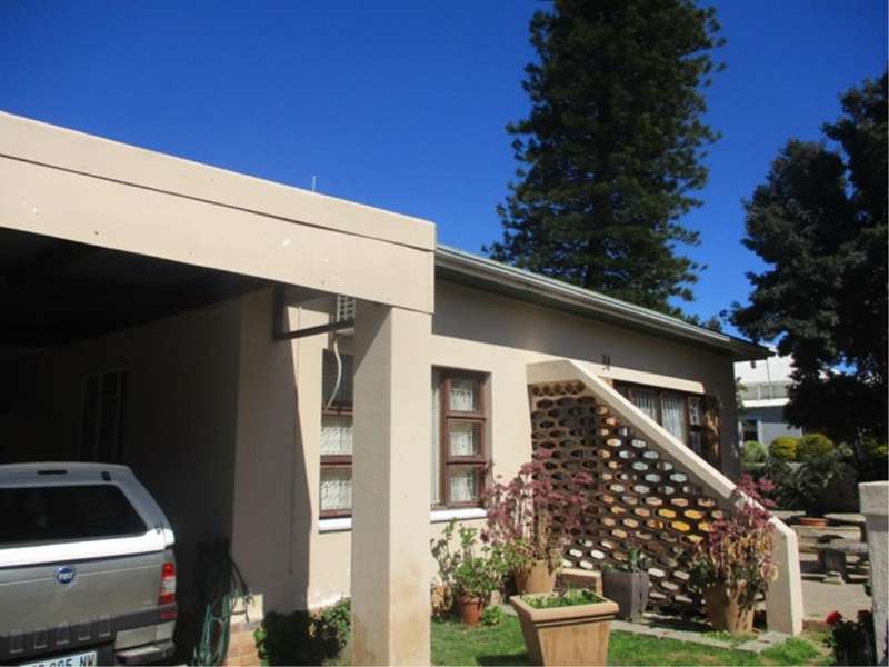 GOOD LOCATION FOR AN AFTERCARE / EDUCATIONAL FACILITY + " FLATLET" This 4-bedroom house is on a corner opposite the 2 schools and close. It is mostly paved around the house with little gardening needed. The 3 bedrooms in the main house have built-in cupboards and wooden floors. One bedroom also has its own workspace with fixed cupboard and an outdoor - convenient for the home office. There are 2 Bathrooms (one with bath, one with shower) and a guest toilet. The lounge and tv room are 2 large open areas with blinds and an aircon. The entrance to the house is secured with a safety gate. There is a braai room with access from the patio. There is covered parking for 2 vehicles! The kitchen had a make-over and is redesigned to have lots of space and boasts beautiful cupboards. There is an exit to the private courtyard with an undercover braai. This entertaining area is the ideal spot for you to spoil the family with a swimming pool or jacuzzi! In summer you will spend a lot of time outdoors and making good memories. Around the corner, on the other street, is under cover parking for 4 more vehicles. There you will find the outdoor of the free-standing unit with a 4th bedroom or office. With the approval of the Municipality, this is the ideal opportunity to convert into a flatlet, adjoining a spacious laundry and out toilet. The access between the house and " flatlet" can be shut for rental. Outside is a large rondavel for storage. The location of this house is ideal for someone considering an aftercare or educational facility.