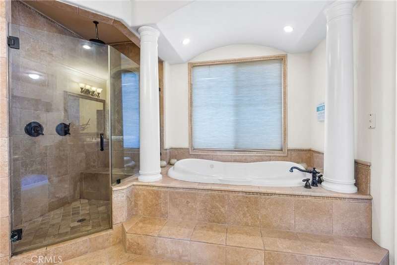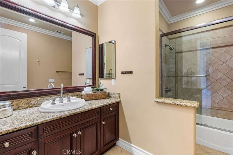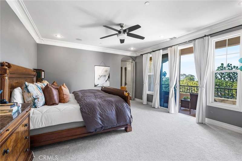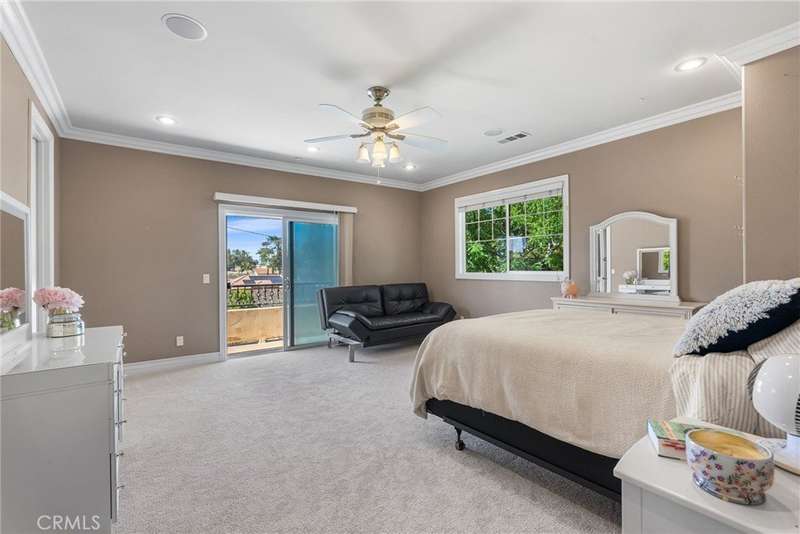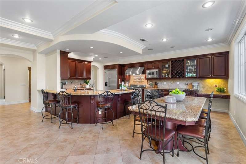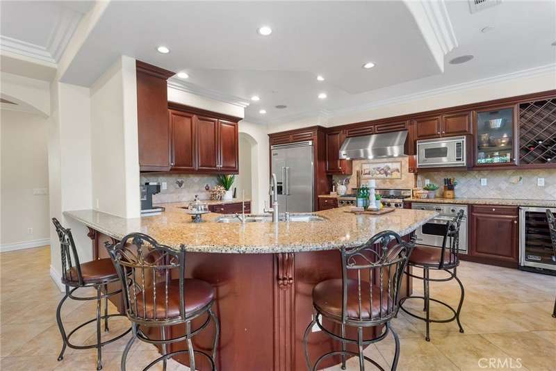 Bask in breathtaking sunset views from this beautifully refreshed North Tustin retreat, where mature palms grace the property and create a tranquil ambiance. Set on a private cul-de-sac, this home blends space, comfort, and timeless style with striking curb appeal. 5 bedrooms, 4 bathrooms, plus a detached office or flex space with 1/2 bath, and approximately 4035 sq. ft. of well-designed living space. 12941 Villa Rose Drive is made for both grand entertaining and everyday living. Step inside to a welcoming entry with formal living and dining rooms that set the tone for gracious gatherings. The heart of the home — a gourmet kitchen — features custom cabinetry, premier Viking stainless steel appliances including three ovens, expansive granite countertops, and coffered ceilings, all opening to a spacious informal dining area and a light-filled, wonderful great room with a cozy fireplace. From here, patio doors invite you to a backyard retreat with expansive patios and decks for dining and lounging, a built-in BBQ, and a grassy yard ideal for play or relaxation. A detached room with its own 1/2 bath adds flexible space for a home office, studio, play room, or creative escape. Upstairs, the primary suite captures stunning sunset views and includes a fireplace, walk-in closet, and spa-inspired bath with dual vanities. Three additional bedrooms, including one en-suite, and a bathroom complete the upper level, while a main-level bedroom and bath offer flexibility for guests or multi-generational living. Fresh interior paint, new carpet, and stone and wood flooring enhance the home’s inviting, move-in-ready appeal. Additional highlights include an oversized tandem three-car garage with a sink and storage galore, plus a convenient upstairs laundry room. Nestled within the award-winning Tustin Unified School District, this exceptional home blends generous living spaces, modern updates, and a peaceful location — where every evening ends with a North Tustin sunset.