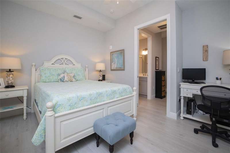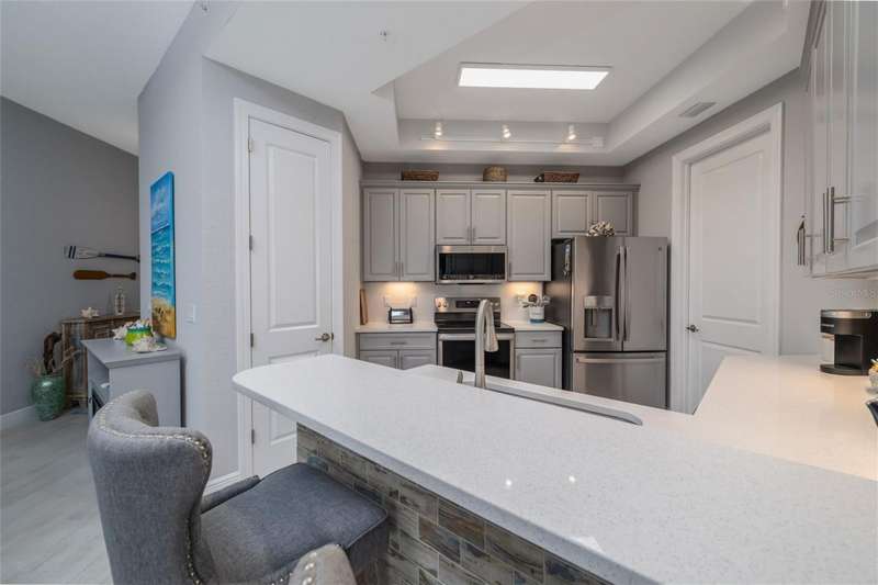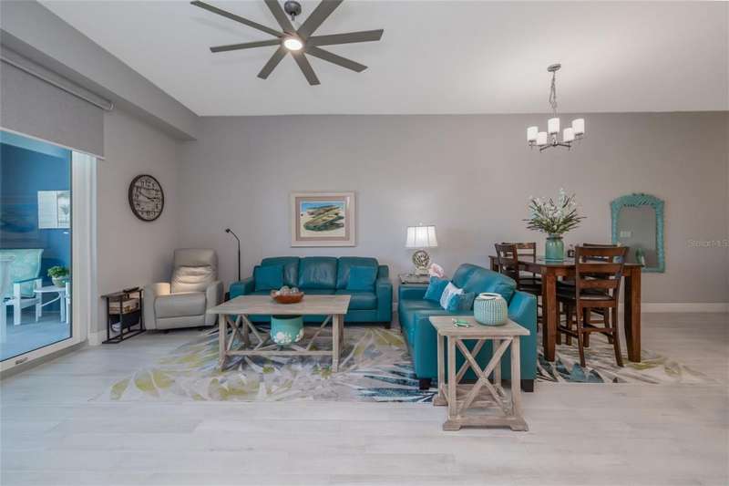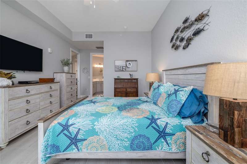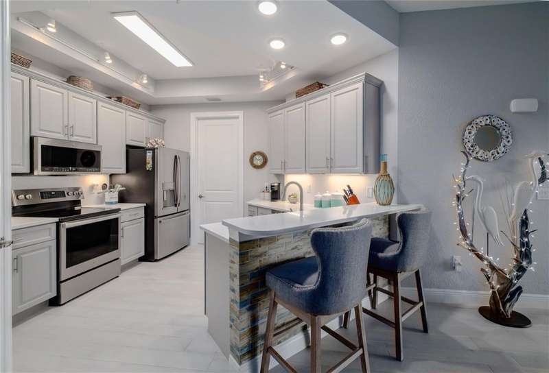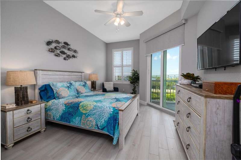 Spectacular views of the River & New Smyrna Beach from this immaculate penthouse at Riverwalk Condominiums built in 2022. Fully furnished with decorator coastal design, enjoy this gorgeous 2BR/2BA condo on the top 4th floor which features 10' ceilings, tiled floors throughout, a huge screened balcony, private storage closet & TWO reserved under building parking spaces. Upgrades include top of the line SS kitchen appliances, remote controlled fireplace, attractive ceiling fans in all rooms, tiled backsplash & plantation shutters on windows. Walk, bike or ride your golf cart to the quaint shops & restaurants on vibrant Canal St. or historic Flagler Avenue, where you will find art shows, wine tastings, car shows, and festivals all year long! Open floorplan is designed for entertaining family & friends, and the private balcony provides a front row seat to the boating action on the river, rocket launches from Kennedy Space Center, firework displays, boat parades & daily sunrises & sunsets. This building provides a generator to run the elevators should the power go out. Riverwalk features resort style amenities including a beautiful riverfront clubhouse with kitchen, fitness room, theatre, heated pool, spa, grills, bocce, pickleball, tennis, and a marina w/boat slips available to purchase. Enjoy the Florida lifestyle that you deserve today!