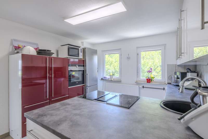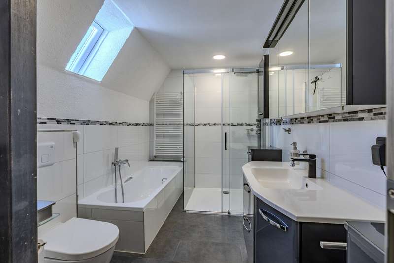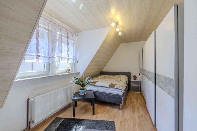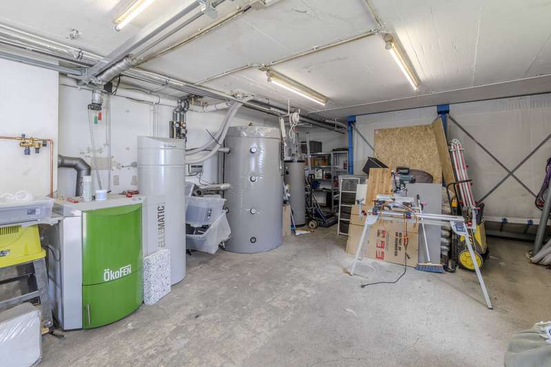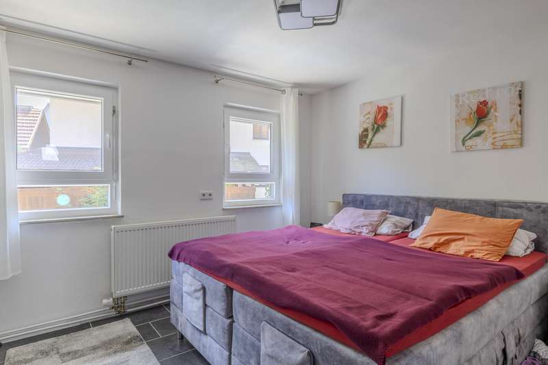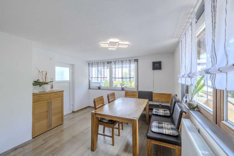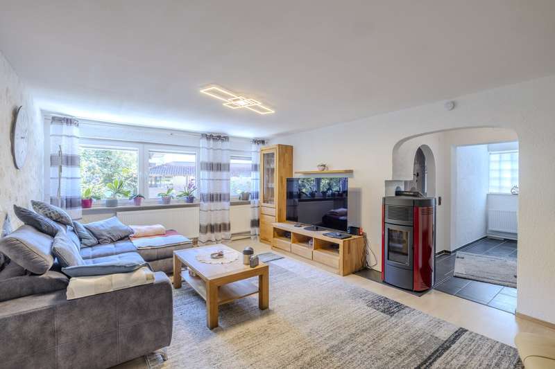 This charming detached house combines historical substance with modern amenities and impresses with its spacious layout and versatile plot. With around 156 m² of living space on a plot of approx. 278 m², it offers ideal conditions for families or buyers who value comfort, functionality and sustainability in equal measure. The house was built in 1985 and significantly extended in 1987 with a spacious extension. Continuous modernization work was carried out from 2015 until 2024. The harmonious house concept is particularly noteworthy - including a cozy dining room with direct access to the 45 m² covered terrace. An ideal place for sociable hours in a cozy atmosphere. The room layout is well thought-out and versatile: - Upstairs there is a spacious living room, a cozy bedroom, the modern kitchen (2024), a guest WC and a fully equipped bathroom with bathtub and shower - The top floor comprises two further bedrooms and an additional bathroom with shower - ideal for children, guests or as a separate retreat - On the first floor, a flexibly usable room completes the space on offer - perfect as a home office, hobby room or small workshop The numerous modernizations that have been carried out in recent years are also particularly noteworthy: new, double-glazed plastic windows were installed in 2017 and a high-quality patio roof was added. The efficient central heating is supported by a 12 kW pellet stove (2016). A modern photovoltaic system with battery and wallbox (updated 2024) ensures a high energy standard. In combination with the 1,600-liter cistern, this creates a well thought-out, sustainable energy concept. The pellet stove on the upper floor provides pleasant additional warmth in the transitional period and creates a particularly pleasant atmosphere. The house also offers impressive possibilities in terms of usable and storage space: Two classic garages and an oversized, modern garage built in 1987 open up a wide range of options - whether for a craft business, as storage space or to accommodate larger appliances. A well-kept garden shed adds to the space on offer. Thanks to consistent maintenance and regular modernization, the property is now ready for immediate occupancy. The harmonious interplay of historical charm and contemporary technology - complemented by smart energy and heating solutions - makes this property a particularly attractive choice for anyone who values comfort, sustainability and versatility. Arrange a viewing today and be inspired by the special advantages of this house in person.