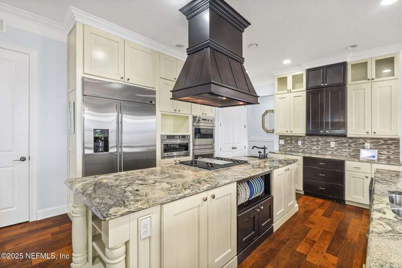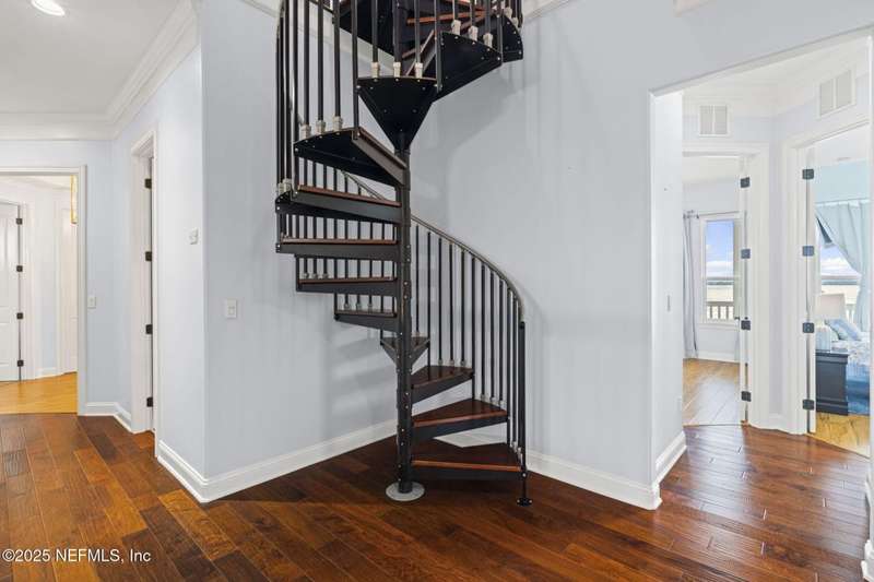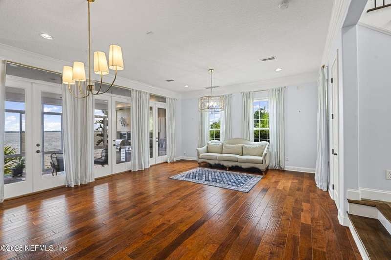 If you are looking for the charm of a Key West home with all the modern amenities in the Jacksonville area, you need to see this riverfront home! Tucked into a private gated enclave of homes, this custom home (which was built as a builder's personal home), features 5 bedrooms and 4 1/2 baths, a chef's kitchen with two islands and lots of granite, beautiful cabinets and stainless appliances, upstairs and downstairs laundries, 3 fireplaces, multiple porches and balconies overlooking the river and a summer kitchen. There are three floors all with direct outstanding views of the St. Johns River and even a widow's walk on the top of the home with truly inspiring views! There is a bulkhead, a community dock and a private designated slip. The community has its own pool and clubhouse. This beautiful homes is reminiscent of the old riverboat captains houses with its river views from every level (except without all the work).