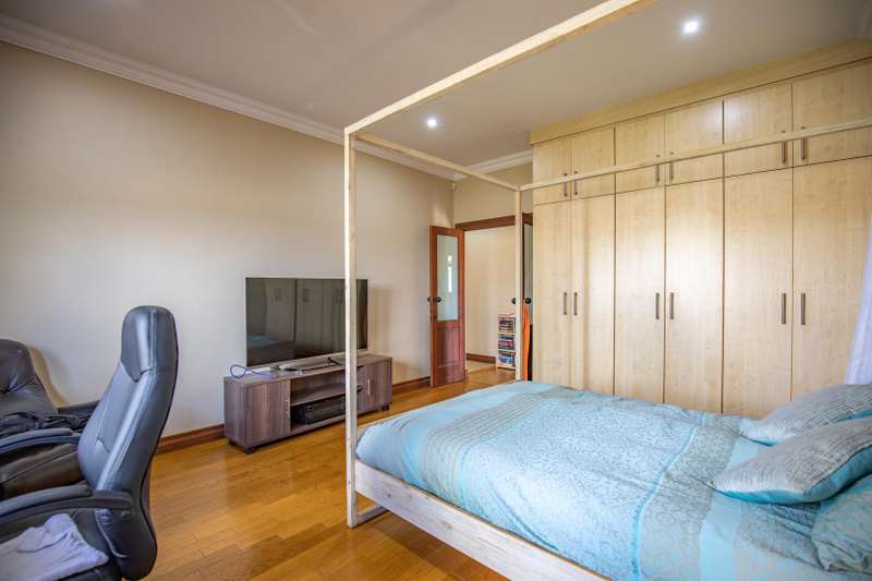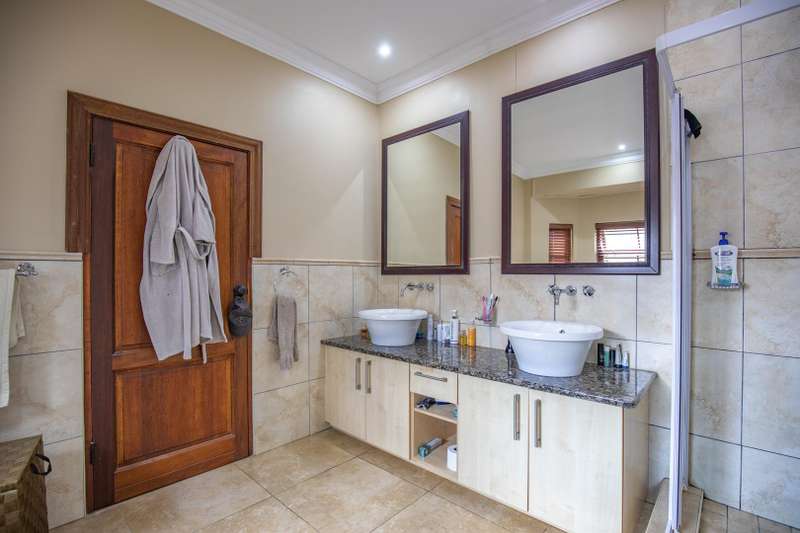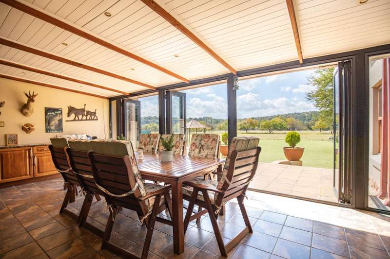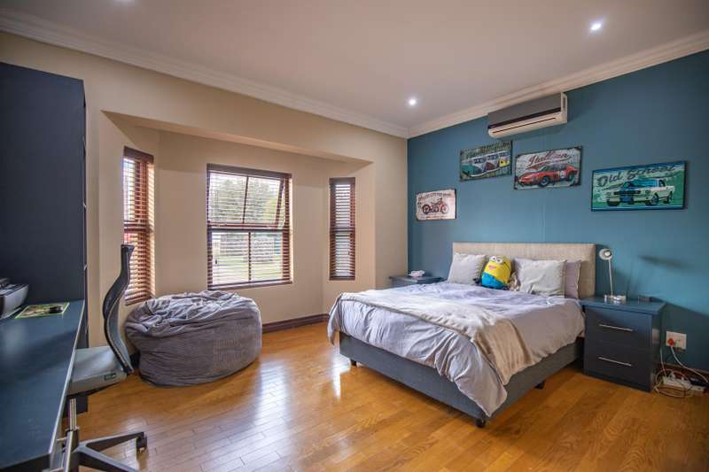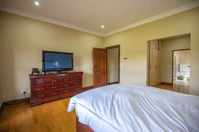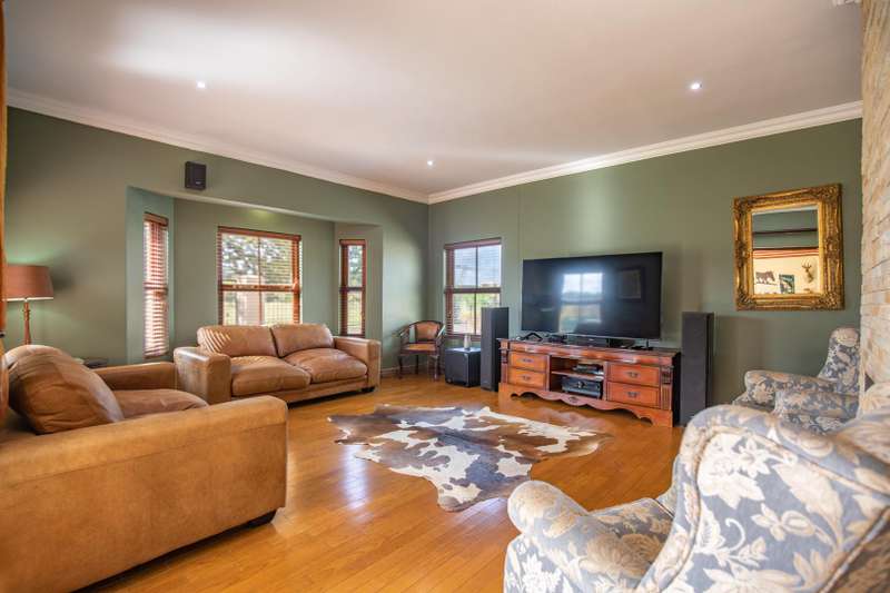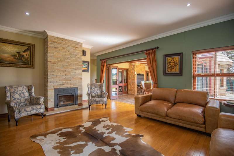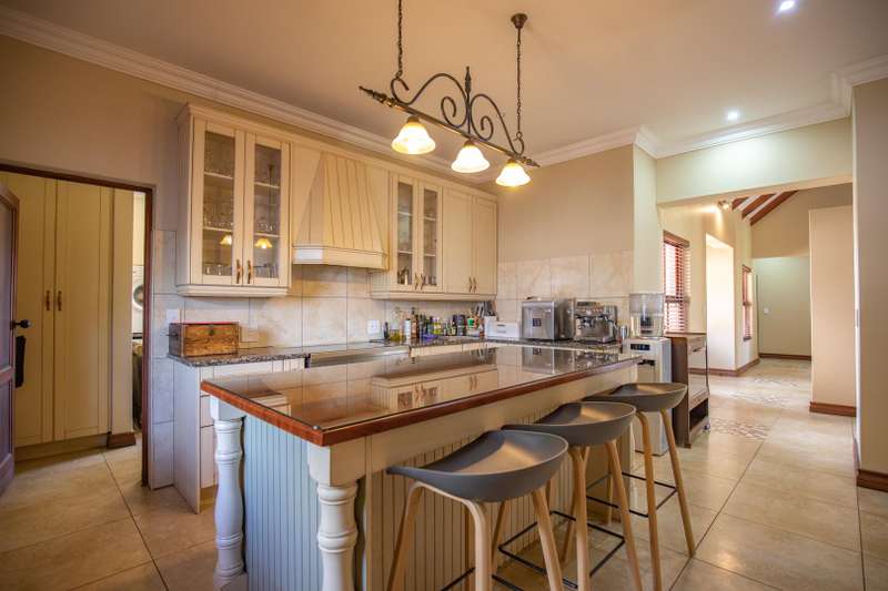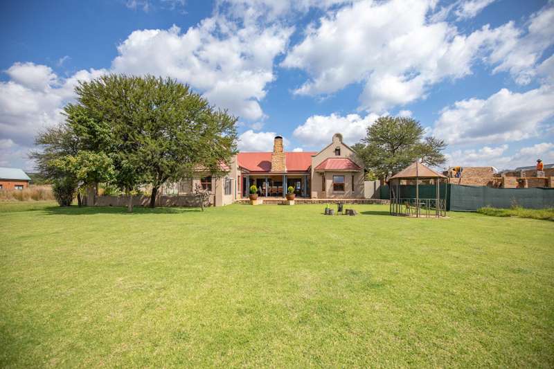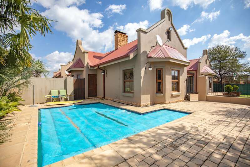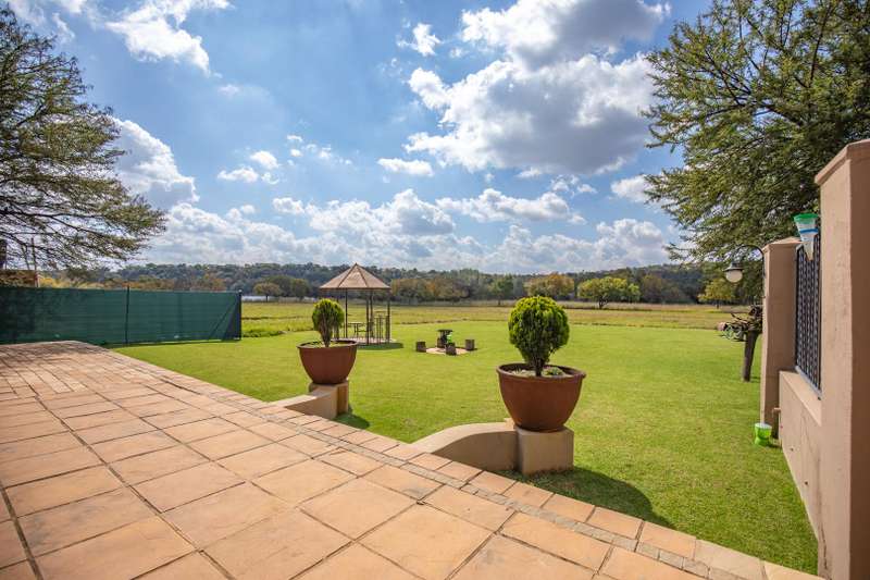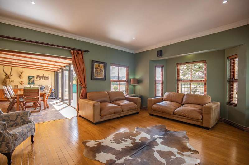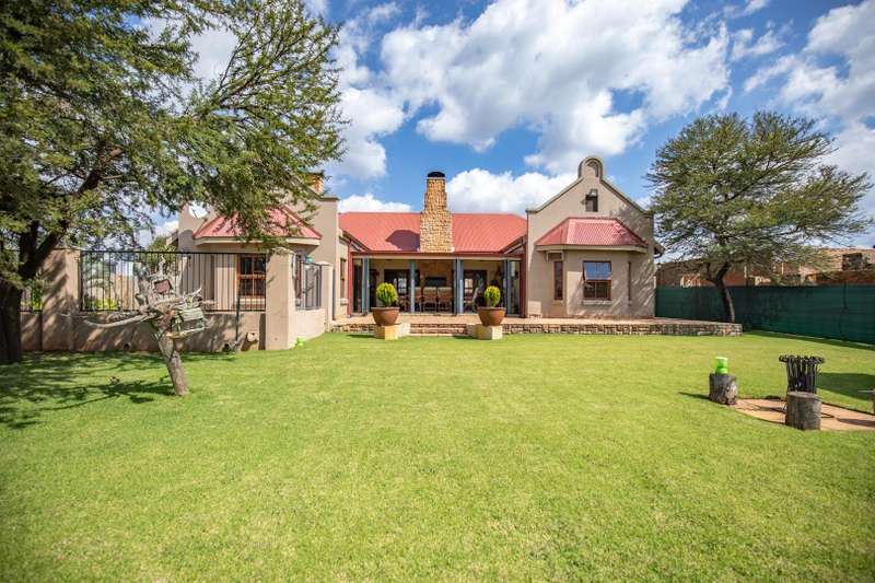 This stunning 3-bedroom property is situated in Waterlake farm overlooking the Waterlake dam. This is one of only a handful of properties that have a view of the water. The property offers 3 spacious bedrooms. The master bedroom has an en-suit bathroom with spacious walk thru cupboards. The beautiful farms style kitchen and scullery are equipped with granite work surfaces. The property further offers a dining room and tv room with fireplaces for that cold winter nights. The covered patio next to a sparkling swimming pool has a buildin braai and a prep basin. The property has double automated garages a cover parkin bay and domestic accommodation. Waterlake Farm is and amazing and safe environment to raise you family. Don't delay..