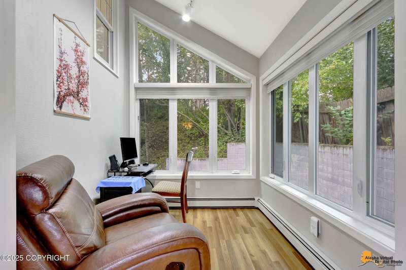 2-Bedroom, 2.5-Bath Townhouse Condo in a prime location—just minutes from downtown and the airport! Recent improvements include new vinyl flooring and upgraded toilets in all bathrooms. The kitchen features stone countertops, upgraded cabinets, and an open layout that flows into the living area, highlighted by a cozy gas fireplace and soaring windows. The main level also features an office, a half-bath, and a laundry room for added convenience. Upstairs, you'll find the primary suite with a private bath and walk-in closet, and an additional bedroom and bathroom. Further highlights include a shared garage with two parking spaces and a generous private storage room. Schedule a showing now!