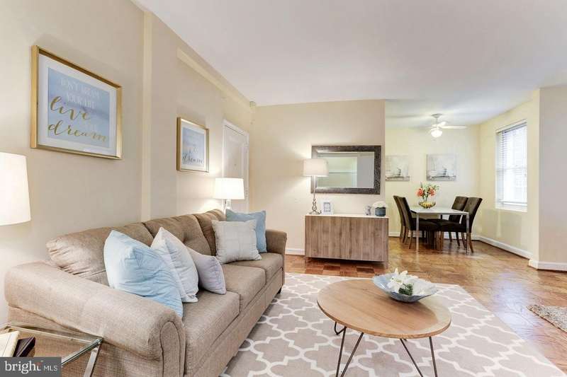 Enjoy this light filled studio in gorgeous, historic Warwick Condominium Building located in Cathedral Heights! Oversized windows face a private courtyard with southeast exposure! Gleaming hardwood floors. High ceilings. Updated kitchen with extra cabinets and open to a good sized eating area. Expansive full bath boasts a comfy tub. Great large custom closet. Do not miss the additional storage space. An exquisite mix of English Tudor architectural style and contemporary urban convenience, The Warwick is a Beaux Art building with a luxurious entrance lobby, well-manicured tree-lined grounds, community/party room, bike room, package room, on site management offices, and recently renovated the rooftop deck with spectacular views of the National Cathedral. Near multiple bus lines to take you all over the city, Cleveland Park Metro, Cathedral Commons shopping and restaurants, a short jog to the Wegmans, Rock Creek Park, the Glover Archibald Trail/Park and just 1.5 miles from the National Mall. Close to both American and Georgetown Universities.