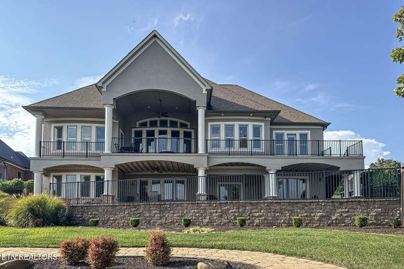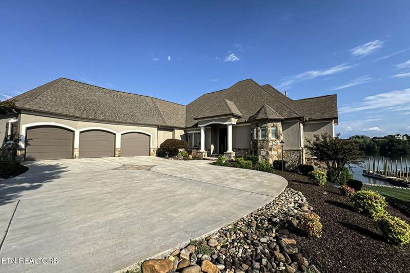 Enjoy one of the most breathtaking views on Tellico Lake with the Great Smoky Mountains as your backdrop. This beautifully updated home offers a heated saltwater pool with paver deck, covered patio, Trex deck, and a terraced walkway leading to a private dock with automatic boat cover and boat lift, two PWC lifts, and plenty of space to relax by the water. Inside, tall ceilings and expansive windows showcase the views the moment you step in. The 2022 updated custom kitchen features an oversized granite island, high-end stainless steel appliances, and a full wall porcelain brick backsplash. Hickory hardwood floors extend throughout the main level, which also includes a spacious guest suite that can serve as an additional primary suite. The owner's suite boasts lake views, tray ceiling, his-and-her closets, whirlpool tub, and a roomy walk-in tile shower. The lower level includes a built-in entertainment center with a 75'' TV with surround sound included, and a bar with GE Monogram refrigerator/ice maker. Additional features include a new tankless water heater (2023), plantation shutters, updated lighting, custom iron and glass entry door, irrigation system, and epoxy garage flooring. Located on a gently sloping 1/3+ acre lot in Tellico Village's Kahite community, you'll enjoy access to an 18-hole championship golf course, community pool, fitness center, tennis/pickleball courts, hiking trails, and community boat launch. This is lakefront living at its finest-move-in ready and waiting for you.