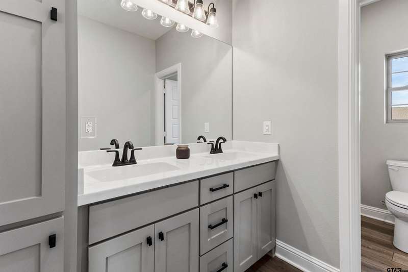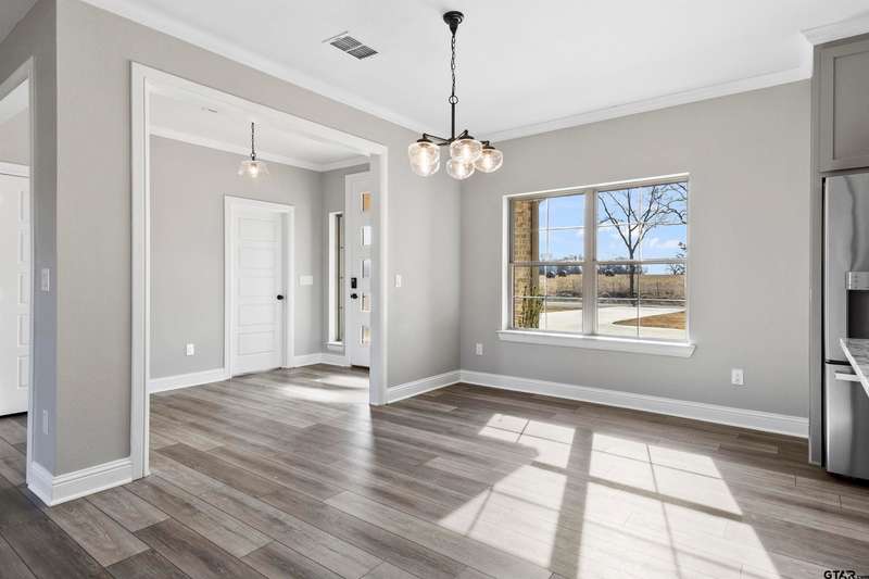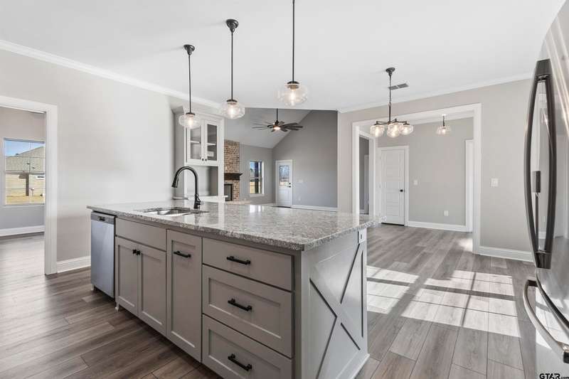 New construction in Alba, TX, just minutes from renowned Lake Fork! This stunning 4-bedroom, 2.5-bath home offers 2,356 sq. ft. of modern living space with a versatile upstairs bonus room. The kitchen features granite countertops, stainless steel appliances, and a spacious island with breakfast bar. Off of the kitchen, enjoy the convenience of a large laundry room with sink and built-in bench, great storage for shoes, backpacks, etc. A split bedroom arrangment, the primary suite offers privacy with a vaulted ceiling and a stunning bath offering separate vanities, garden tub, large shower and walk-in closet. Situated on a 1/2-acre corner lot, this home combines stylish living in a country setting, a perfect location with nearby lakes and charming downtown Mineola. **Seller willing to participate in rate buydown or Owner financing.**