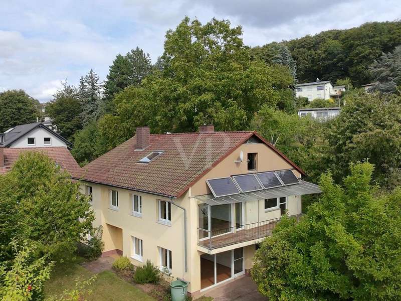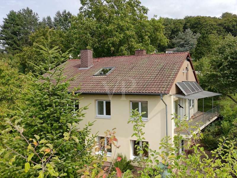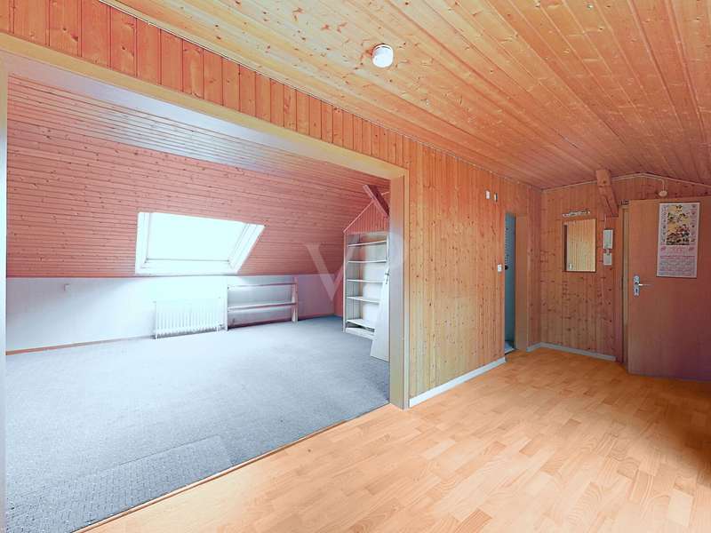 Welcome to this versatile property which, with a generous living space of approx. 190 m² spread over two apartments, a plot of approx. 1,406 m², offers numerous possibilities for use and a comfortable living ambience. The property was built in 1965 in solid construction and is in a well-kept condition. It is located in a quiet cul-de-sac on the outskirts of the village and boasts a pleasant neighborhood and a wonderful view of the countryside. The house is divided into three separately usable units. The clearly structured layout is ideal for families, multi-generational living, working and living under one roof or as a combination of owner-occupation and rental. All units are separated in terms of ancillary costs, which allows for flexible use. The first floor apartment covers around 80 m² and impresses with a light-flooded living area, equipped with a beautiful wood-burning stove and high-quality parquet flooring. Two terraces invite you to spend time outdoors. The kitchen has a practical layout and the bathroom was extensively renovated in 2014. The windows and radiators were also replaced as part of the modernization work. There is a residential unit of around 109 m² on the upper floor. A large living room with access to the balcony and direct connection to the garden creates space for the residents. The bathroom was already renovated in 2010 and all windows were also replaced on this floor. The living spaces are generously proportioned and offer plenty of room for individual living ideas. The top floor offers additional potential: there is currently a WC, a shower, a large hobby room and a spacious bedroom with practical built-in wardrobes. This area is in need of renovation and the space is not included in the stated living area, but offers a wide range of expansion options. The offer is rounded off by a massive double carport, several terraces and a balcony. The outdoor facilities are well-kept and spacious - an attractive cottage garden has been created, which is ideal for self-catering and gardening enthusiasts. Fruit trees enrich the property and landscaped paths connect the various garden areas. Other features include modern central heating and external insulation to ensure energy efficiency. The house is located in a quiet cul-de-sac with little through traffic, which particularly appeals to families who value a sheltered environment. This property offers numerous design options and potential for expansion - whether for communal family life, living and working under one roof or as an interesting multi-generational project. A viewing appointment is worthwhile to discover the individual advantages in person. Please contact us for further information or to arrange a viewing.