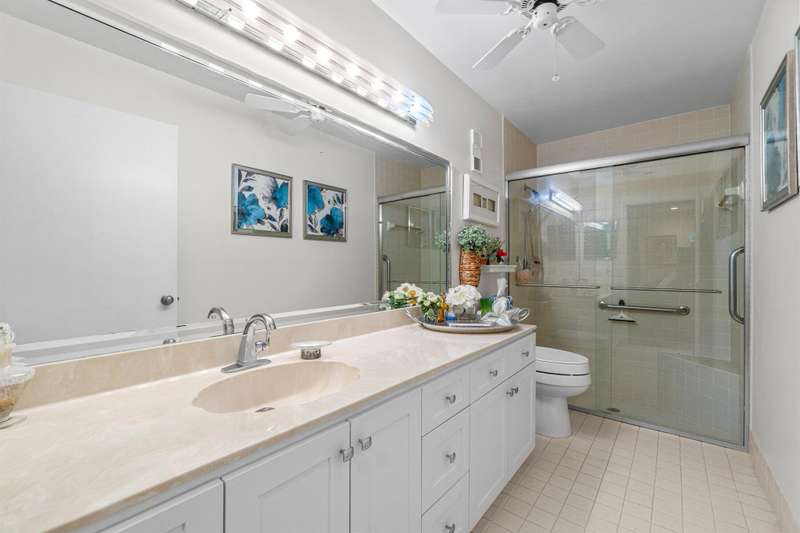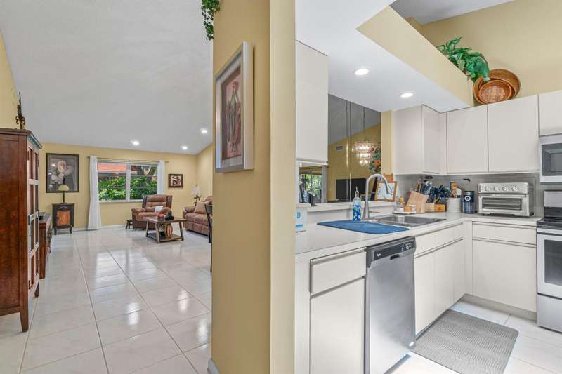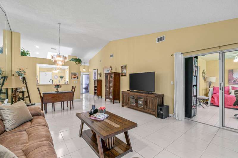 LOVELY 2 BR 2 BA 1 CAR GARAGE VILLA IN A 55+ COMMUNITY. WALKING DISTANCE TO A SATELLITE POOL. EAT-IN KITCHEN HAS STAINLESS APPLIANCES & PULL OUTS IN THE PANTRY. VAULTED CEILINGS IN LIVING & DINING AREAS. LIVING ROOM & PRIMARY BEDROOM OPEN TO A GLASS & SCREEN ENCLOSED PORCH OVERLOOKING A SERENE GARDEN SETTING. 16'' TILE IN THE LIVING AREA, VINYL PLANK IN THE PRIMARY BEDROOM, & BAMBOO IN THE GUEST ROOM. NEUTRAL DECOR. A/C & WASHER ARE 3 YEARS OLD. ROOF WAS REPLACED IN 2008. CLUBHOUSE RENOVATIONS TO BE DONE BY DECEMBER, FEATURING A THEATER, RESTAURANT, FITNESS, POOLS, TENNIS, PICKLEBALL, & CARD ROOMS. CONDO FEE INCLUDES WATER, CABLE, INTERNET, & ROOF. PETS MUST BE 35 LBS.OR LESS. CLOSE TO RESTAURANTS, SHOPPING, & THE TURNPIKE. QUICK CLOSE POSSIBLE.