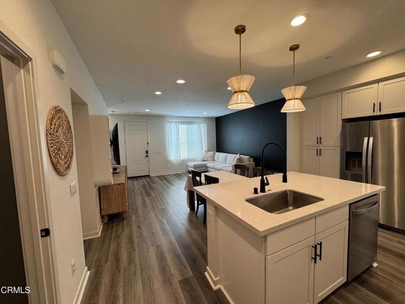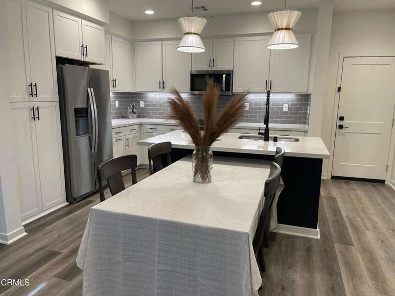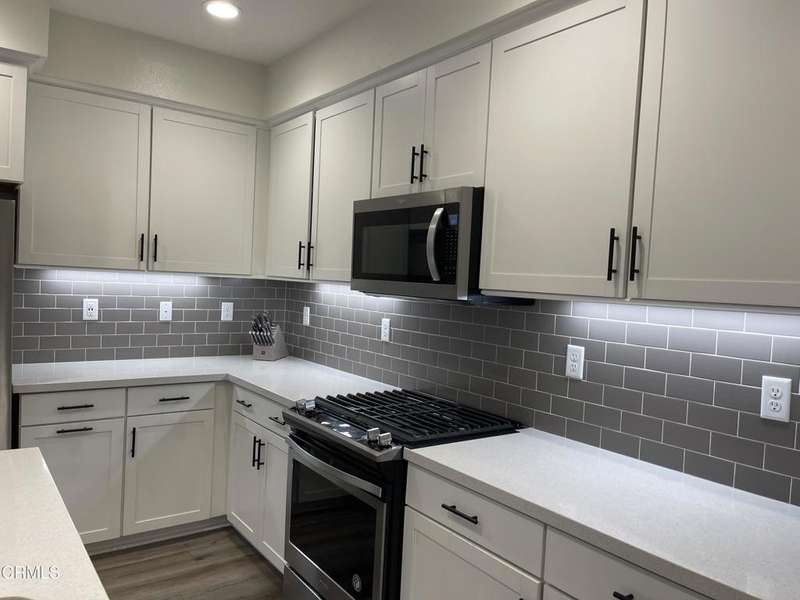Welcome to The Westerly, a beautifully upgraded townhome in the heart of Simi Valley. This 3 bedroom, 2.5 bath residence offers an inviting floorpan with modern finishes throughout. The kitchen is a true showpiece featuring quartz countertops, stainless steel appliances, pendant lighting, a gray subway tile backsplash, & sleek black hardware. Luxury vinyl plank flooring, upgraded carpeting & recessed lighting flow seamlessly through the home, creating both style & comfort. The spacious primary suite includes a beautifully upgraded bathroom with dual sinks, a separate shower & a relaxing tub. Additional highlights include central air conditioning & heat, ceiling fans, epoxy flooring & overhead lighting in the garage, a Tesla charger & tankless water heater. The attached two car direct access garage adds convenience, while solar panels bring energy efficiency. Residents of The Westerly enjoy resort-style amenities, including a sparkling pool, fire pit area, bocce ball court, rose garden, dog park & a dedicated kid's play area. This desirable community is ideally located close to schools, shopping, dining, parks & just minutes from the Ronald Reagan Library . With its modern upgrades & a welcoming neighborhood, this home truly has it all!