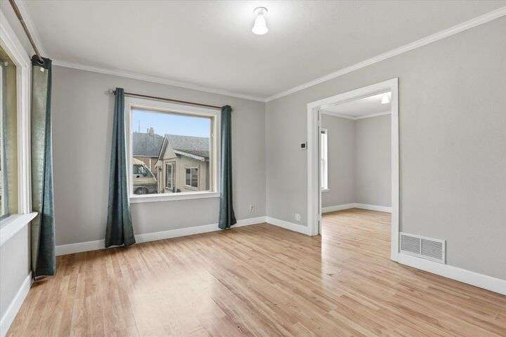 Charming and move-in ready! This well-maintained home features two bedrooms upstairs with laminate wood flooring, fresh paint, and a remodeled full bathroom. The bright kitchen has new flooring and vinyl windows for energy efficiency. Downstairs includes a newly finished bedroom with new carpet, a large walk-in closet, laundry area, and storage—plus plumbing already in place for an easy addition of a second bathroom. With 1,224 square feet, the home also offers low-maintenance vinyl siding, a landscaped yard with a sprinkler system, and off-street parking in both the front and back, including room for an RV. Conveniently located just minutes from downtown Spokane and the Shadle area. Don't forget to check out the video! https://youtube.com/shorts/Zznevlqn_Zs