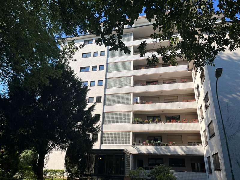 Chic 3-room apartment with balcony and park view - Westend Offenbach This 3-room apartment with balcony in an elegant residential complex built in 1963 in a direct park location on the outskirts of Frankfurt presents itself with a successful layout. Large window fronts set the living unit with open-plan living/dining area and large south-facing balcony in the right light. The residential complex was already equipped with district heating in 1985 and the heating system was renewed in 2013. The property has laminate flooring and tiles in the wet rooms. The local public transport connections are ideal, as is the proximity to the Goehtequatier with its cafés and shopping facilities. The proximity to the Main with its wide range of leisure activities also makes the location particularly attractive. An ideal domicile for the discerning single or couple as well as the small family, who appreciate the ideal location on the doorstep of the financial metropolis of Frankfurt am Main.