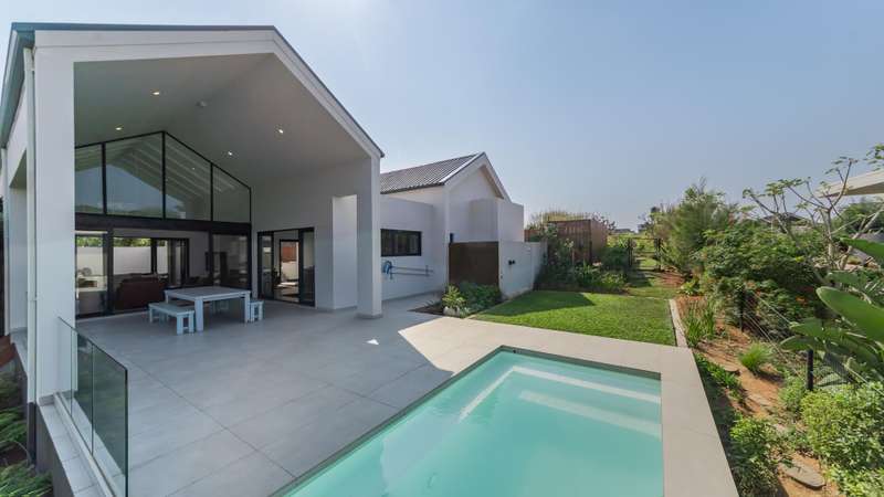 Introducing a brand-new 3-bedroom home in the prestigious Zululami Luxury Coastal Estate, designed with modern living and sustainability in mind. This spacious residence boasts expansive open-plan living areas that flow seamlessly onto a covered outdoor entertainment space, overlooking a sparkling salt-chlorinated pool and a beautifully landscaped, level garden ?Çö perfect for family living and entertaining. Each of the three bedrooms is ensuite, offering privacy and comfort, while the home?ÇÖs design blends elegance with practicality. With mostly off-grid living, this property ensures peace of mind with reliable backup power and water systems. Practicality meets convenience with an extra-length double garage ideal for larger vehicles, an additional carport, and a well-equipped domestic room complete with a bathroom and kitchenette. Whether hosting gatherings, enjoying quiet family moments, or working from home, this residence offers versatile spaces tailored to a contemporary lifestyle. The combination of cutting-edge efficiency and timeless design makes this home a rare find in one of the North Coast?ÇÖs most sought-after estates. Living in Zululami Luxury Coastal Estate means embracing a lifestyle defined by luxury, security, and world-class amenities. Residents enjoy access to Zululami?ÇÖs coastal clubhouse, beach pavilion, wetland walks, and nature trails, while also benefitting from Seaton Estate?ÇÖs shared facilities, including direct access to the pristine Christmas Bay beach, an equestrian centre, and top-class sports facilities. This is more than just a home ?Çö it?ÇÖs a lifestyle investment offering the best of coastal living, sustainability, and community in an unmatched location.
