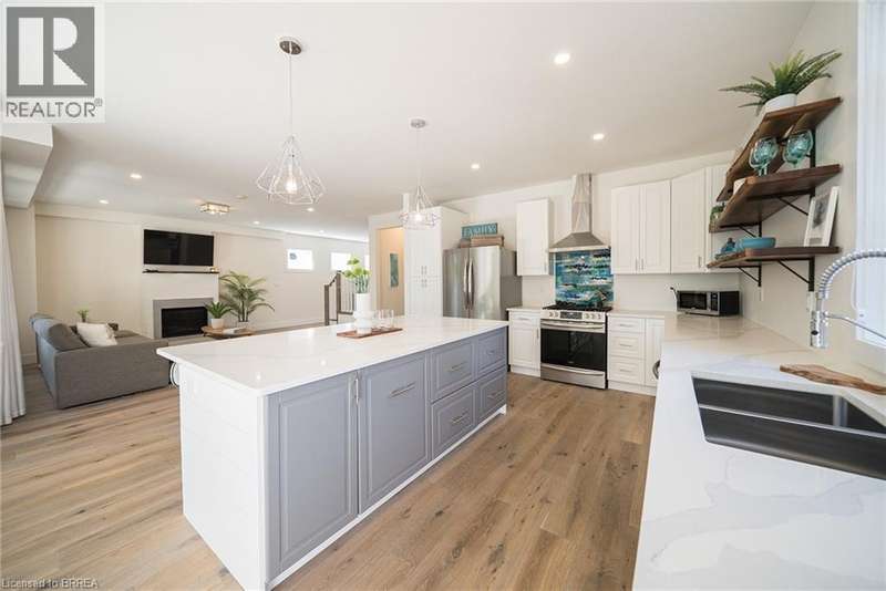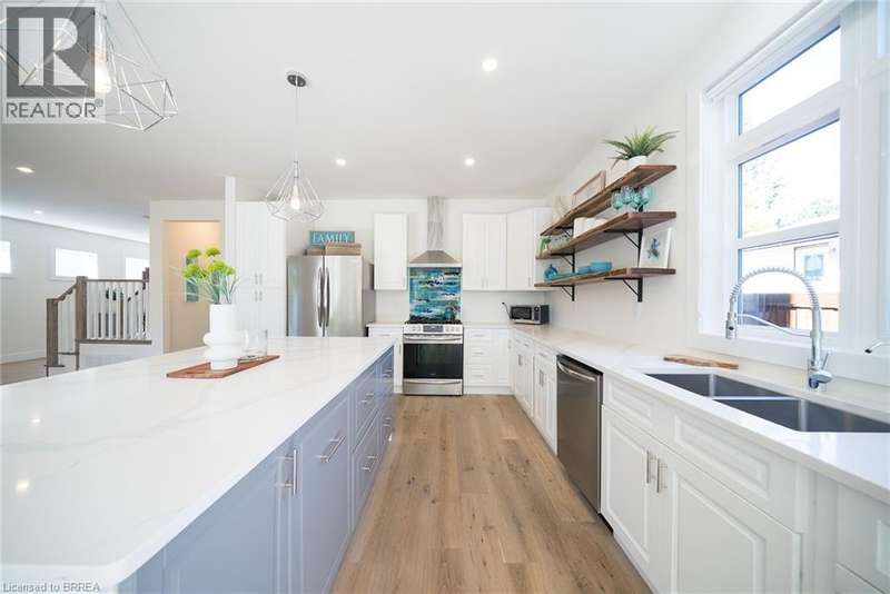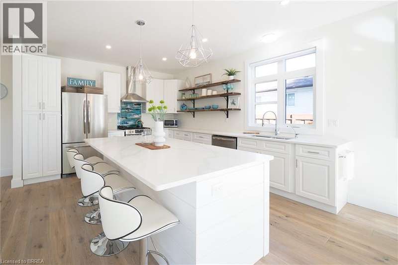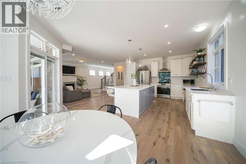 Welcome to 38 Lakeview Avenue in Port Dover – just steps from the lake! This stunning 2,816 sq. ft. home, built in 2019, blends modern finishes with a prime location, offering 4 bedrooms, 2.5 bathrooms, and an inviting layout perfect for families and entertainers alike. Inside, you’ll find engineered hardwood floors throughout the main and upper levels, custom light fixtures, and a neutral palette that creates a bright and timeless feel. The open-concept kitchen showcases white cabinetry, quartz countertops, an oversized island with shiplap detailing, stainless steel appliances, and live-edge shelving. The dining area offers wall-to-wall windows with a walkout to the covered porch, while the spacious great room features a cozy gas fireplace. Convenient main-floor laundry with cabinetry, garage access, and a nearby powder room add functionality. Upstairs, the primary suite includes a luxurious 4-piece ensuite with dual sinks, a walk-in shower, and a generous walk-in closet. Three additional bedrooms provide flexibility for family, guests, or a home office. The upper-level bathroom is complete with a custom vanity and quartz counters. Outside, enjoy a double garage with oversized doors, a double concrete driveway, a fully fenced yard, covered porch with pot lights, and gas BBQ hookup—all set on a large lot ideal for outdoor living. Located just down the road from the water, this home combines everyday comfort with the lifestyle Port Dover is known for. (id:7434)